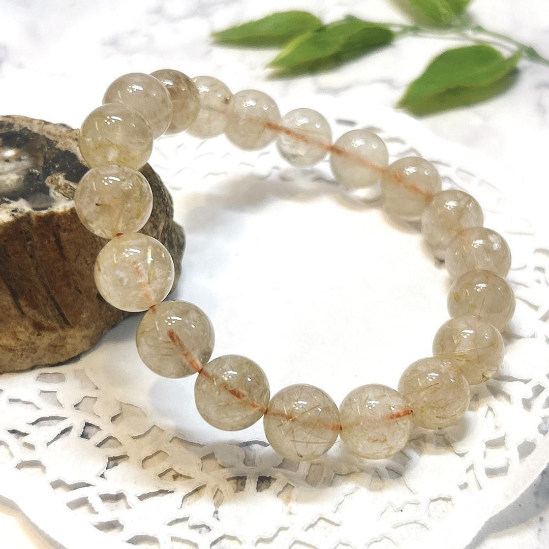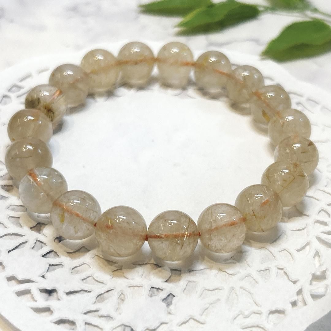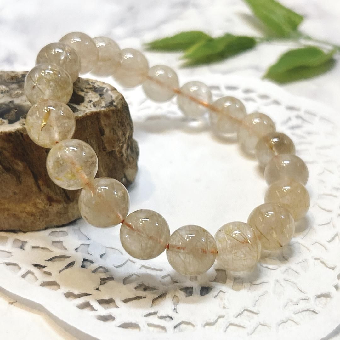 水晶の中に、金色の針のような鉱物=ルチルが入っていることから、