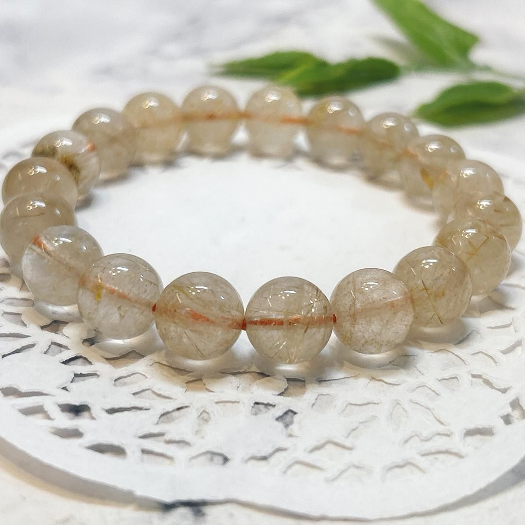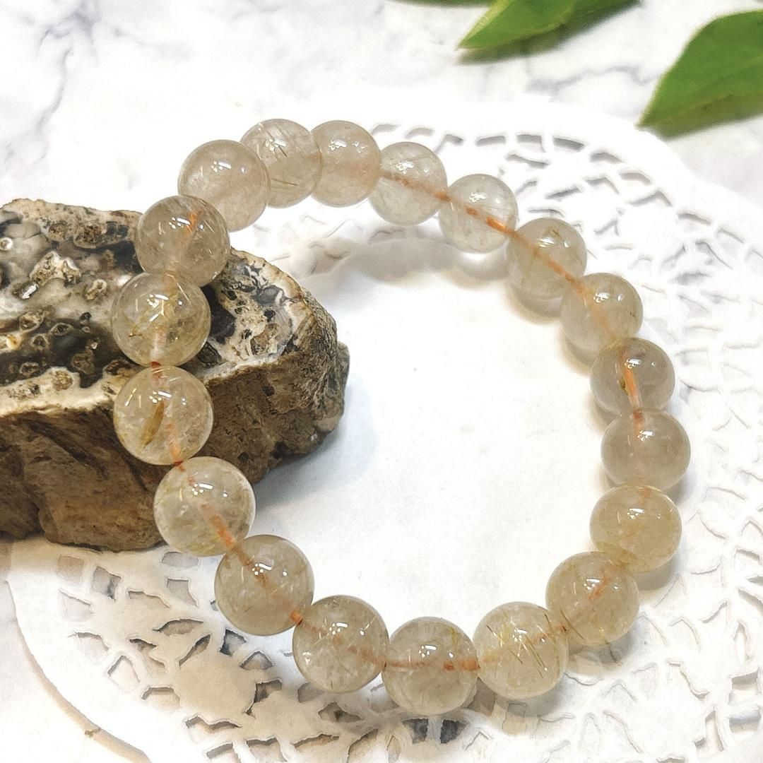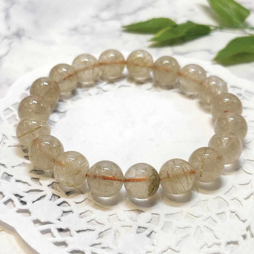水晶の中に、金色の針のような鉱物=ルチルが入っていることから、