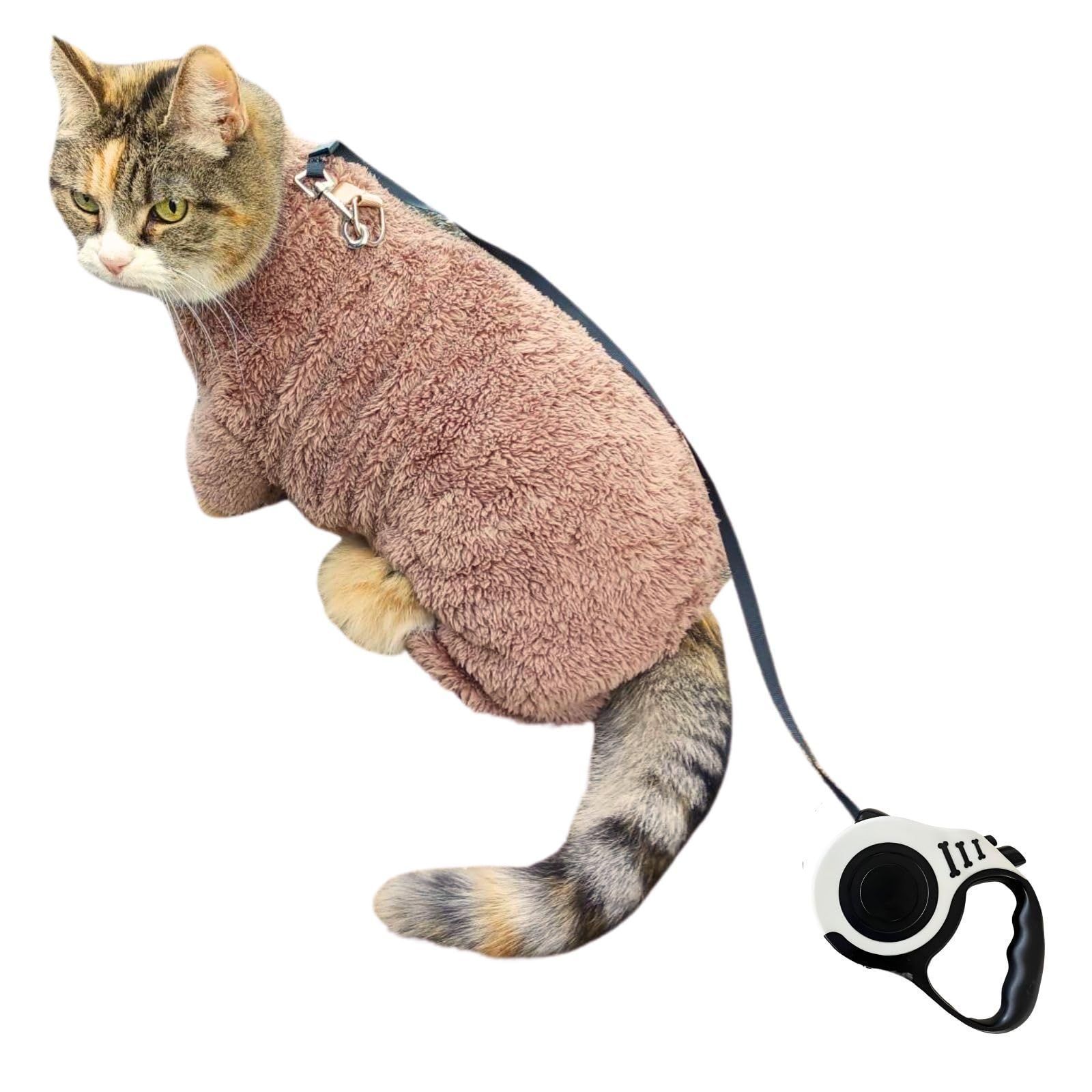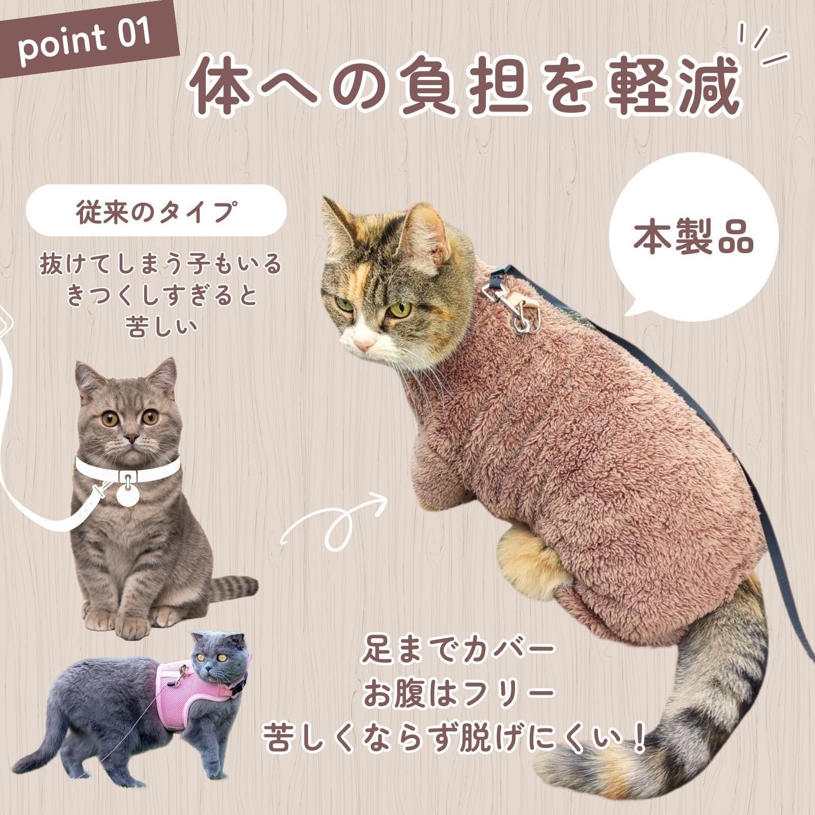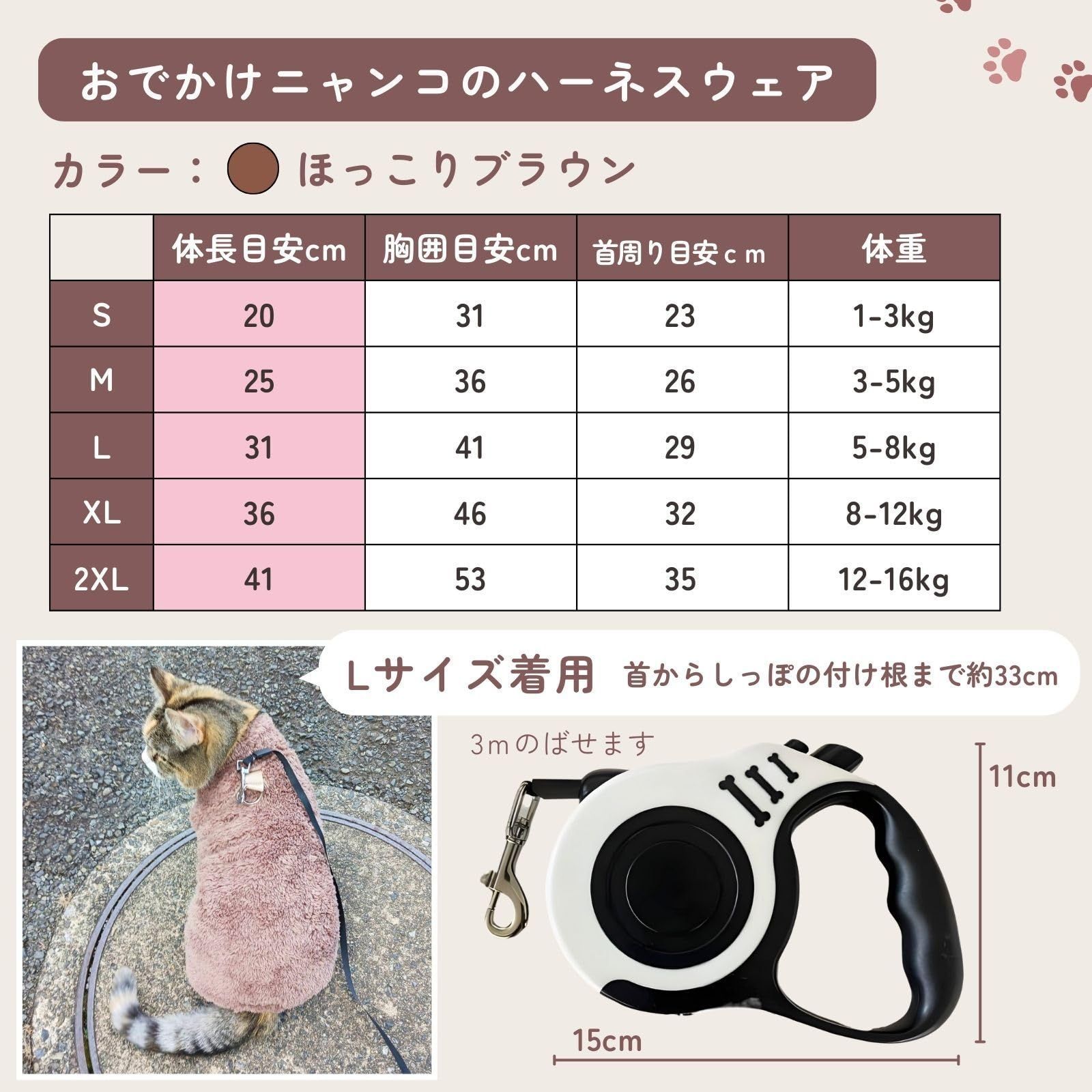Lunacheルナシェ猫 リード付きハーネス 抜けない 猫用 散歩用 猫の散歩用リード ハーネスウェア おでかけにゃんこ ほっこりブラウン L