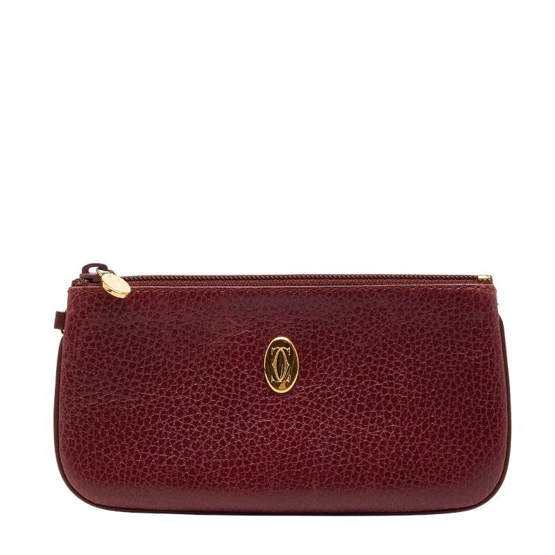 カルティエ マストライン ポーチ 小物入れ ワインレッド ボルドー レザー レディース CARTIER【228-46522】