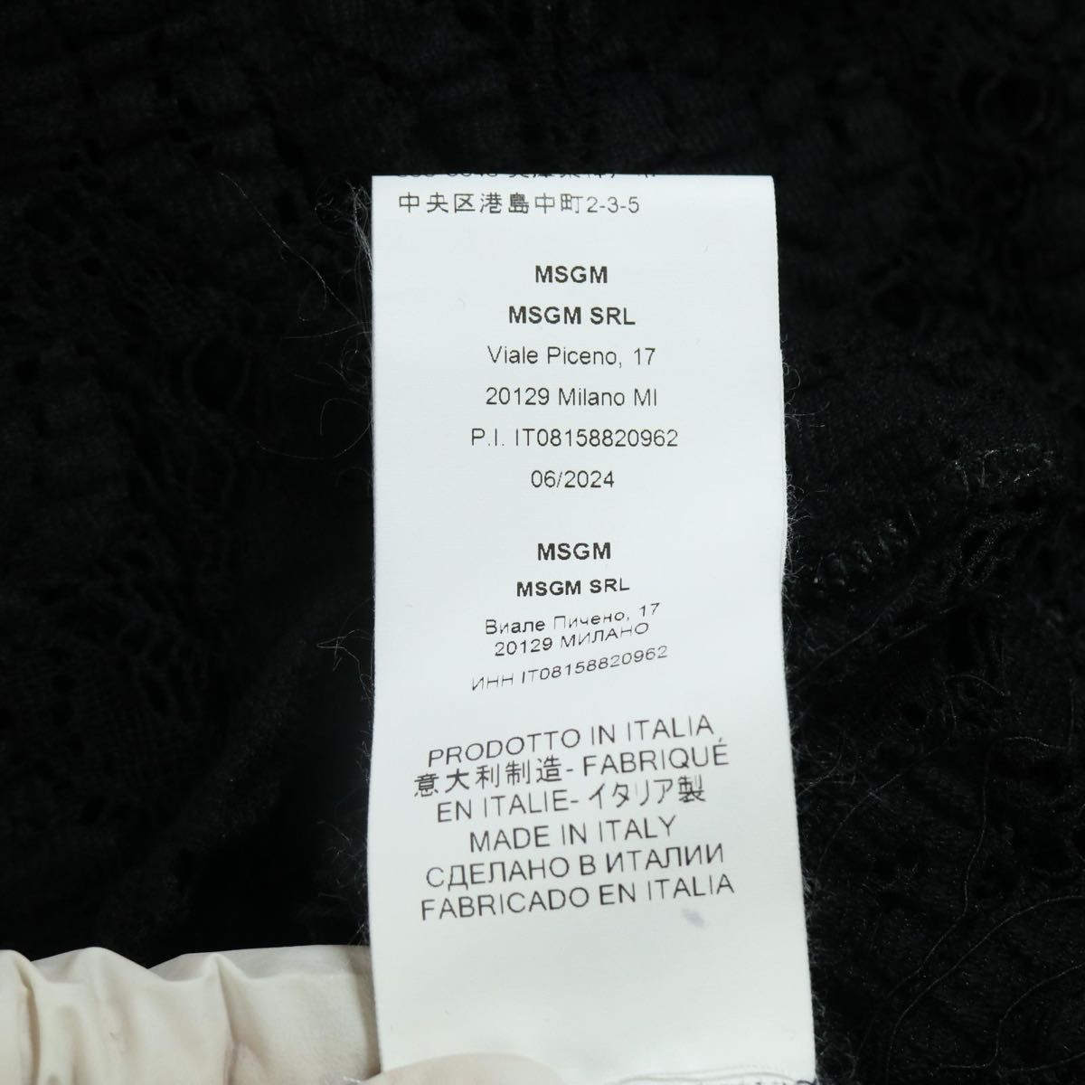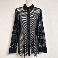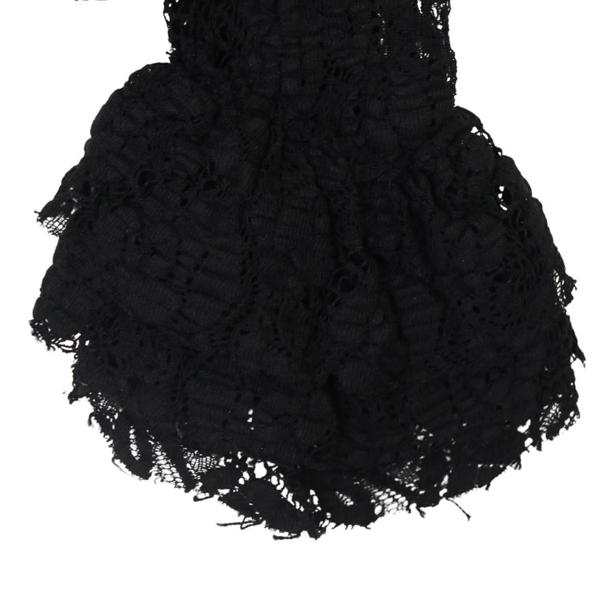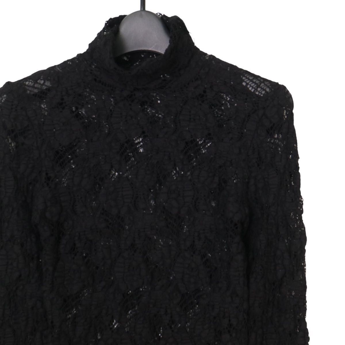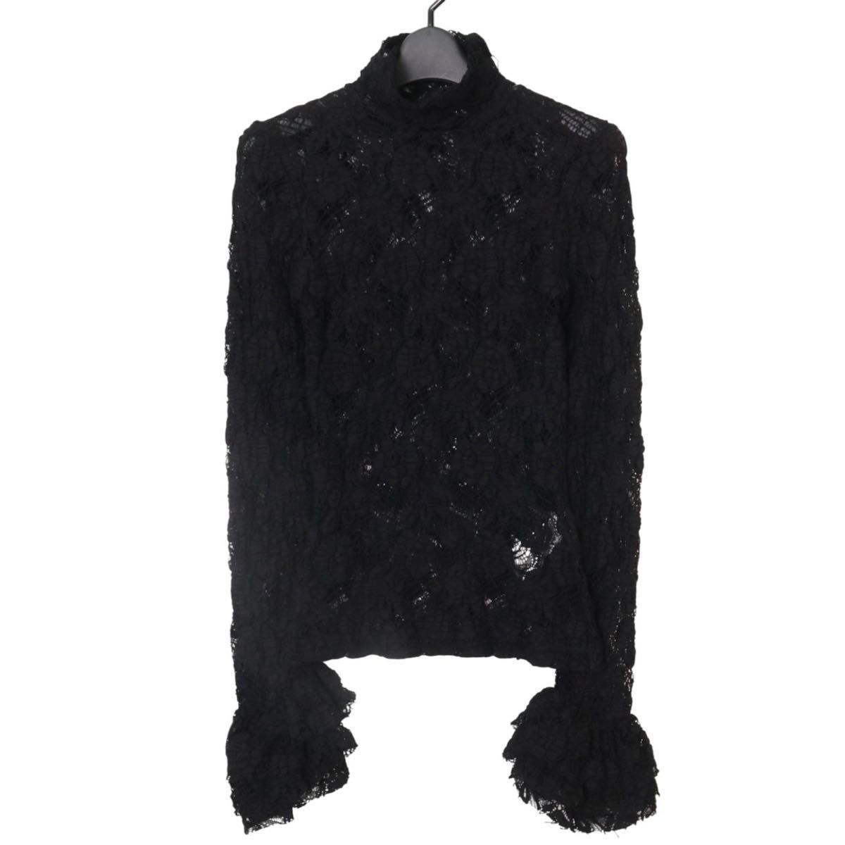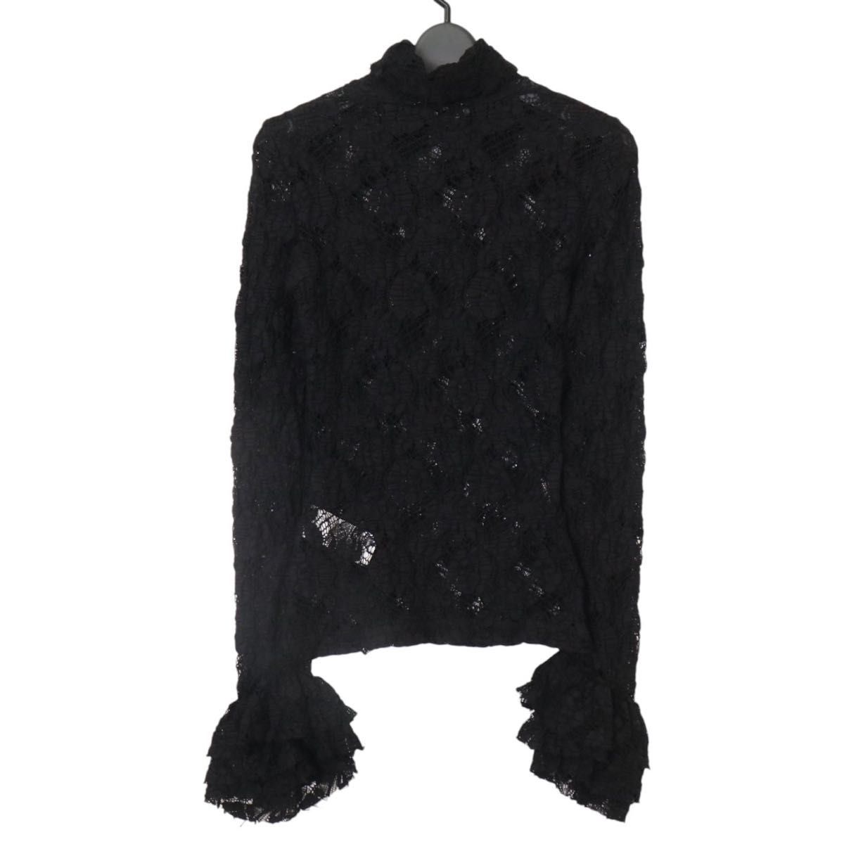 新品タグ付き レース フリル袖 黒 トップス レディース Mレース ブラウス 黒 ハイネック 長袖 イタリア製 高級レース モード系 ブランド服 透け感 パーティー 結婚式 二次会