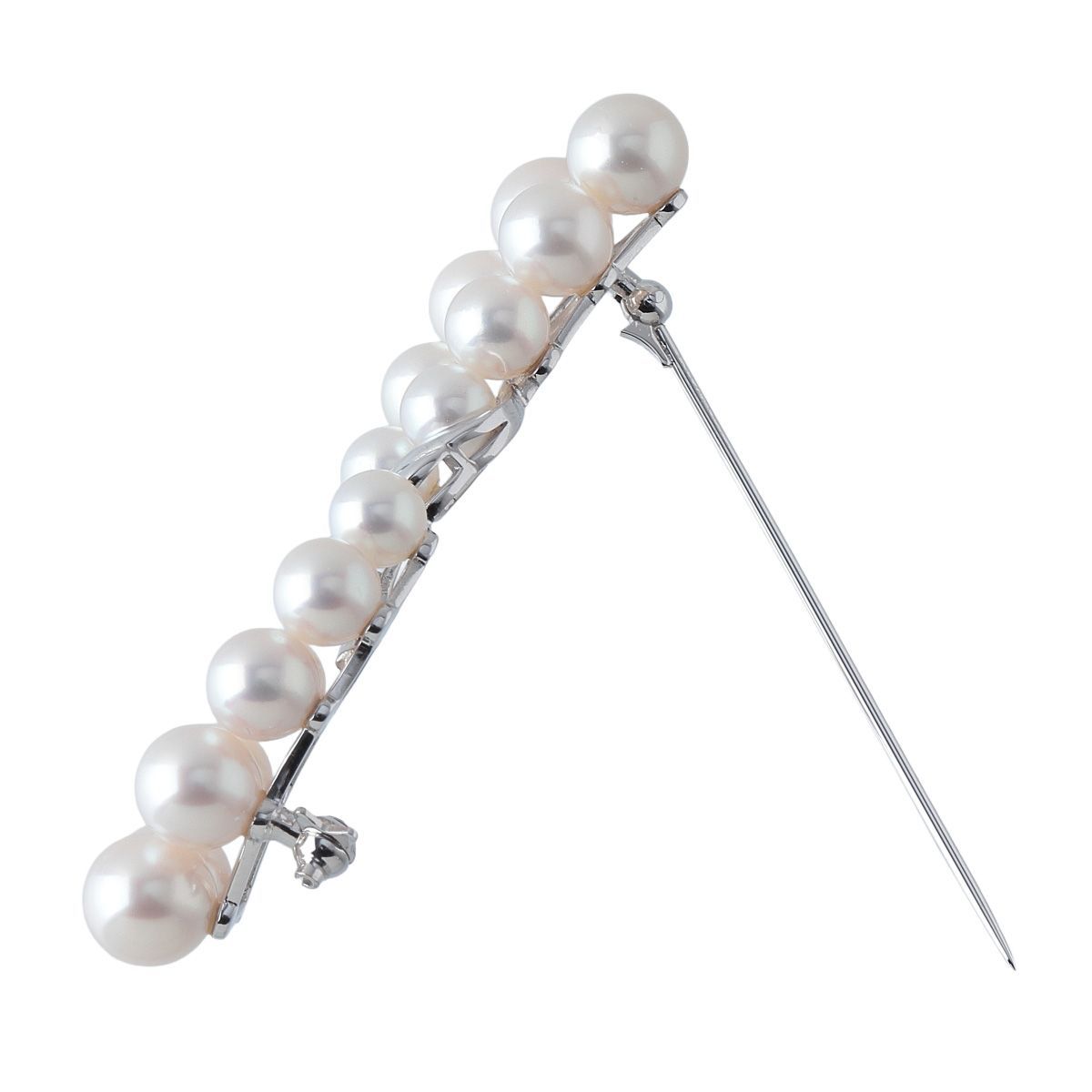 【商品状態】ミキモトのパールブローチです。ホワイトピンク系の色味の非常に上質なパールが使用されています。新品仕上げ済のためとても綺麗な状態ですが、地金部分に取り切れなかった細かいキズとパールにわずかな剥がれがあります。写真でご確認ください。またご使用には問題ありませんが、ロック部分の回す所が少し固くなっています。