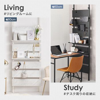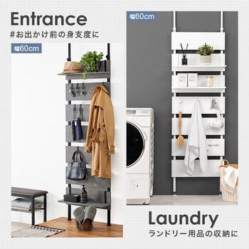 お部屋のいろいろな場所に設置できる突っ張り式ラック。