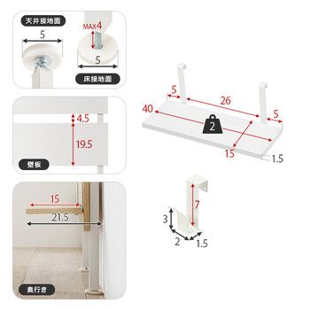 ■本体サイズ:(約)幅40×奥行21.5×高さ200〜265cm