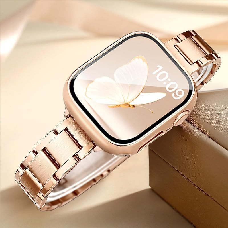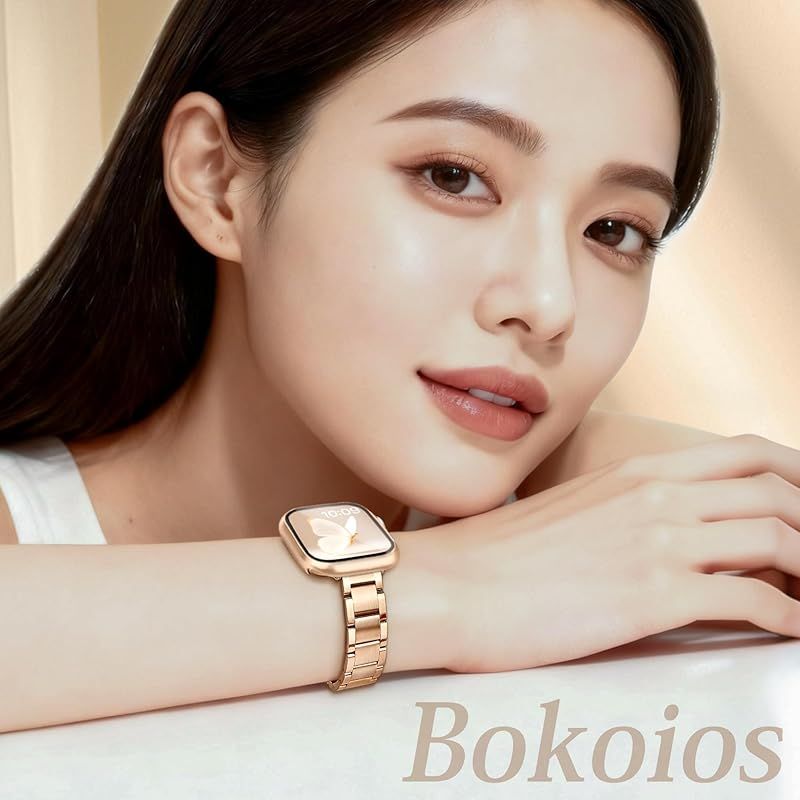 【シンプルでスリムなデザイン】控えめながらも遊び心のあるこのApple Watchバンドは、従来のスチールバンドのかさばりを解消し、女性にも最適な幅14mmのメタルバンドを採用しています。シンプルなデザインと滑らかなラインが、Apple Watchバンドの純粋な美しさを際立たせています。このApple Watchバンドを身に着けると、手首がよりスリムで魅力的に見えます。