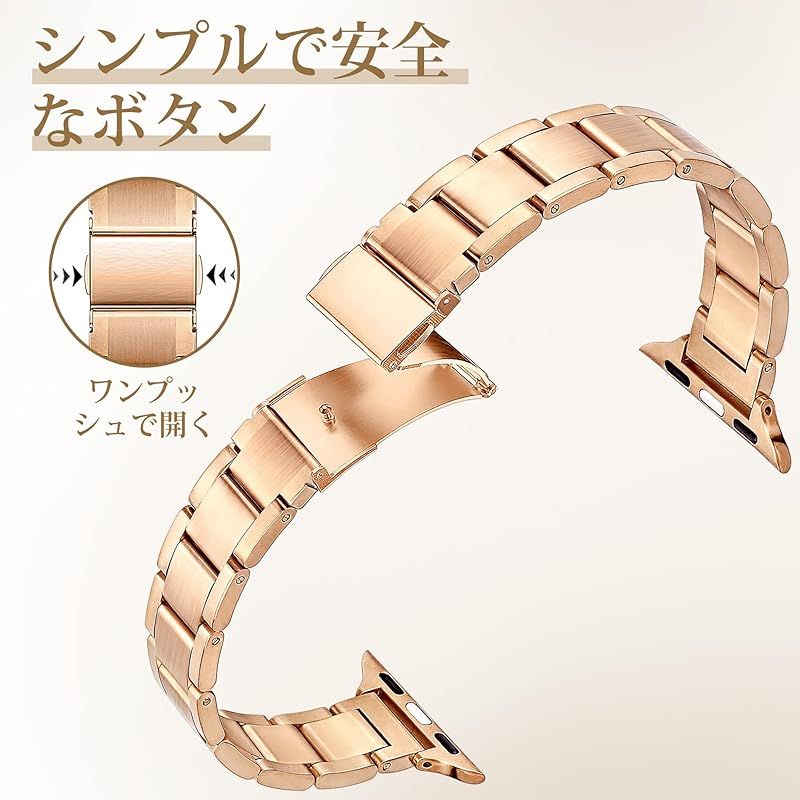 【素早く着脱】便利な金属製の折りたたみ式留め具で、Apple Watchバンドの着脱が非常に簡単です。留め具の左側または右側を押すだけで、素早く着脱できます。