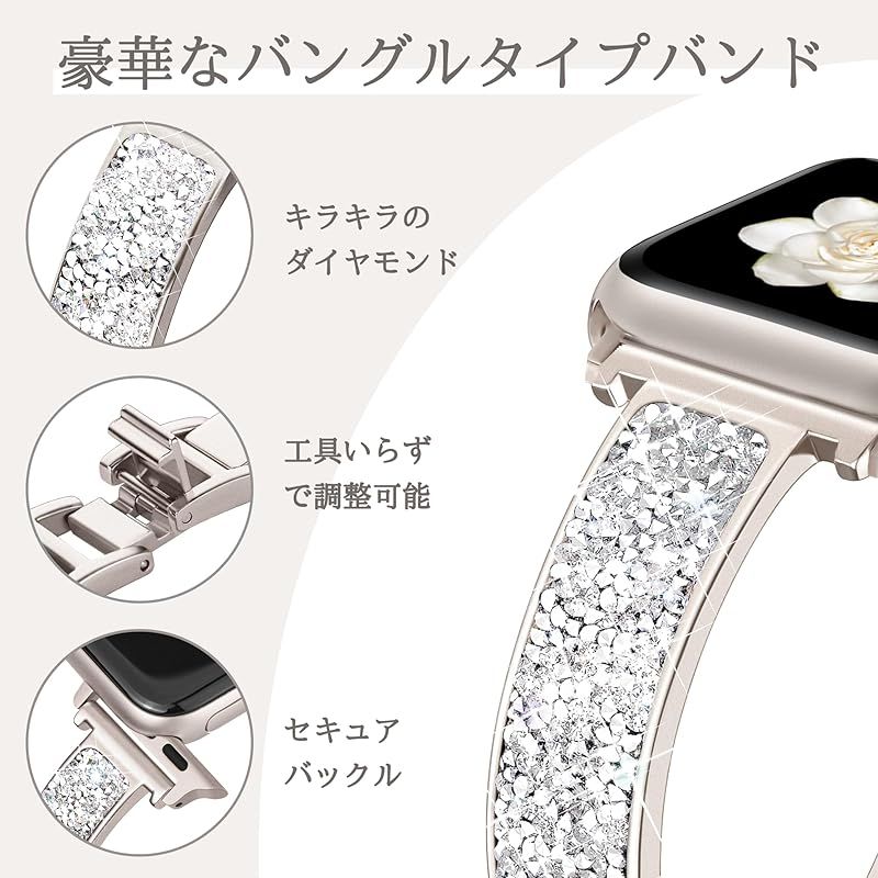 商品名:【新品】 Pleixiu バングルバンドApple Watch バンド アップルウォッチ バンド レディース38mm 40mm 41mm 42mm 44mm 45mm 46mm 49mm キラキラ金属交換ベルトiWatch Series 11 10 9 SE