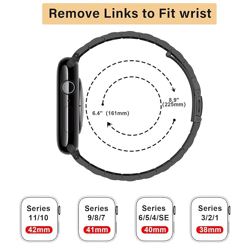 【互換性】Suphart スマートウォッチバンドはApple Watch シリーズ 11/シリーズ 10 (42mm)、シリーズ 9/シリーズ 8/シリーズ 7 (41mm)、SE 2025/SE 2022/SE 2020/シリーズ 6/シリーズ 5/シリーズ 4 (40mm)、シリーズ 3/シリーズ 2/シリーズ 1 (38mm)に対応し、6.4インチから8.9インチ (161mm-225mm)までの手首に適しています。時計を除いた金属ストラップの長さは7.7インチ(195mm)です。女性と男性向けに特別に設計されています。