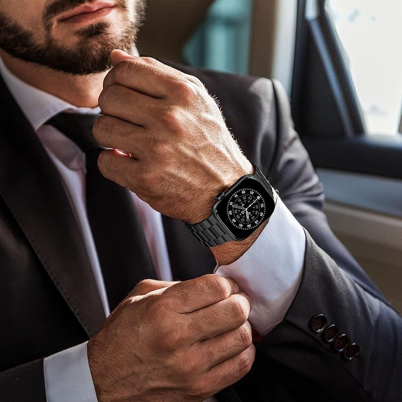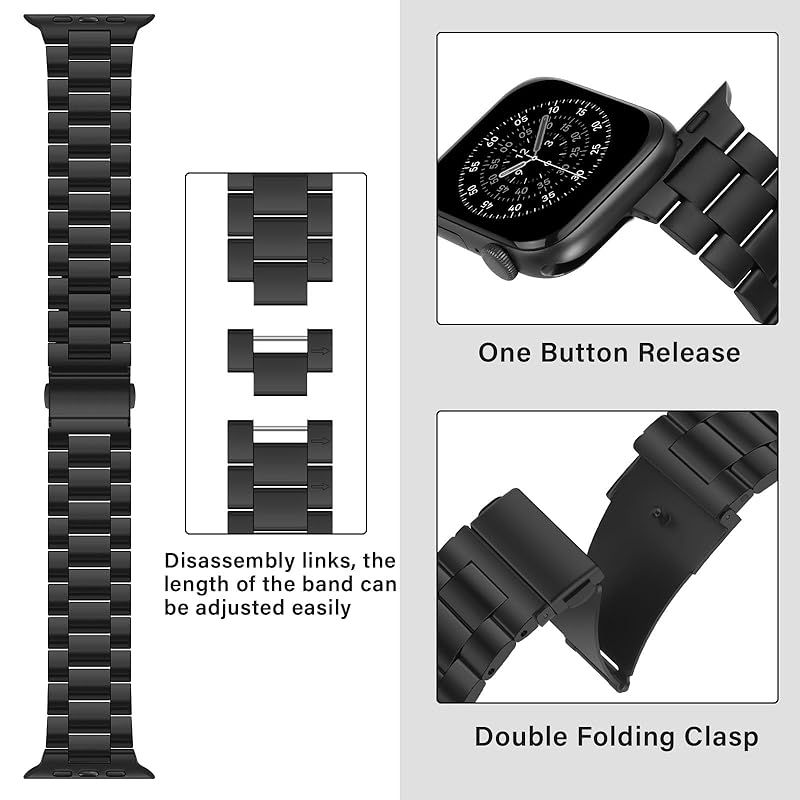 Suphart 調整ツール不要ストラップ 互換性ありアップルウォッチバンド 42mm 41mm 40mm 38mm, 男性用と女性用 ステンレス製 アップルウォッチ 交換ベルト Apple Watchバンド iWatch シリーズ11 10 9 8 7 6 5 4 3 2 1 SE用 (ブラック)