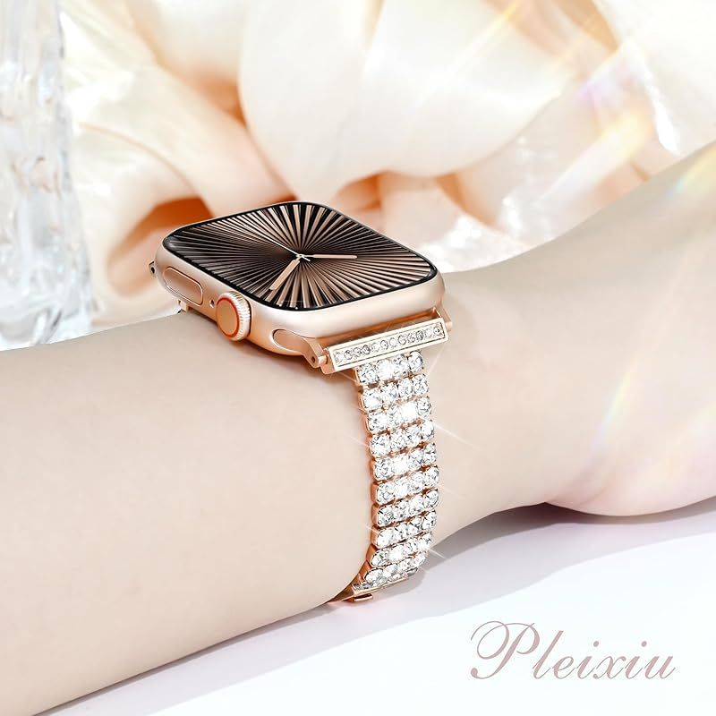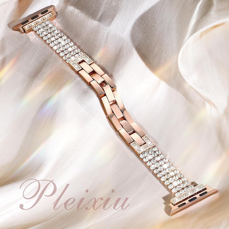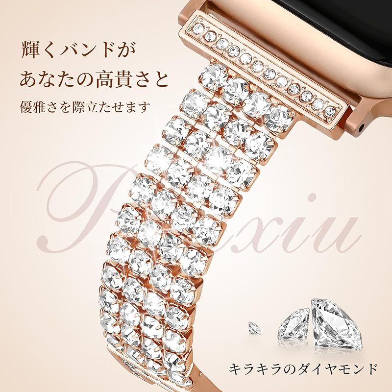 【夢幻的なダイヤデザイン】表面には4列の精緻なダイヤモンドが埋め込まれ、ファッション性が高く、視覚的に印象的なデザインです。各ダイヤモンドは丁寧にカットされ、眩い光を放ちます。Pleixiuアップルウォッチ バンドはあなたのエレガントな魅力を引き立てます。