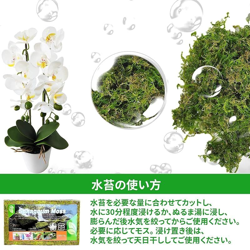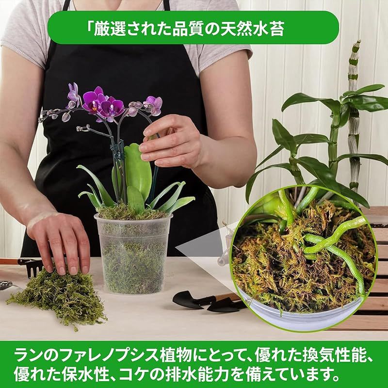 ??【優れた保水・排水性】水苔 は抜群の通気性と保水性を兼ね備えており、根腐れを防ぎながら植物の健康な成長を促進します。水苔は胡蝶蘭などのラン科植物に最適な栽培環境を提供します。
