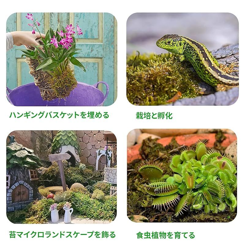 ??【多用途使用可能】水苔 爬虫類は蘭・多肉植物・食虫植物の栽培はもちろん、フラワーアレンジメントの素材としても活用可能です。水苔はナチュラルな風合いを演出するデザイン素材としても人気があります。
