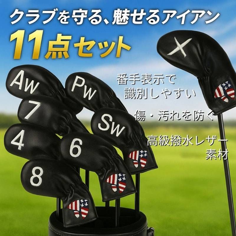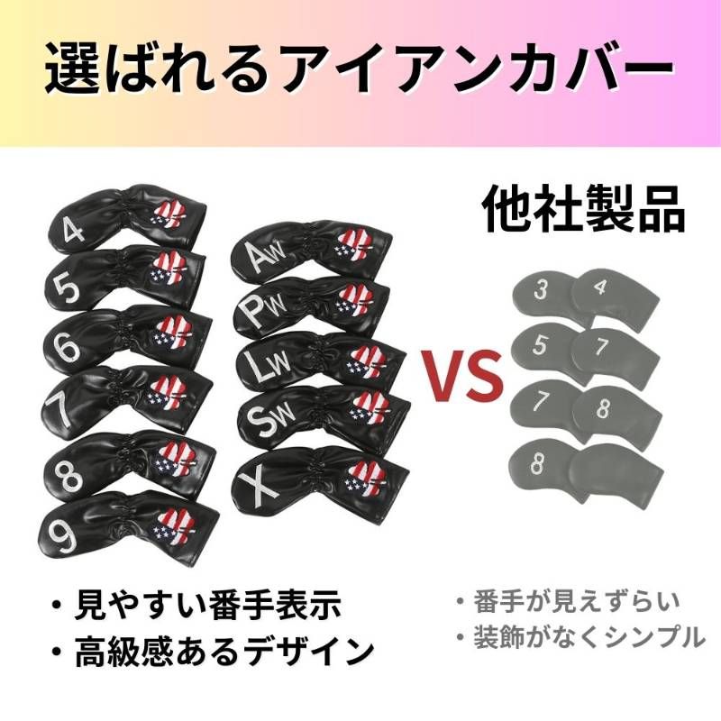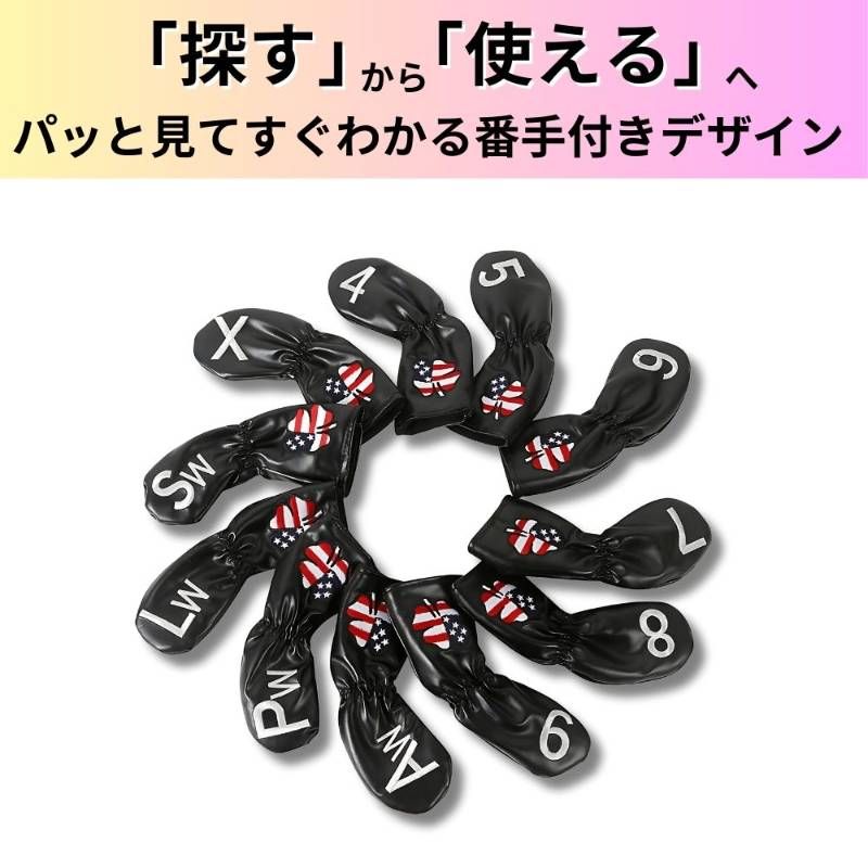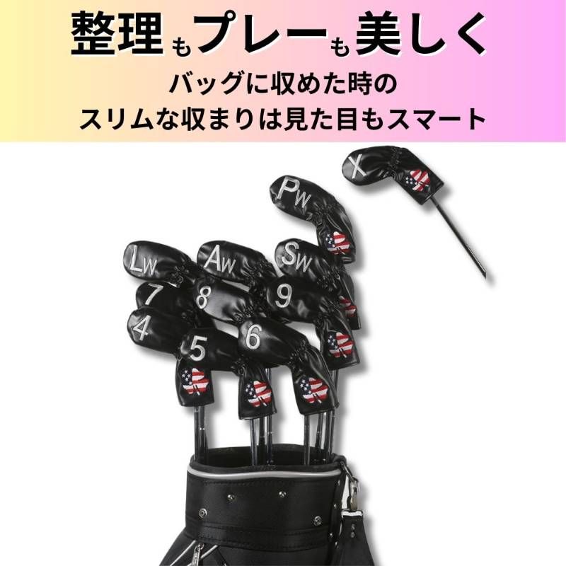 番手がひと目でわかる薄型アイアンカバー11点セット。
