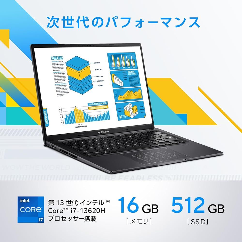 詳しくはこちら(asus.com/jp/support/Article/801/) 「主な仕様」【OS】Windows 11 Home 64ビット【カラー】インディーブラック【ディスプレイ】14.0型ワイドTFTカラー液晶、ノングレア、1,920×1,200ドット (60Hz)【本体サイズ】幅317.1mm×奥行き221.98mm×高さ19.9~20.15mm 約1.6kg【バッテリー駆動】約4.8時間 (動画再生時) / 約9.2時間 (アイドル時)【消費電力】最大約65W
