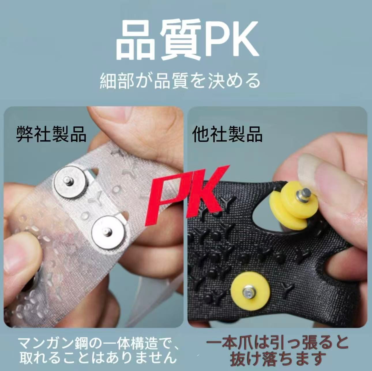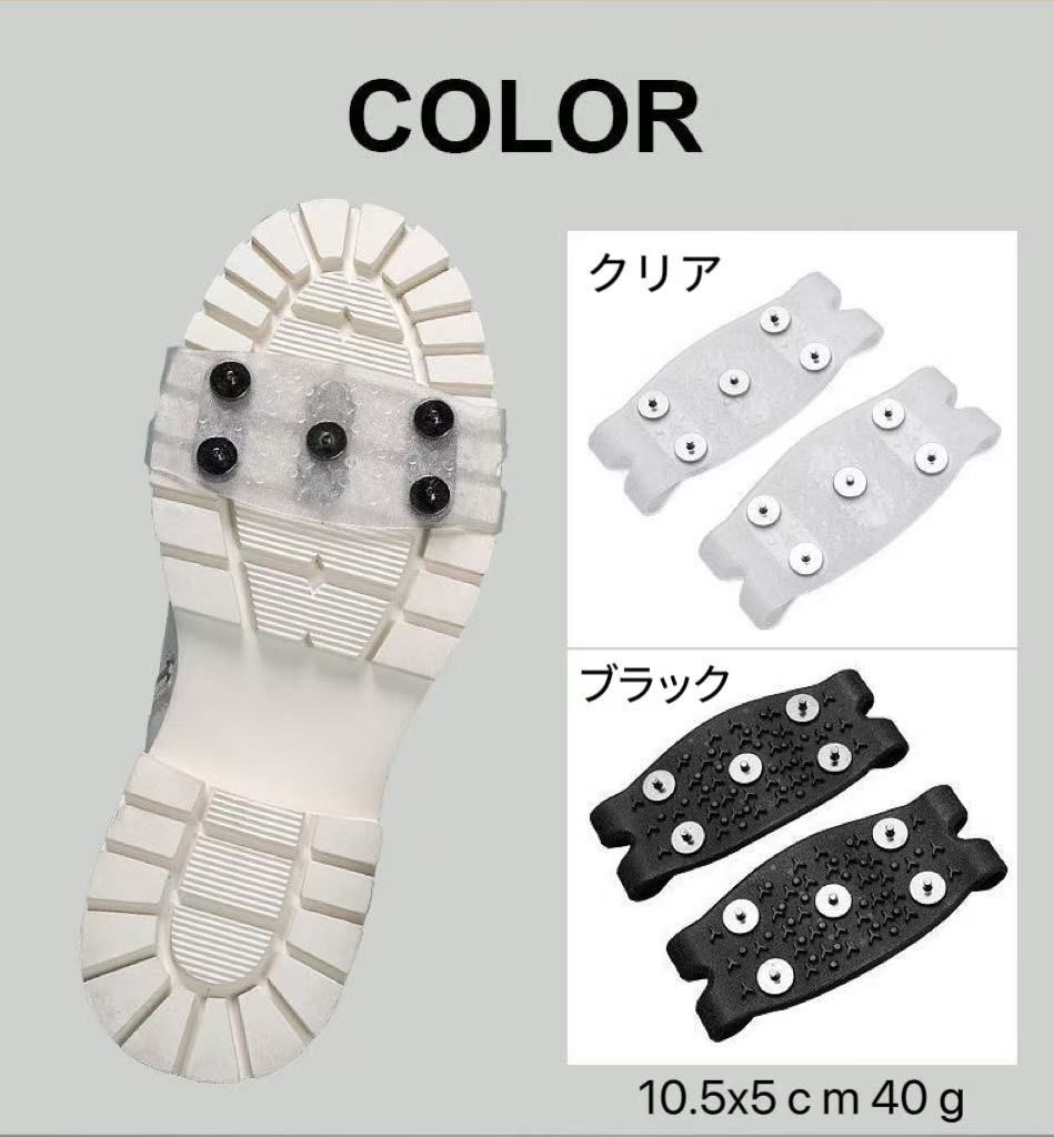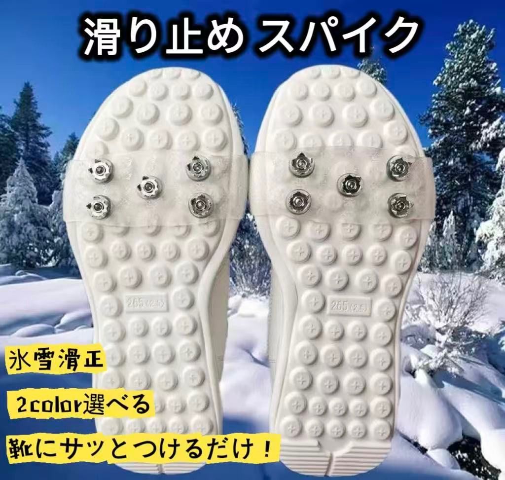 ●設計&素材にこだわった滑らない簡単装着スパイク● あなたの靴につけるだけでいつでも安全 この冬はこのスパイクで安全に乗り切る ※靴は付属しません 【取れにくい設計で安心】 取れやすい爪が多い中、独自の設計で爪が取れない!雪道、凍結した道路、山道でも安心して歩ける進化版のすべり止めスパイクです。 また、爪も長すぎないため、つまずきにくく、初心者から上級者まで満足いく歩きやすさを実現! 【装着も簡単!】 靴の前側にしっかり装着で完了。誰でも簡単に装着できます。出先で必要、急に必要といったときも画板にポンっと入れておけばいつでもご自分の靴がスパイクに早変わりです。 【選べるカラー】 カラーは、ブラックとクリア(半透明)の2種類からお選びください。(詳しくは画像をご覧ください。) サイズは、だいたい20~29cmの靴まで対応しているので、男女兼用でどなたでもOK! 素材:TPE弾性シリコン、マンガン鋼 雪かきや、凍結してしまった道を歩いたり、普段の生活でも危険がいっぱいです。転倒での大事故につながりかねません。 登山や、氷上釣り、ハイキングはもちろん、使える場面が想像できる方は、ぜひご活用ください。 ※日本語取扱説明書、撮影用小物類などは付属しておりません。 ※簡易包装でのお届けとなります。 ※モニターにより色合いが若干違いが生じる場合がございます。 ※デザインは入荷時期により若干変化する場合がございます ※海外製造品のため、多少の匂い軽微な傷や汚れ、個体差等ある場合がございます。 ※商品の使用により生じた如何なる損害・被害も弊社では一切の 責任を負いかねますので予めご了承ください。 ※発送方法について:お届け先、個数によって配送情報に記載の配送業者とは異なる場合がございます。日本郵便、佐川急便、またはセイノーエクスプレス(大型商品)でお届けいたします。なお、配送業者はお選びいただけませんので、ご了承ください。