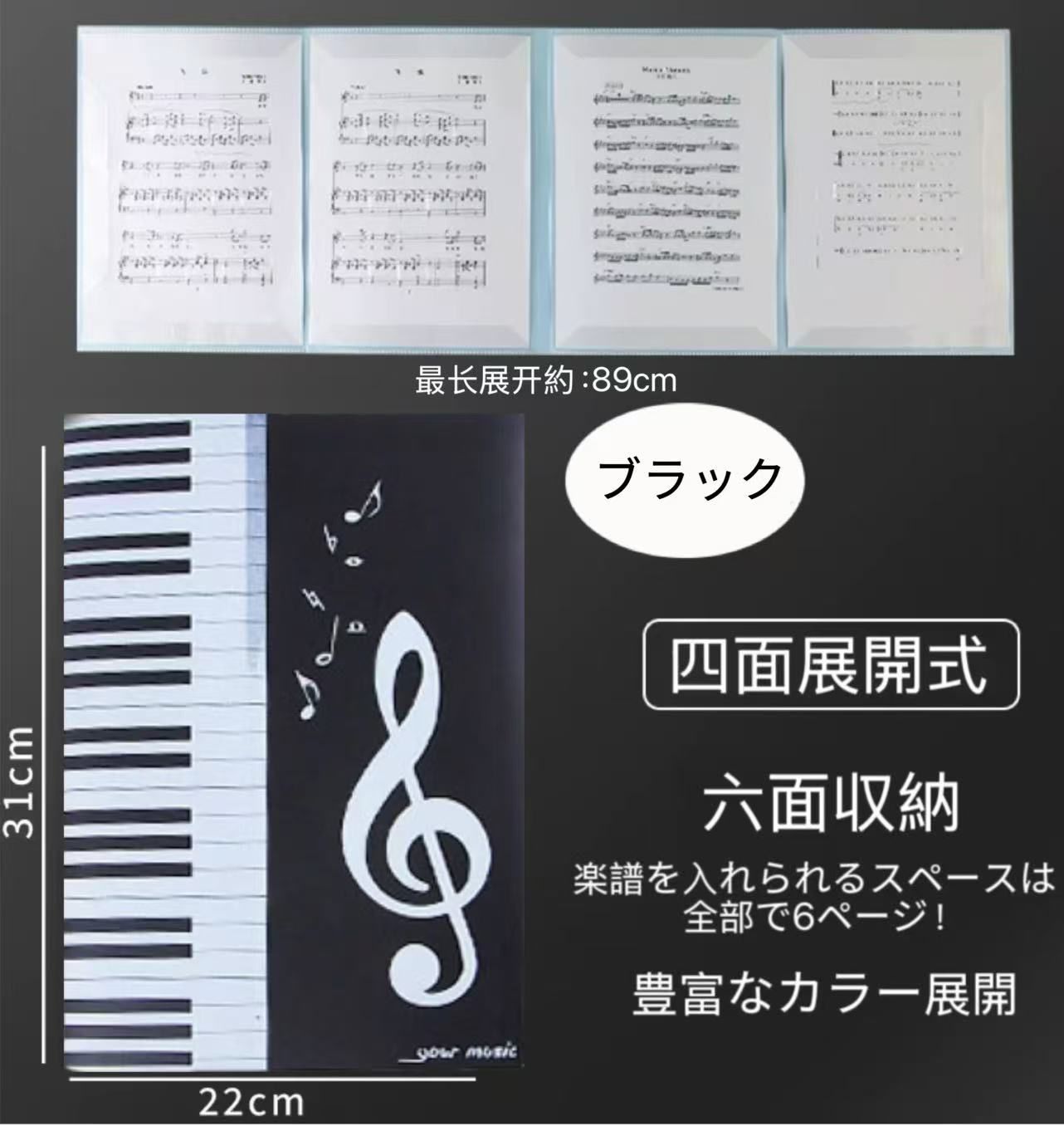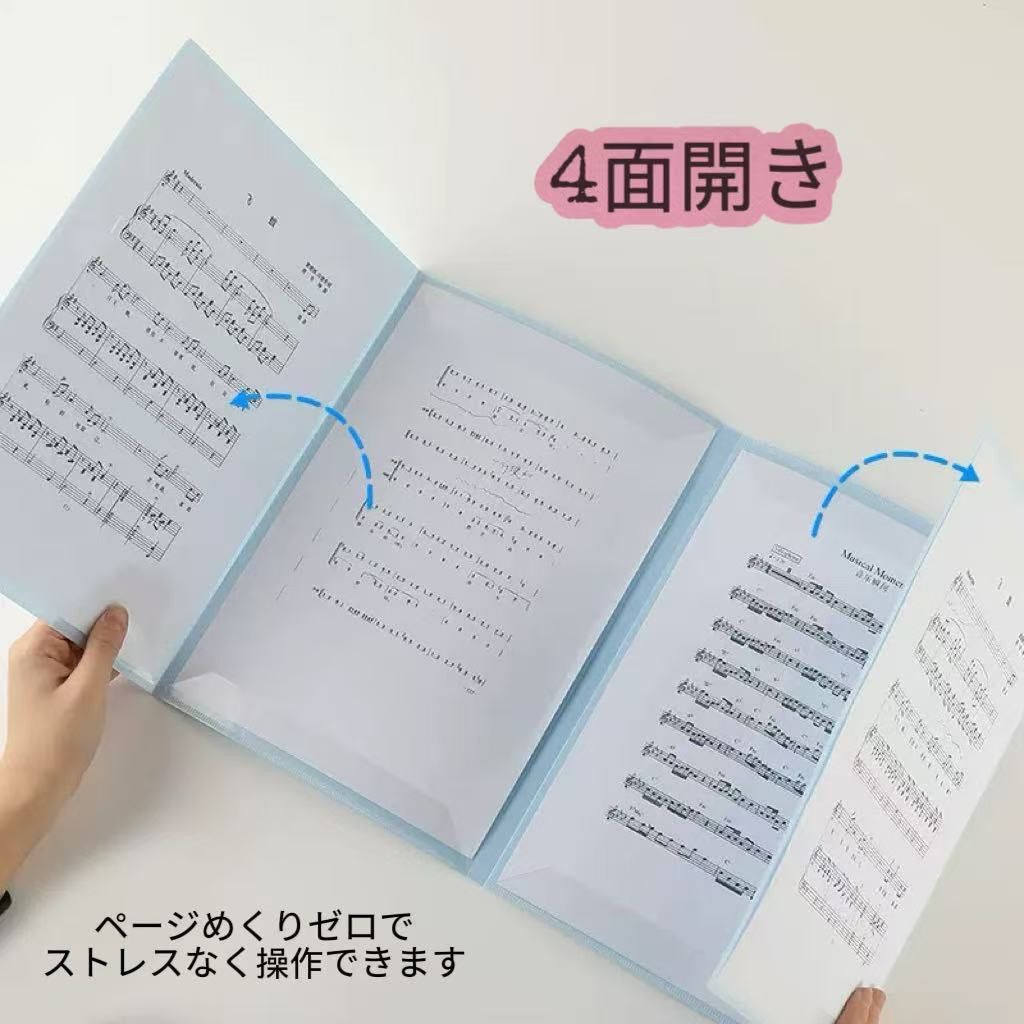 【直接書き込める】 一般的なファイルとは違い譜面の端だけを固定しているので、メモなどを直接書きこめる! メモの度に楽譜を出し入れする手間がかからない! 書きたいタイミングでサッと書き込めるのでピアノや吹奏楽などの練習にもぴったり! 【4面開き】 全6ページのうち4ページを一面に開ける! 4面を開いた状態で使えば楽譜をめくる動作を省略できて発表会などの場でも大活躍! 【反射しない】 楽譜の端だけを固定するタイプなので、照明の光がファイルに反射して譜面が見えないなどの事故を防止!【サイズ】 A4サイズ ※詳細サイズは画像をご確認ください。 ※日本語取扱説明書、撮影用小物類などは付属しておりません。 ※簡易包装でのお届けとなります。 ※モニターにより色合いが若干違いが生じる場合がございます。 ※デザインは入荷時期により若干変化する場合がございます ※海外製造品のため、多少の匂い軽微な傷や汚れ、個体差等ある場合がございます。 ※商品の使用により生じた如何なる損害・被害も弊社では一切の 責任を負いかねますので予めご了承ください。 ※発送方法について:お届け先、個数によって配送情報に記載の配送業者とは異なる場合がございます。日本郵便、佐川急便、またはセイノーエクスプレス(大型商品)でお届けいたします。なお、配送業者はお選びいただけませんので、ご了承ください。