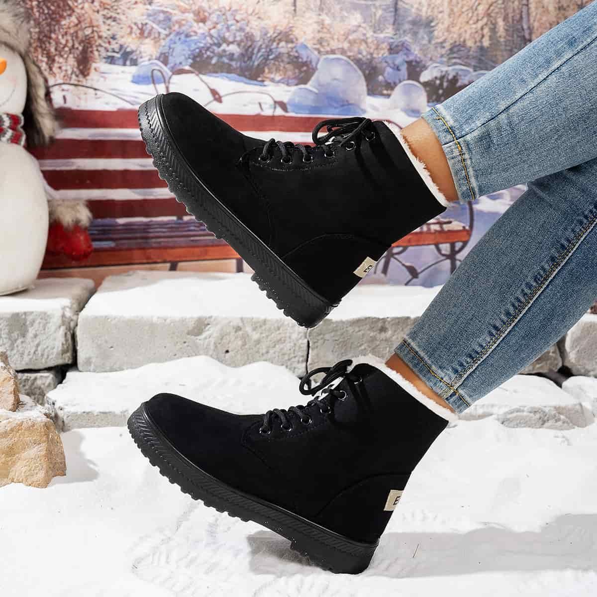 厚底ブーツ クッションインソール 履きやすい 歩きやすい 防風仕様 防滑ソール モコモコ素材 裏起毛素材 大きいサイズ 通勤 通学 旅行用シューズ トレンドアイテム カジュアルコーデ シンプルデザイン 上品スタイル ガーリーファッション ストリート系 防雪仕様 防寒対策 ウィンターブーツ デイリーユース フェイクレザー 耐久性抜群