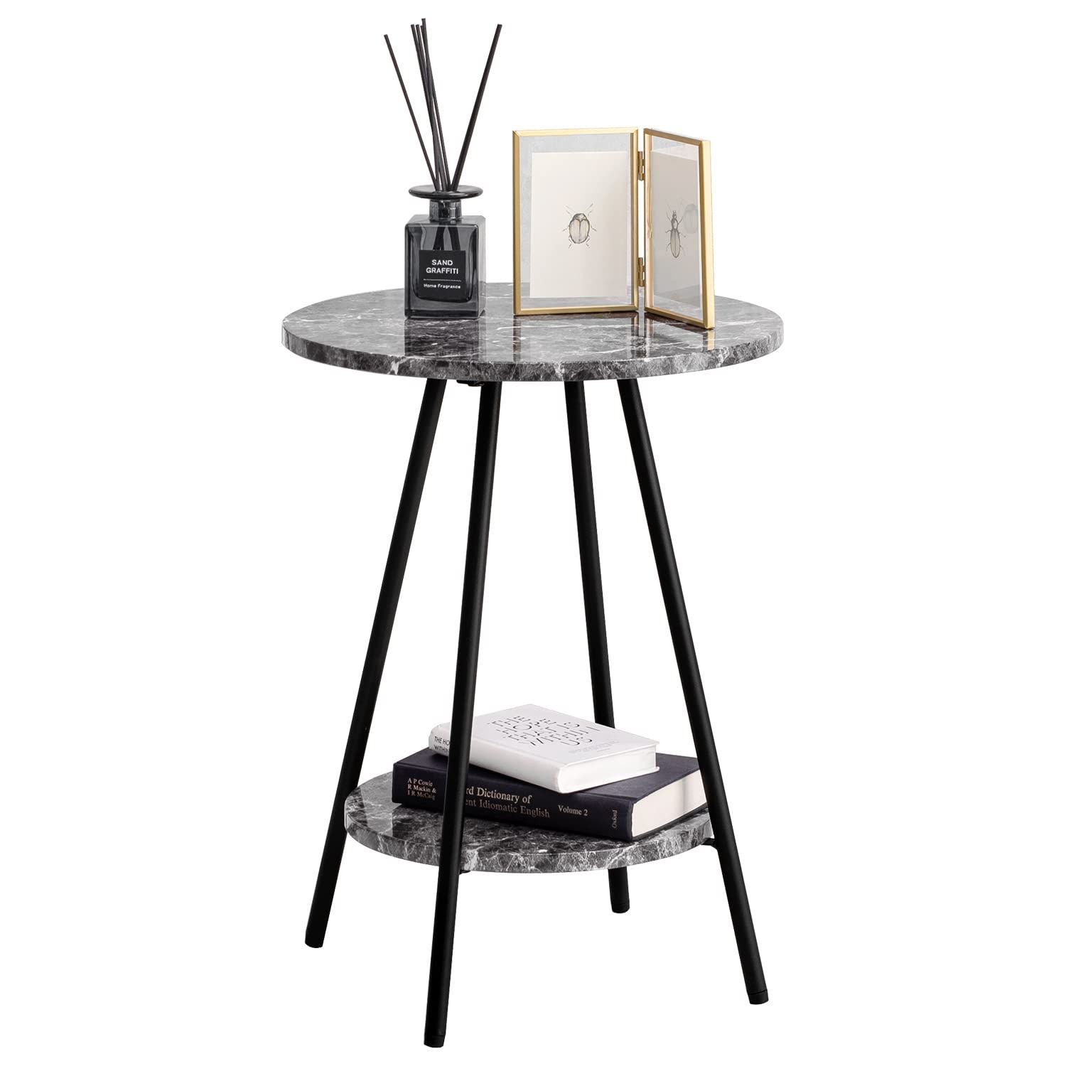 ラウンドタイプ_ブラック 萩原(Hagihara) サイドテーブル 丸型 机 ナイトテーブル ソファサイドテーブル 耐水 軽量 約3kg 大理石調 モダン 幅40×奥行40×高さ54 ブラック LST-4660MBK