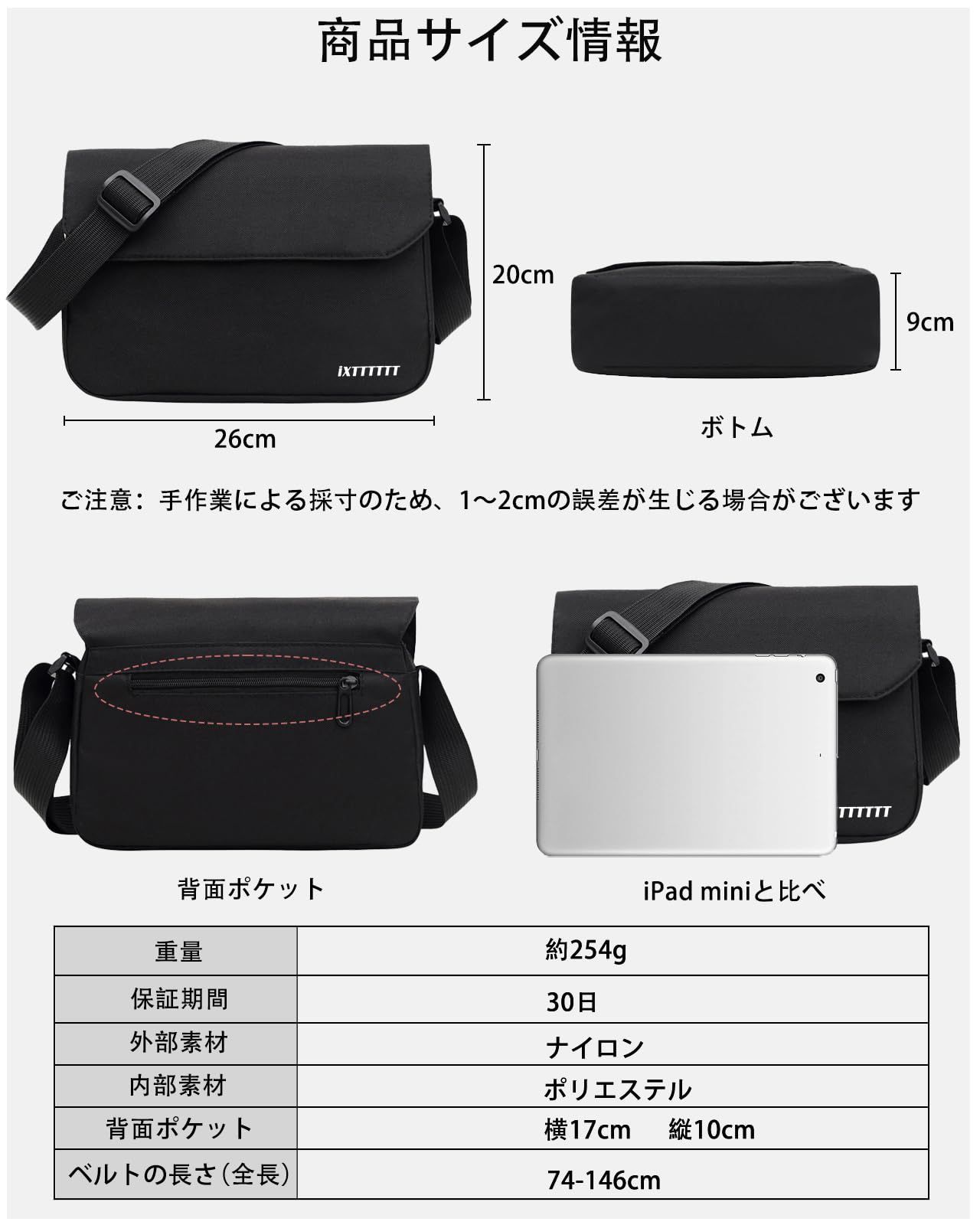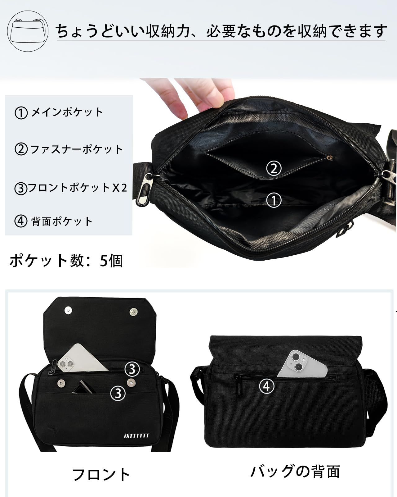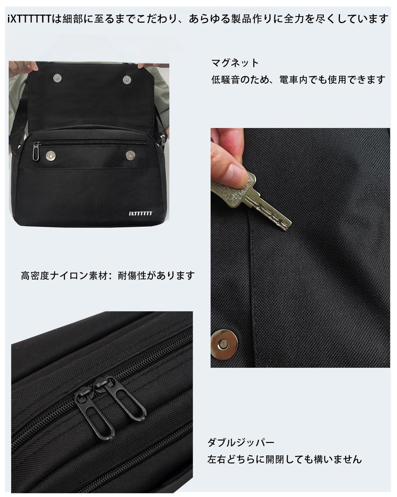 [iXTTTTTT] ショルダーバッグ 肩掛けバッグ メンズ レディース: 斜めがけバッグ 軽量 小さめ ナイロン シンプル マグネット ダブルファスナー 斜めかけ 男女兼用