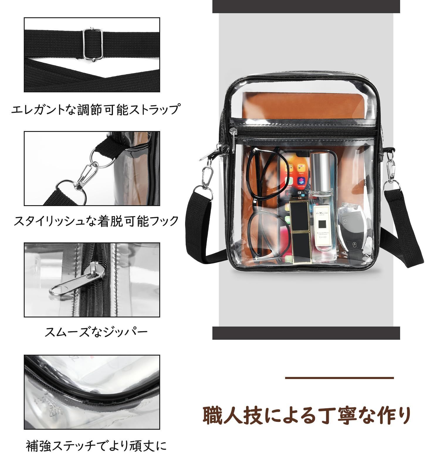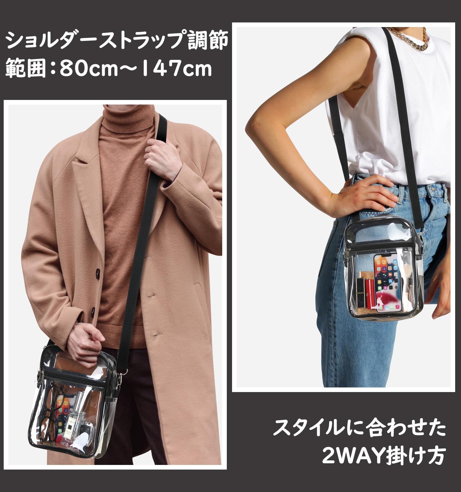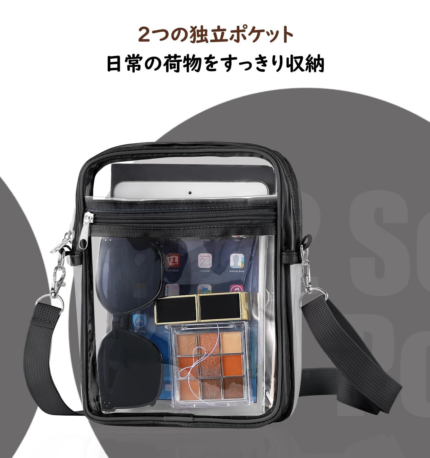 [MoKo] 透明バッグ クリア 斜めがけ 推し活 痛バッグ セキュリティチェック対応 ストラップ調節可能 化粧ポーチ スタジアム/スポーツ/ビーチ/コンサート 男女兼用