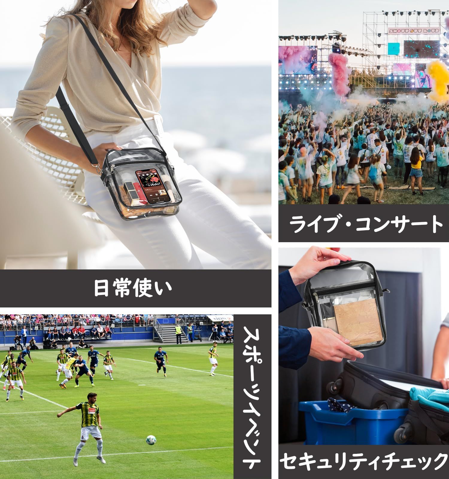 「視認性の高い透明デザイン」従来の不透明バッグのように中身を探すためにいちいち開封する必要がなく、外から一目で内容物を確認できる革命的な利便性を実現しました。朝の忙しい時間帯や、混雑した会場内での小物探しに最適です。特にコンサート会場やフェスティバルなど暗い場所でも、中身がすぐに把握できるため、スマートフォンやチケットを素早く取り出せます。また、スタジアムや競技場、大型コンサート会場、空港保安検査や学校の入学試験会場など、厳重な持ち物チェックが求められる場所でも煩雑な手荷物検査を大幅に短縮でき、ストレスフリーな入場が可能です。