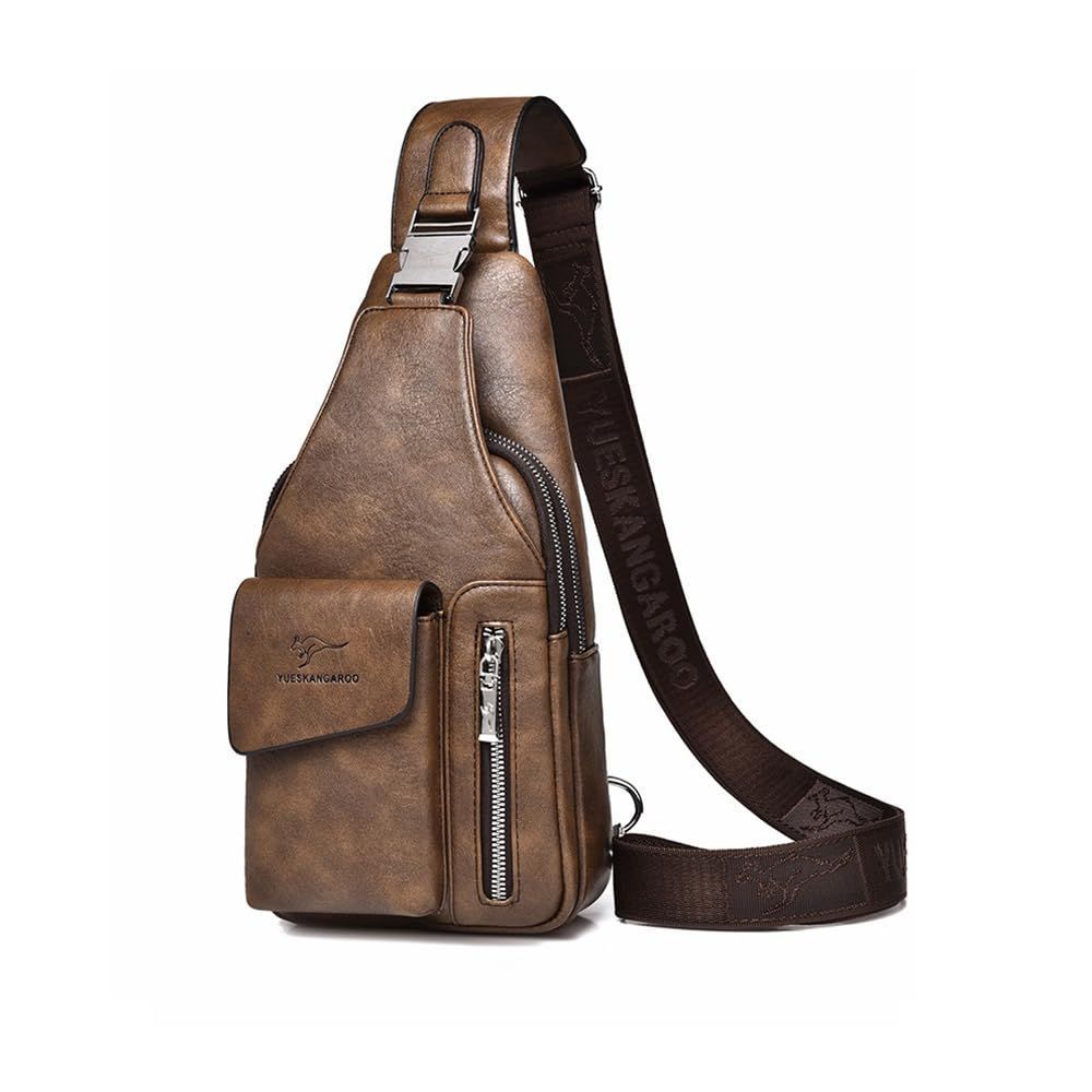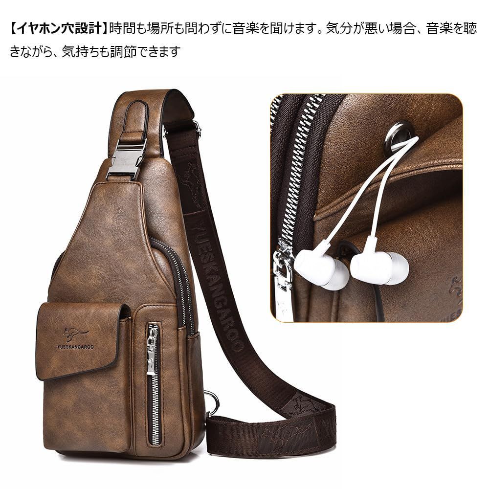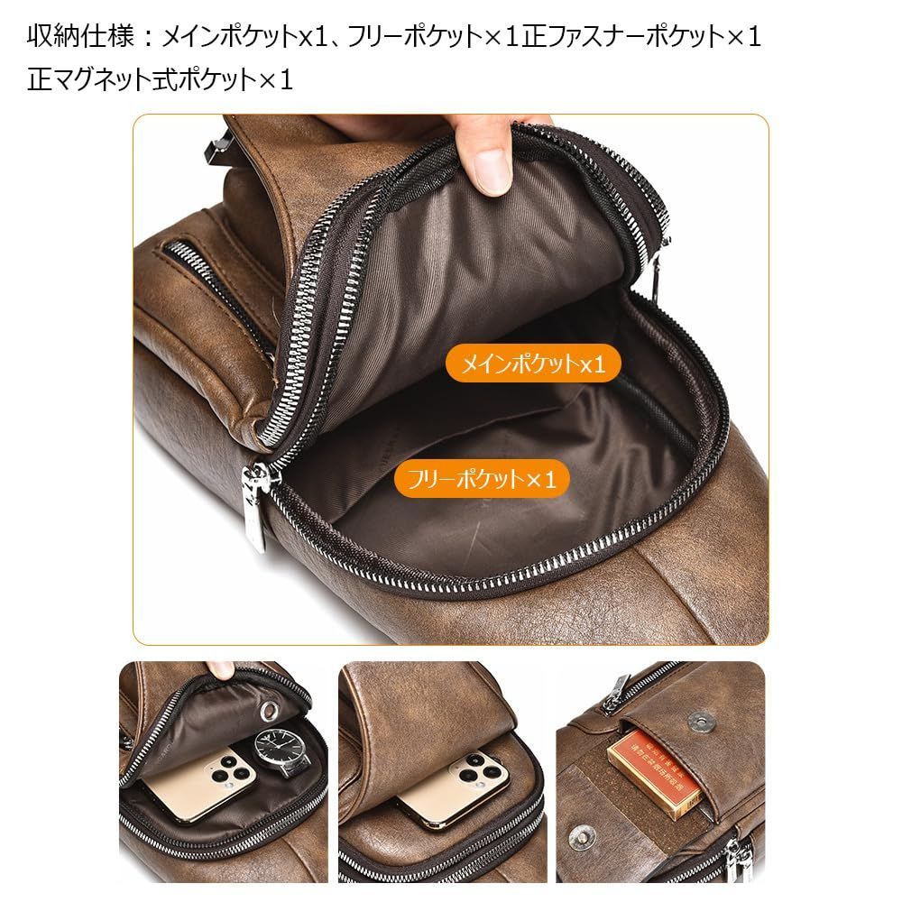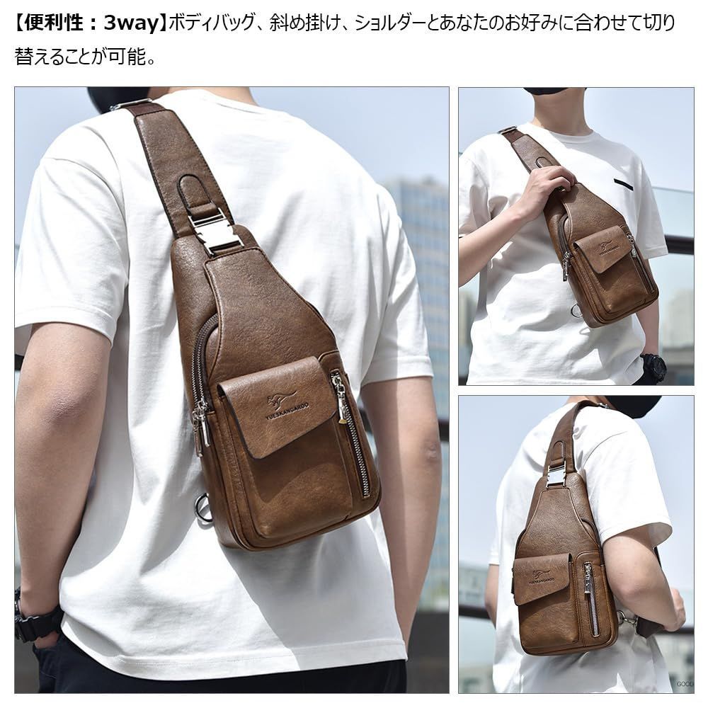 [Whatna] 革 ショルダーバッグ メンズ 3way 斜め掛け胸バッグ 手提げ 手持げ セカンドバッグ イヤホン穴付 キーリング付 Ipad 10.5収納可 横型 カジュアル フォーマル ビジネス 通学 通勤 肩掛け 自転車かばん