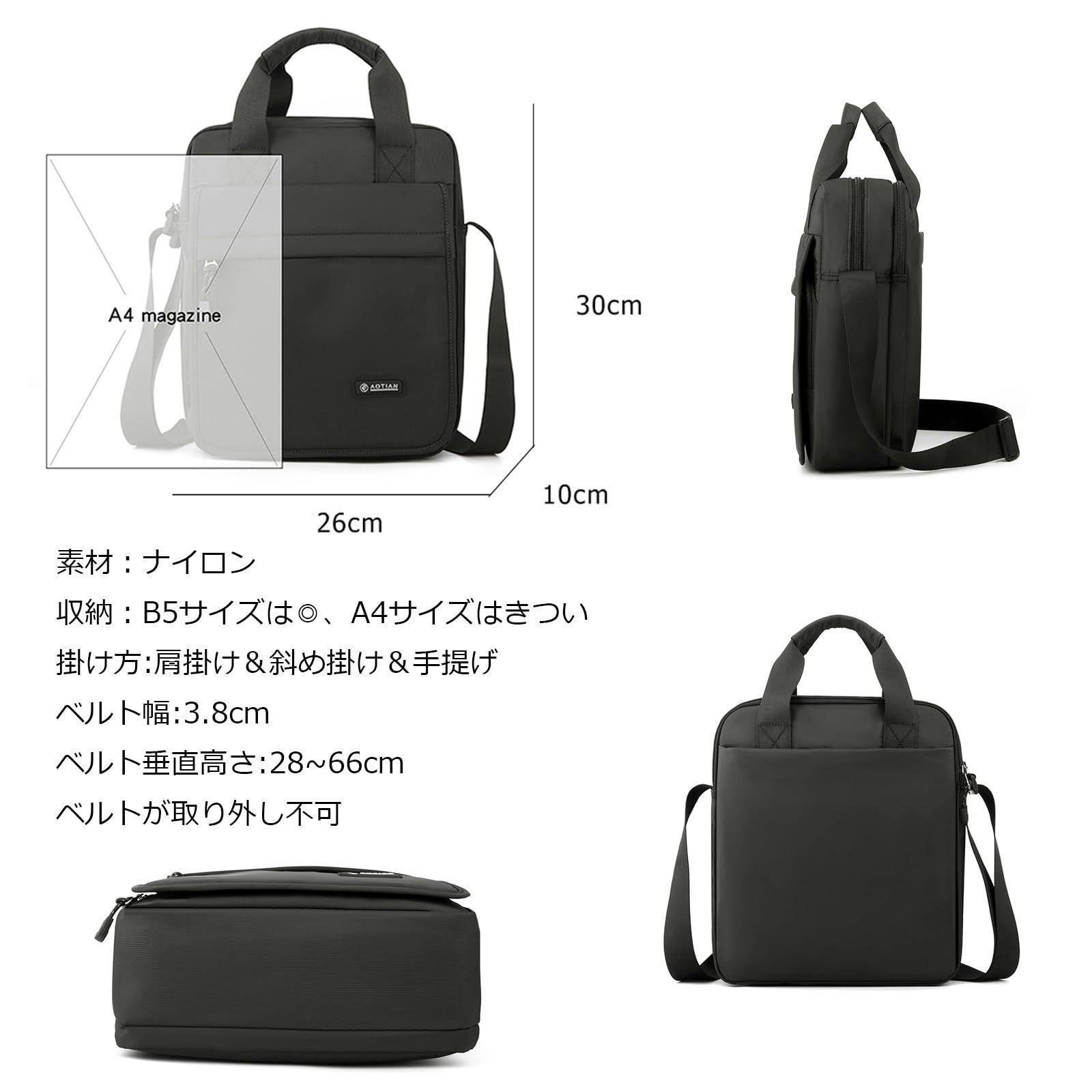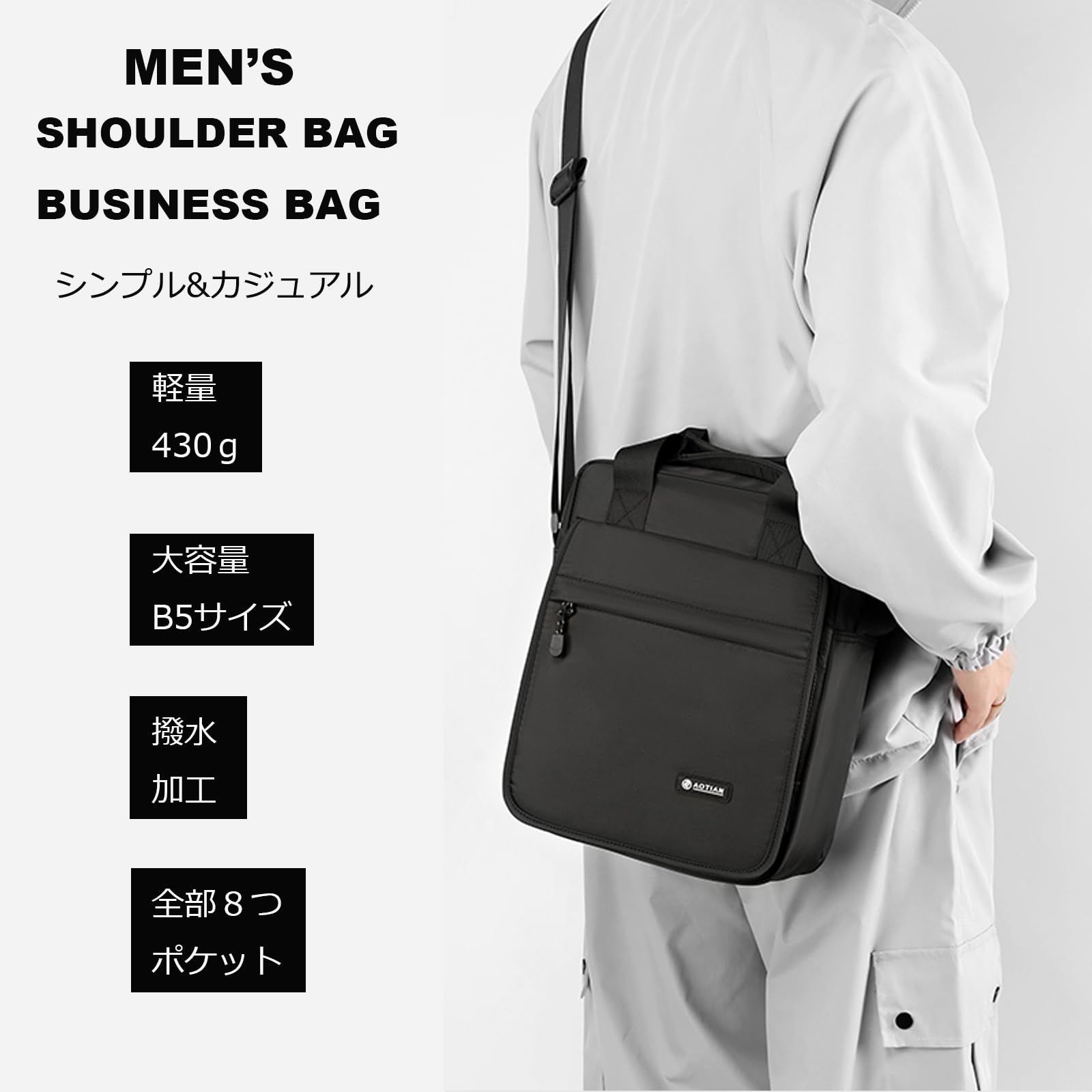 [manukori] ショルダーバッグ メンズ 斜めがけ B5手提げ かばん ポケット多い 軽量 防水 ナイロン バッグ 縦型