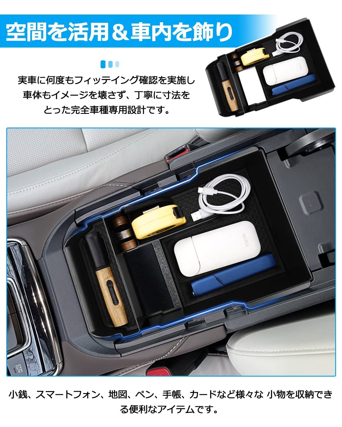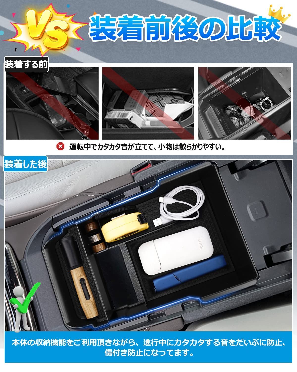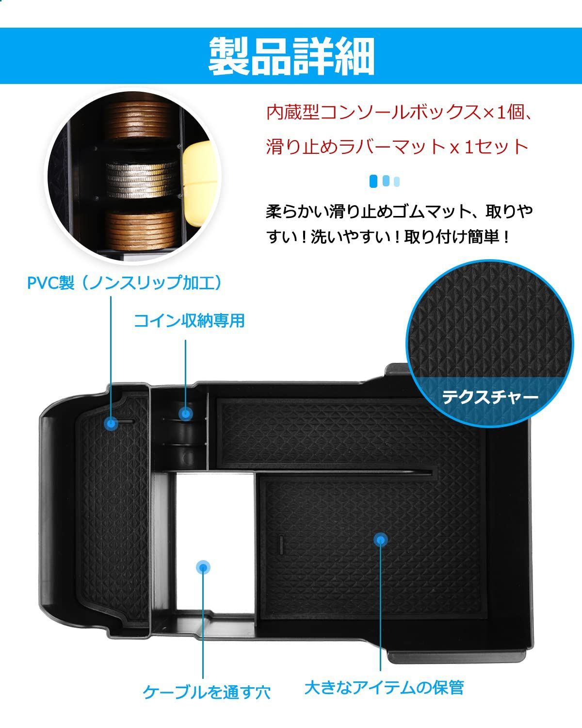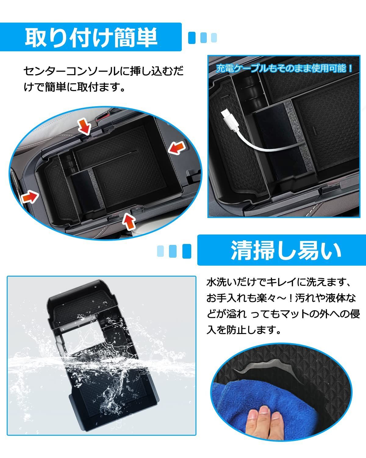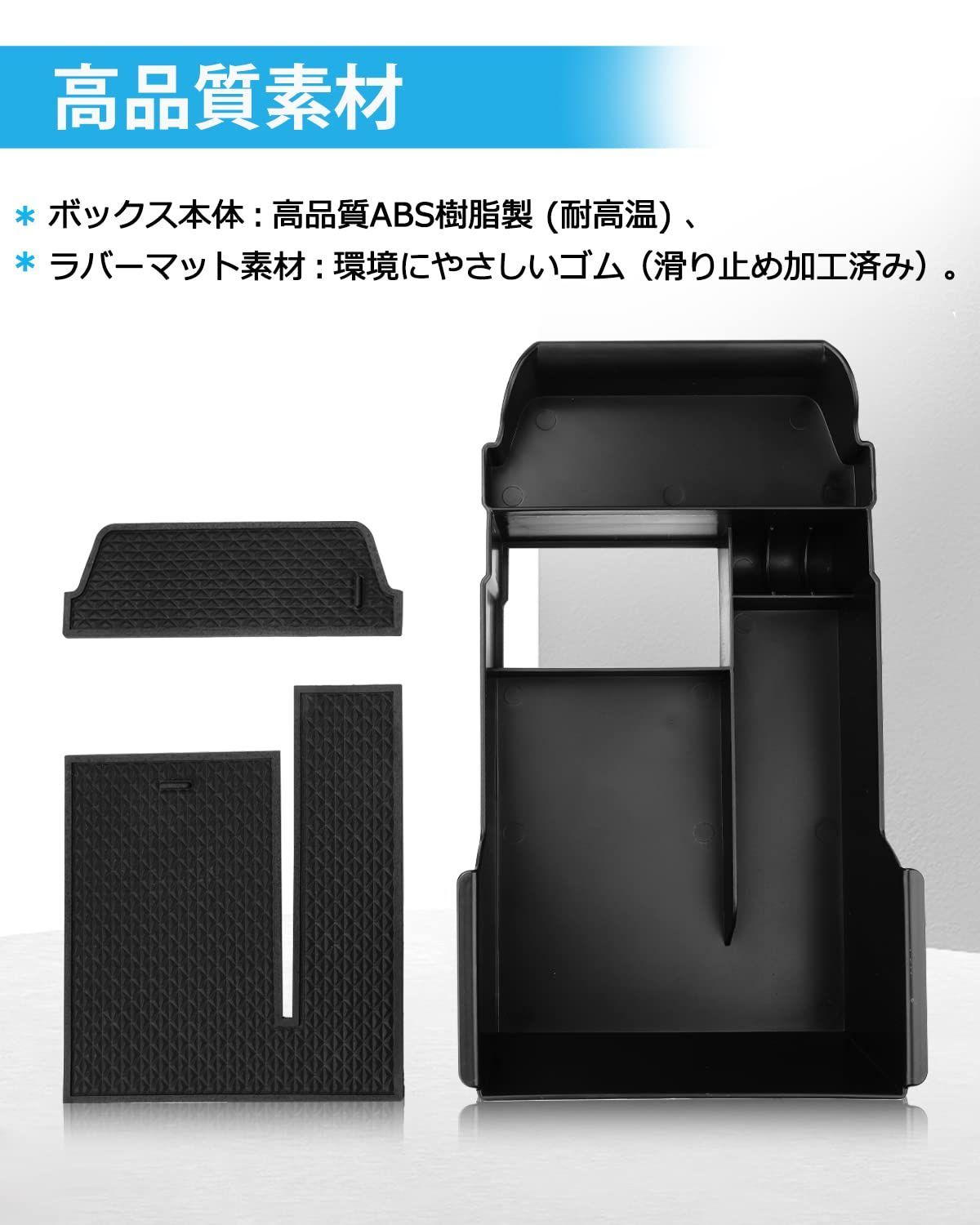 2.【セット内容】:コンソールボックス*1、ラバーマット*1セット。【素材】:高品質ABS樹脂製 (耐高温) ラバーマット素材:環境にやさしいゴム(滑り止め加工済み)。防塵、防水、防キズ、防雑音、小物が動いた際のカタカタ音を減少する。 日常使用で、ゴム素材なので汚れても水洗いをすれば繰り返し使用OK。