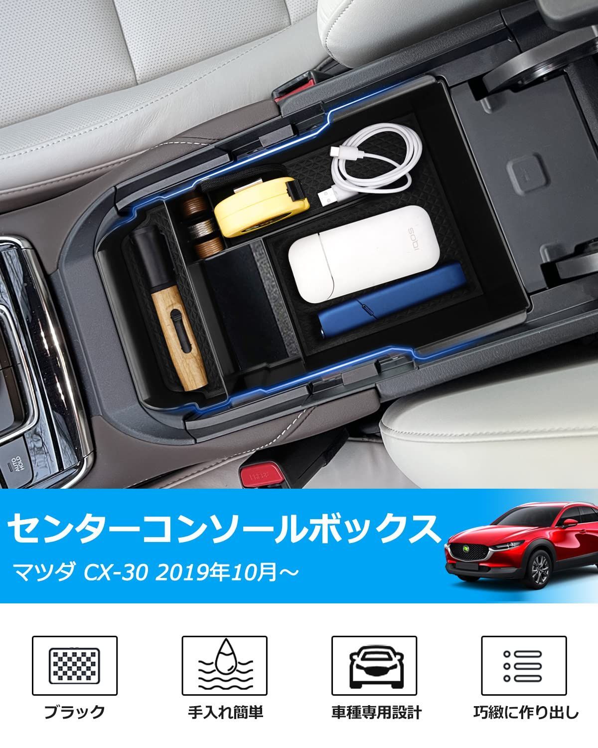 Auto Spec マツダ CX-30 DM系 コンソールボックス MAZDA CX30 2019年10月~ センターコンソールトレイ コンソールボックス 小物入れ 収納ボックス 車種専用 内装 パーツ ラバーマット付き 滑り止め カスタムパーツ インテリアパーツ 収納アクセサリー コイン収納 取付簡単 (マツダ CX-30 DM系 ブラック)