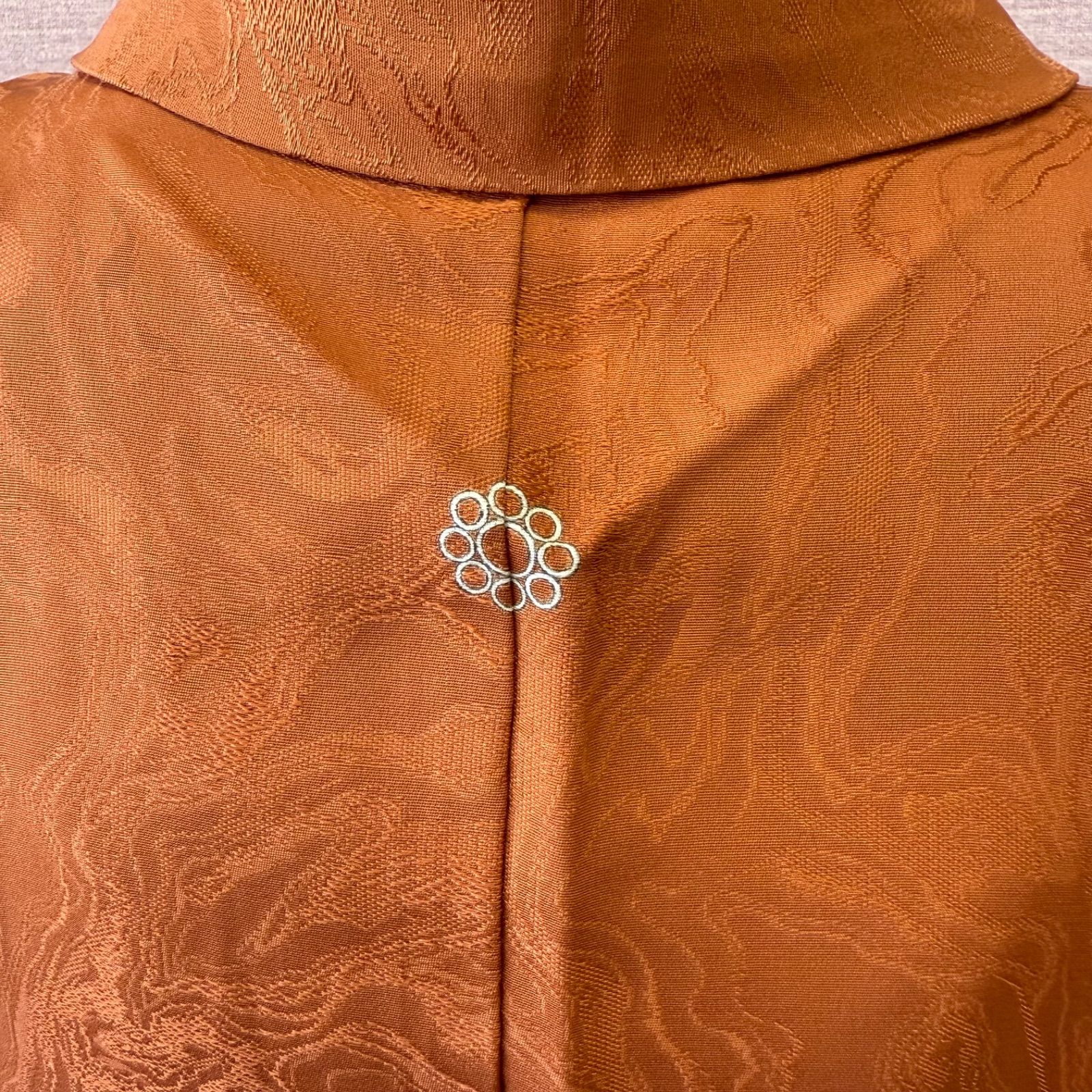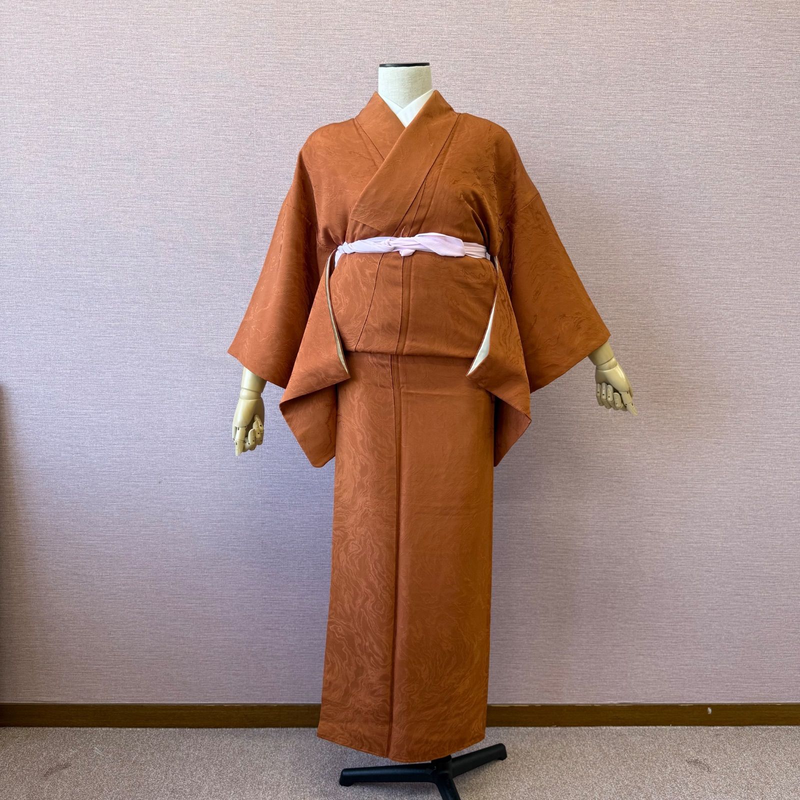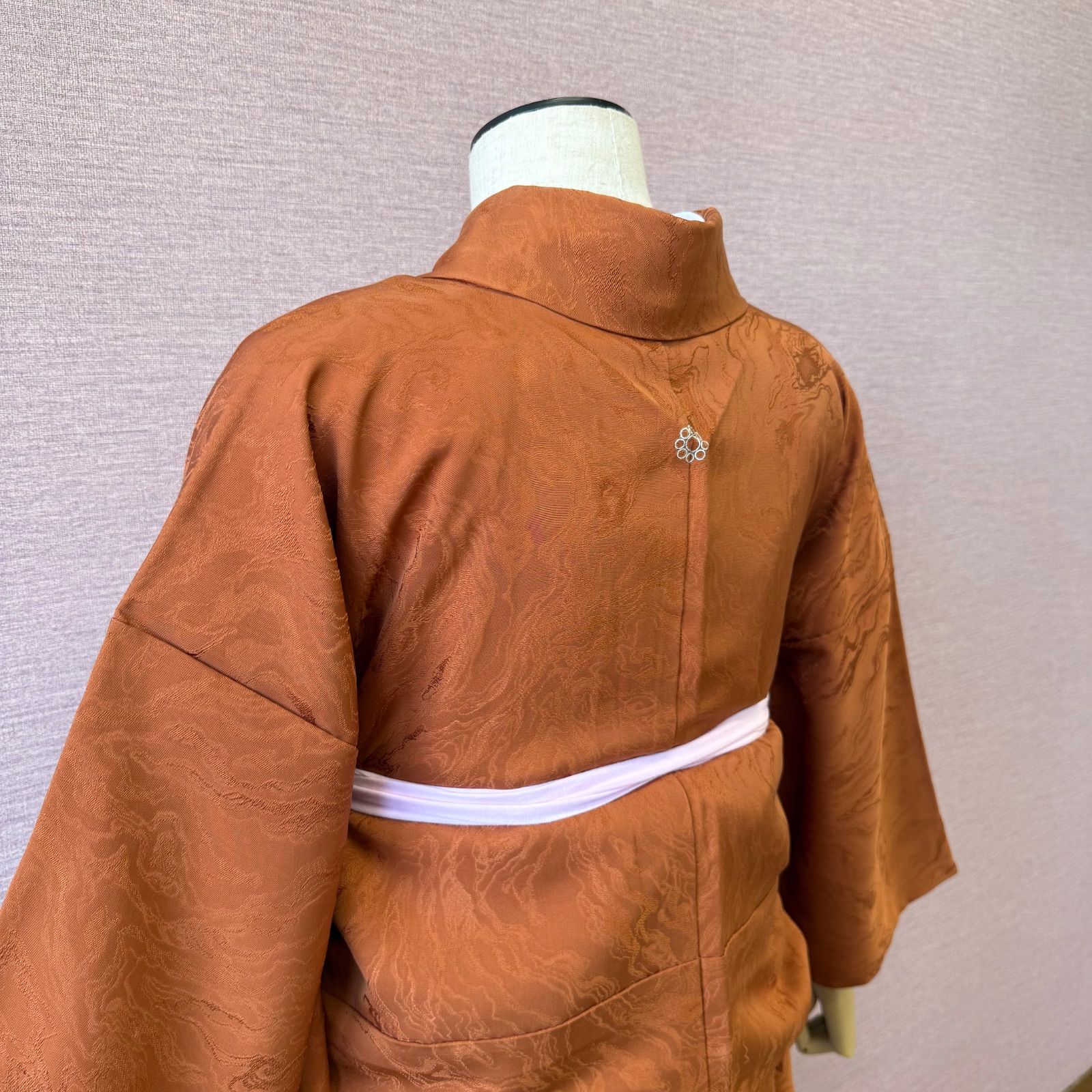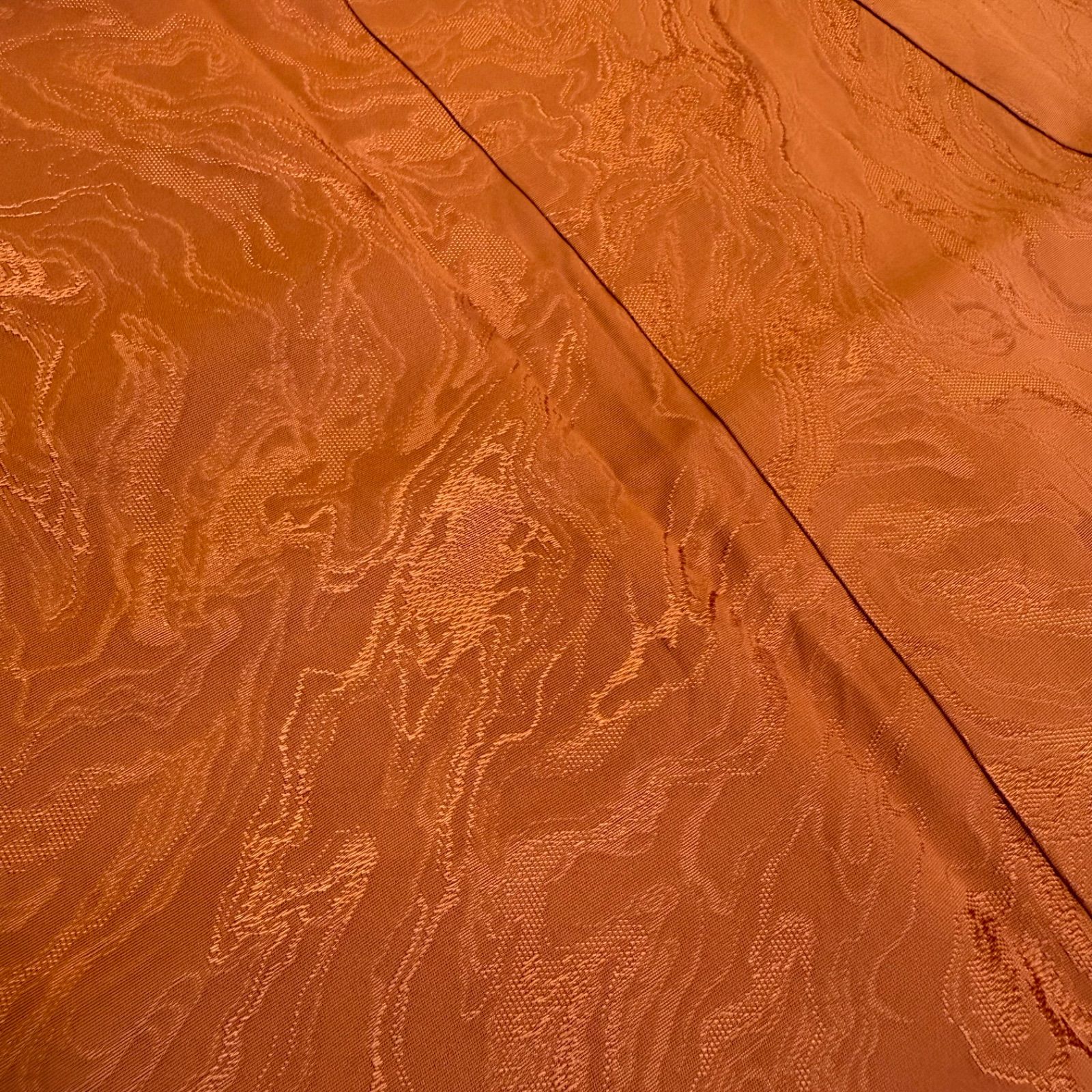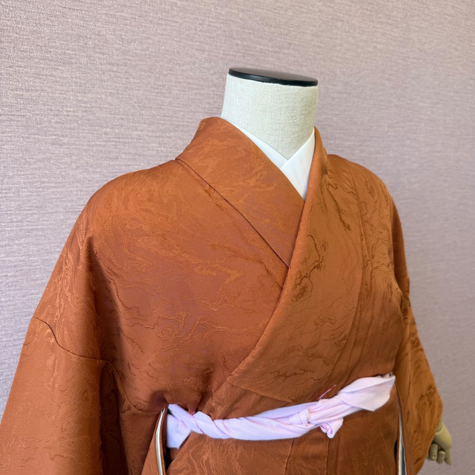 少しくすんだオレンジ色に墨流しのような地紋がシックな雰囲気です。