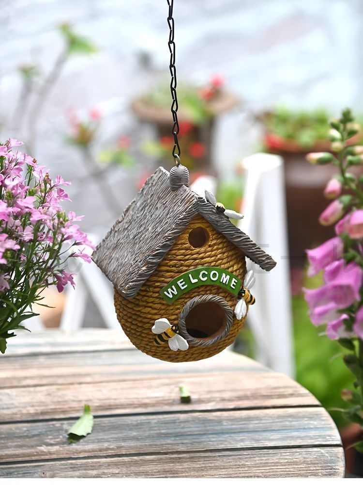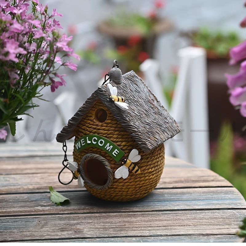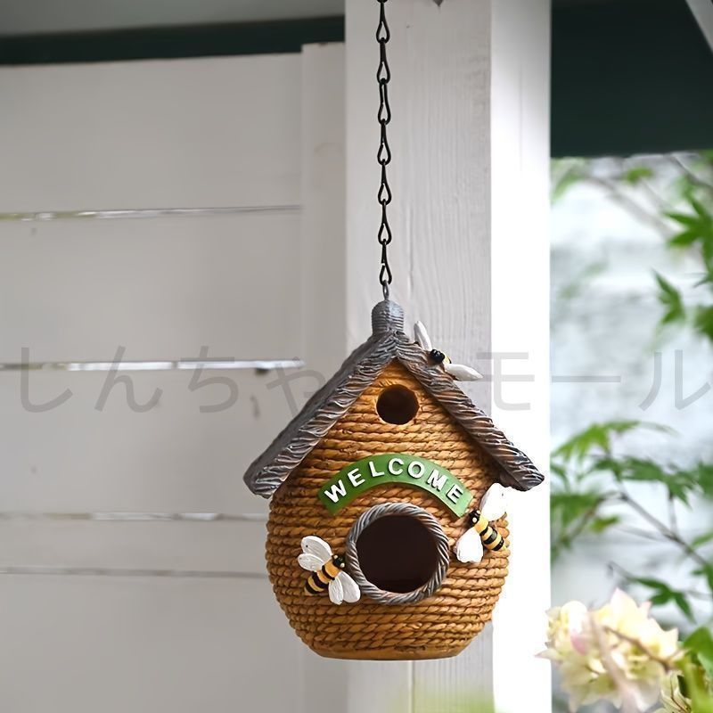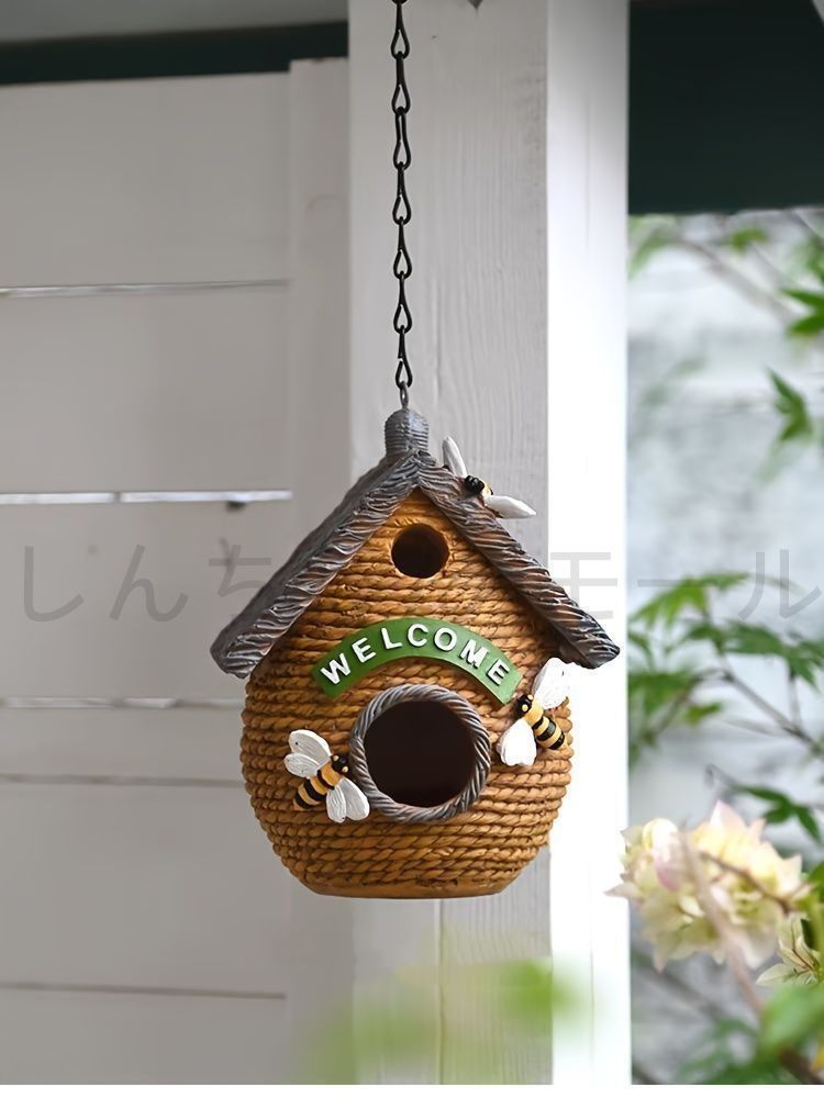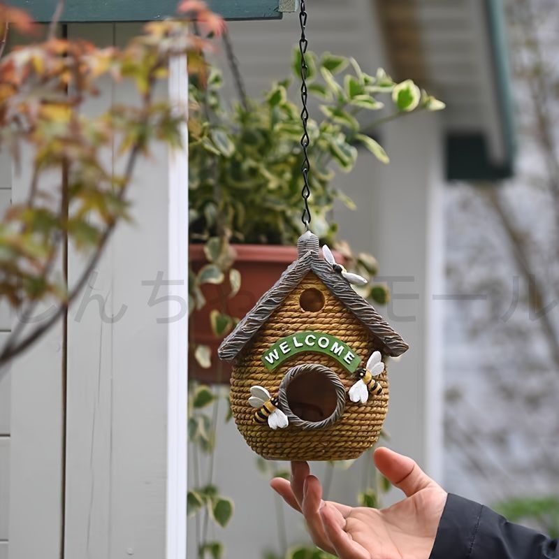 庭やガーデニングにぴったりの可愛らしい巣箱です!ウェルカムデザインが施されたこのバードハウスは、自然の中に溶け込みながらもオシャレなアクセントとして存在感を放ちます。樹脂製の軽量な材料を使用しているため、ぶら下げや吊り下げての設置が簡単で、鳥たちの休憩所として最適です。お庭の一角に置くことで、癒しの空間を演出し、訪れる野鳥たちを楽しむことができます。自分で楽しむのはもちろん、ギフトとしても喜ばれるアイテムです!