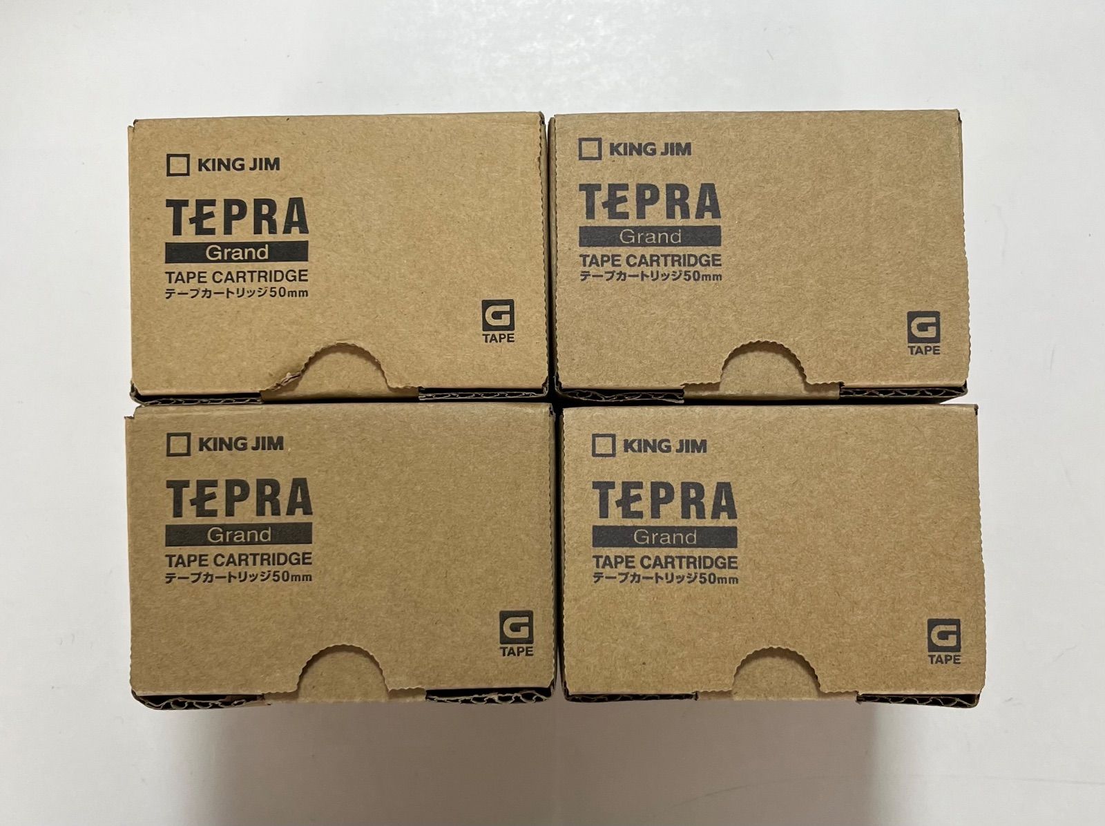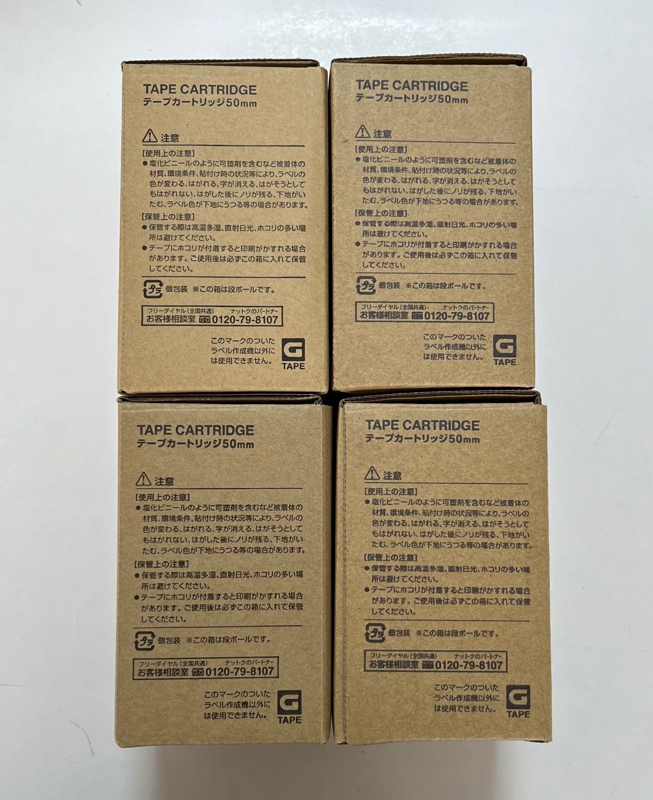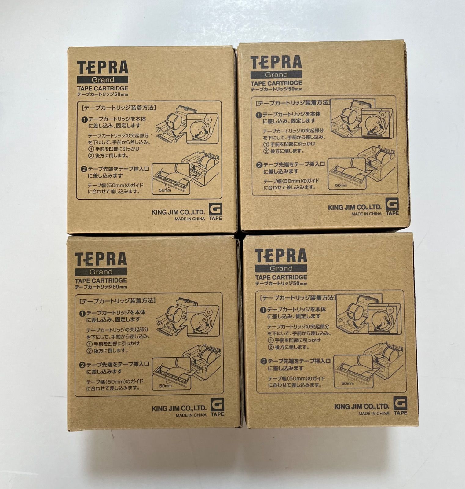 こちらは KING JIM「テプラ Grand」専用テープカートリッジ(50mm幅)4個セット になります。使用感があるため、単品で買うよりお得なセットにしています。