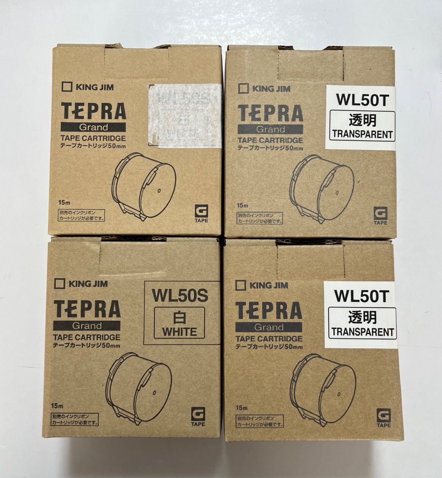 【白・透明4個セット】テプラ Grand テープカートリッジ 50mm(訳あり)