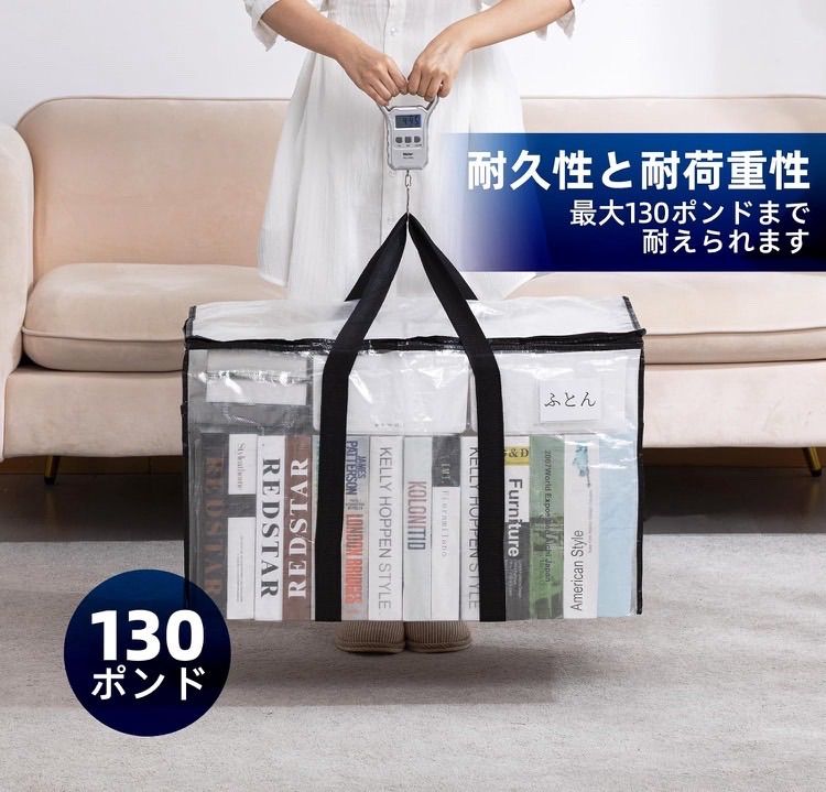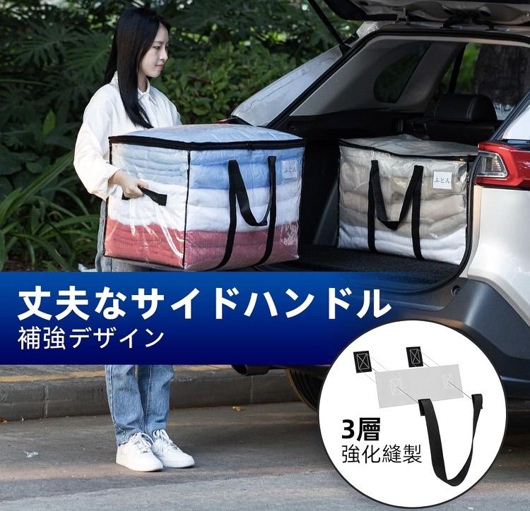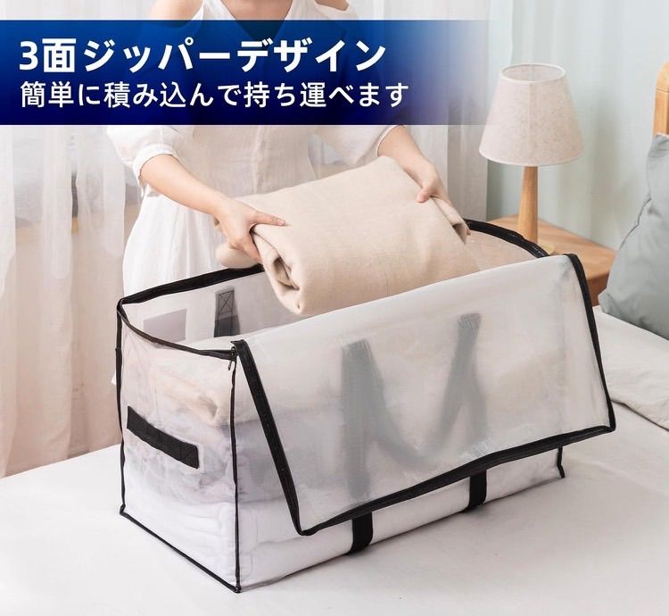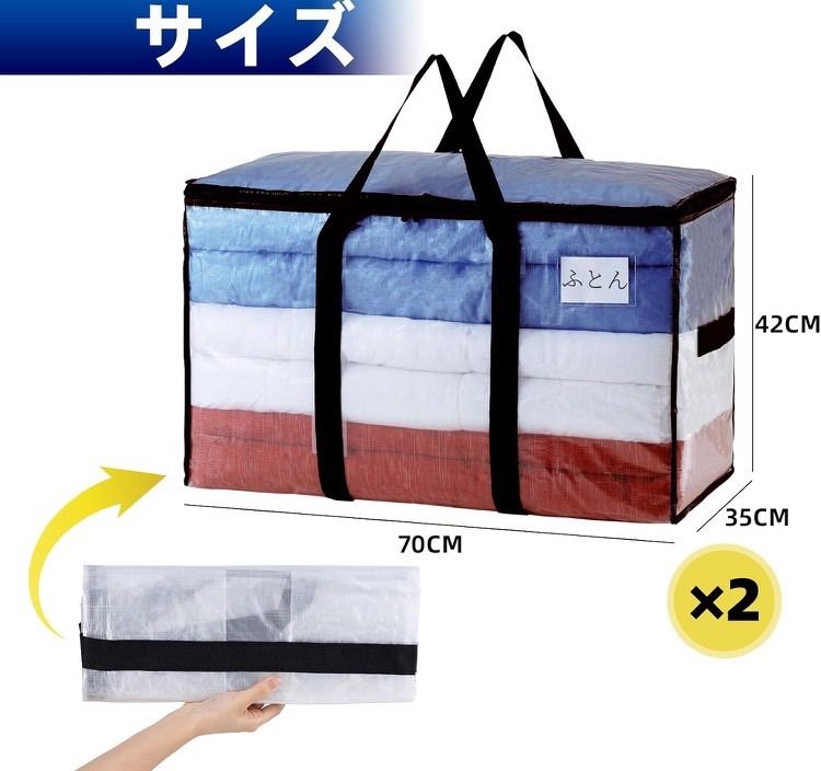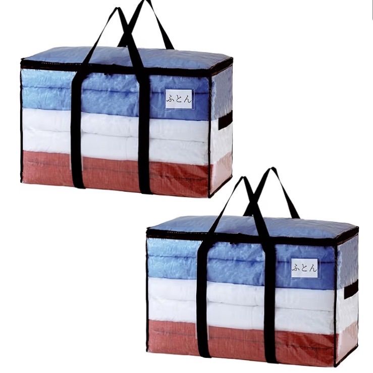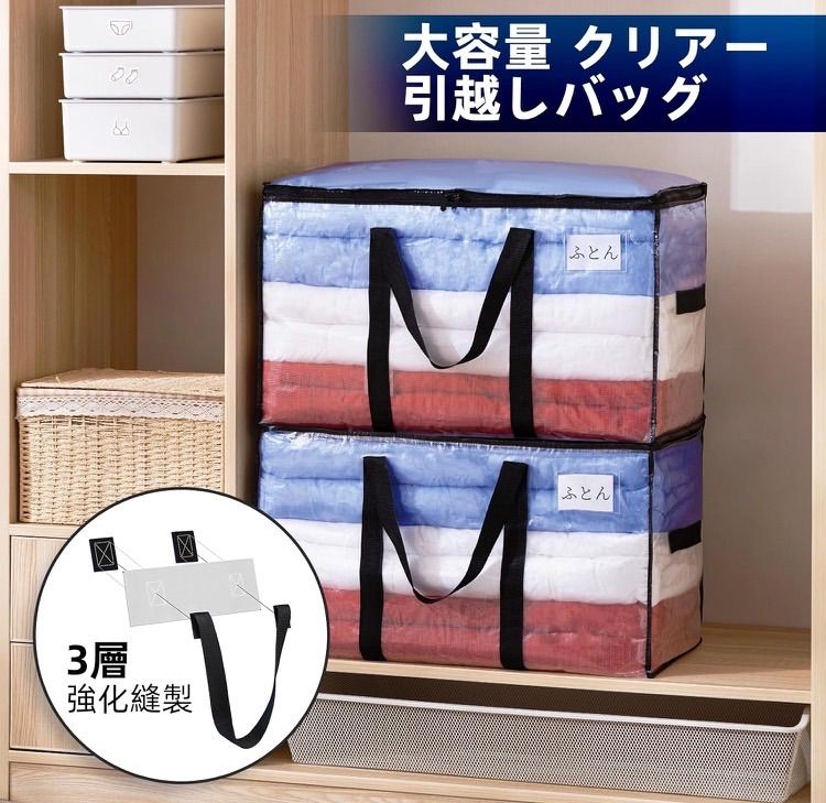 大きいバッグ 布団収納袋 引越しバッグ 収納ケース 特大容量 透明窓 持ち手付き 衣装ケース 洋服 羽毛布団 防塵防水 折りたたみ式 カバン 省スペース 引っ越し 背負える キャンプ 旅行 耐荷重 透明 2個セット 100L