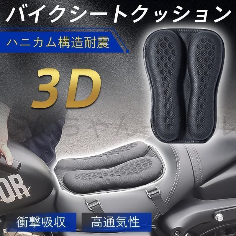 バイク シート クッション カバー ゲルクッション 衝撃吸収 ゲルシートカバー 3D メッシュ 四季通用 通気 ムレ 蒸れ防止 ツーリング 汎用