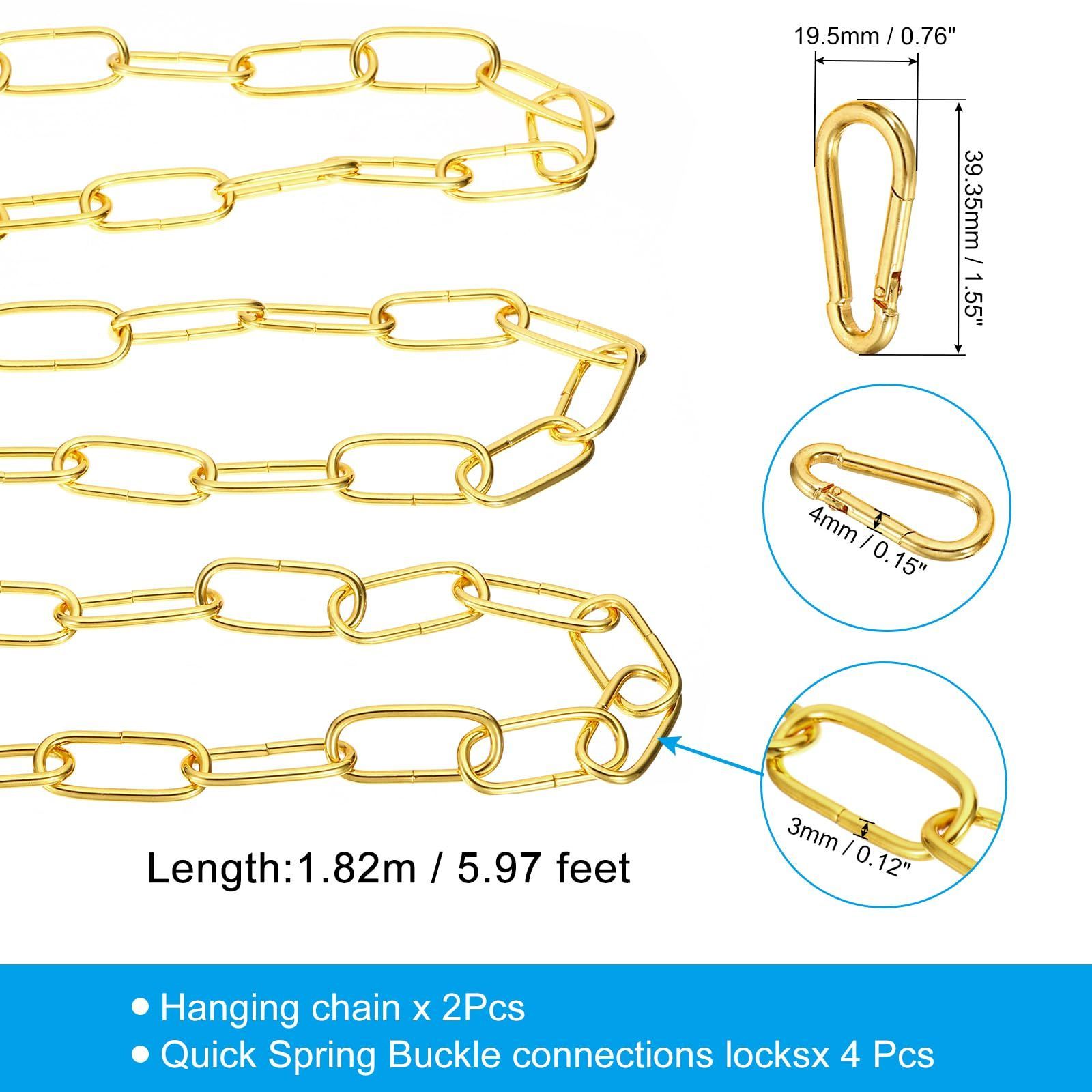 PATIKIL 1.82 M 金色 仕上げ照明吊り下げチェーン 2セット 金属ループチェーン 吊り下げ植物ペンダントシャンデリア照明器具用