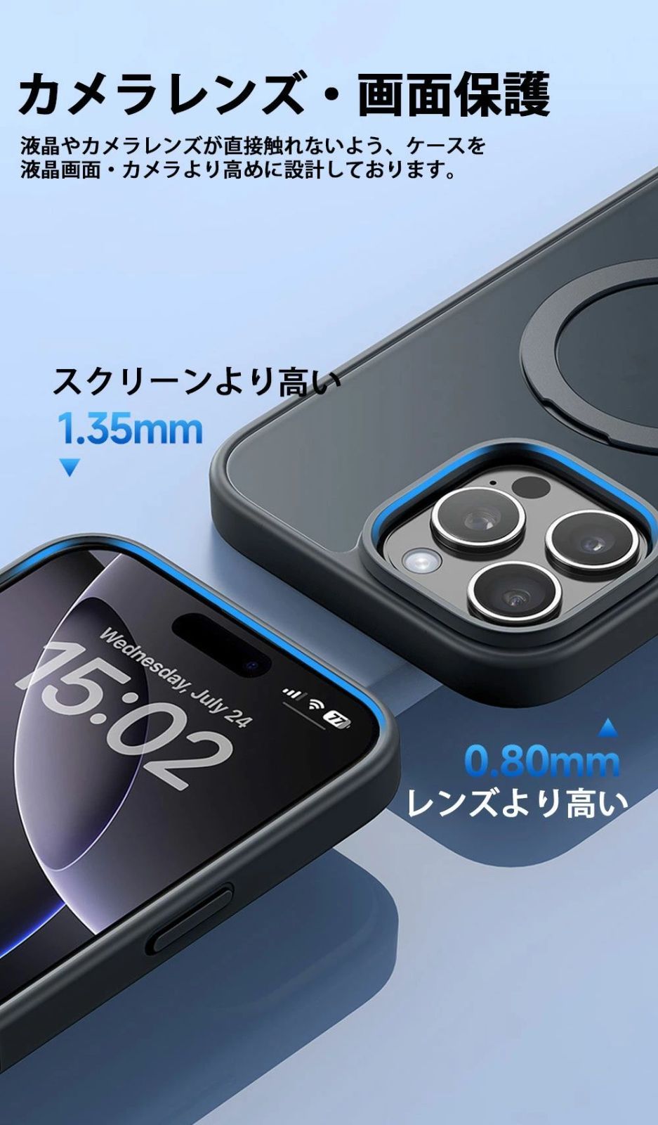 スマホケースは高品質TPU+PC素材を採用して、柔軟に変形にくく、衝撃に強く、耐久性にも優れています。縁の部分は画面とカメラレンズより高く、下置きしても画面が直に接触しないので、画面やカメラが擦れることを防ぎます。
