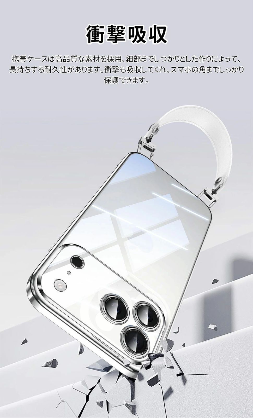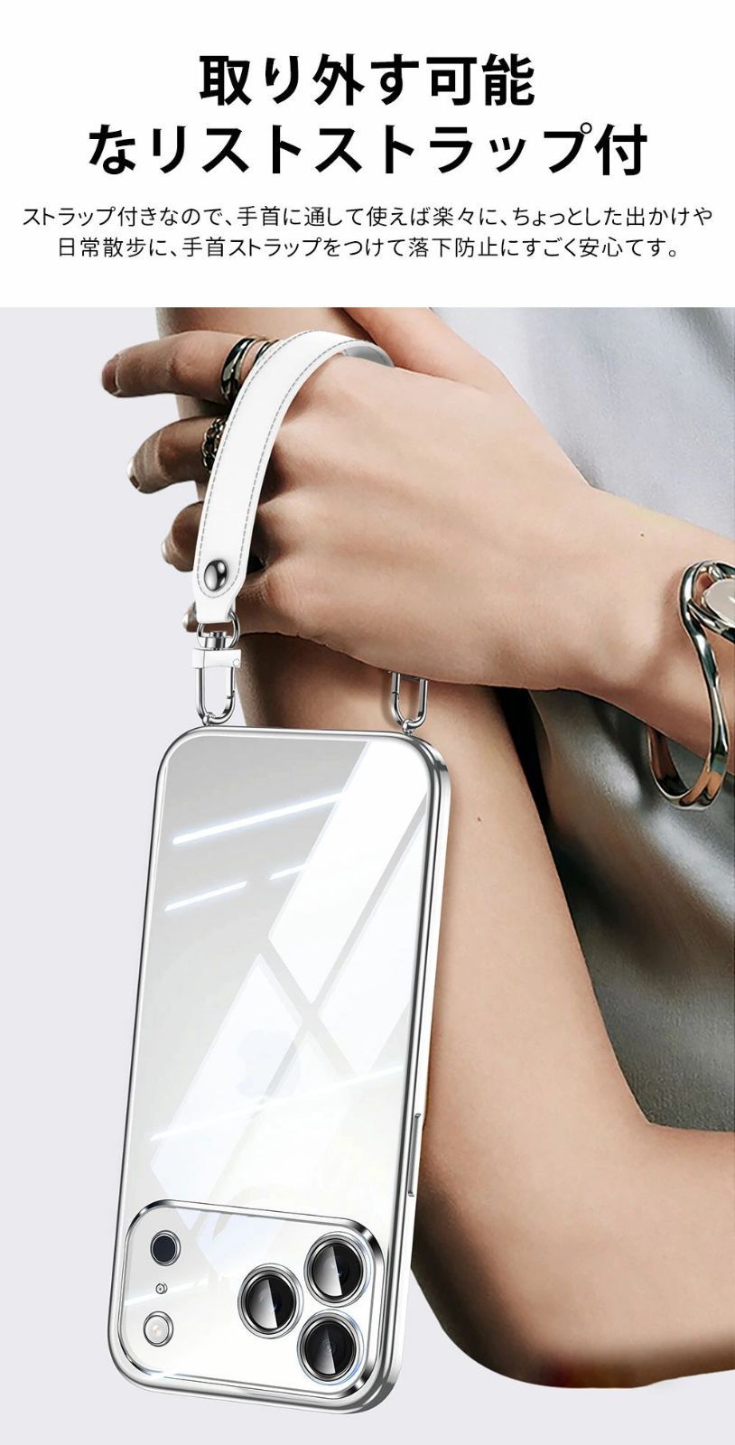 3、取り外す可能なリストストラップ付、持ち転びに便利だけでなく、不意に落下するのを防ぎ、安心感を与えてくれます。
