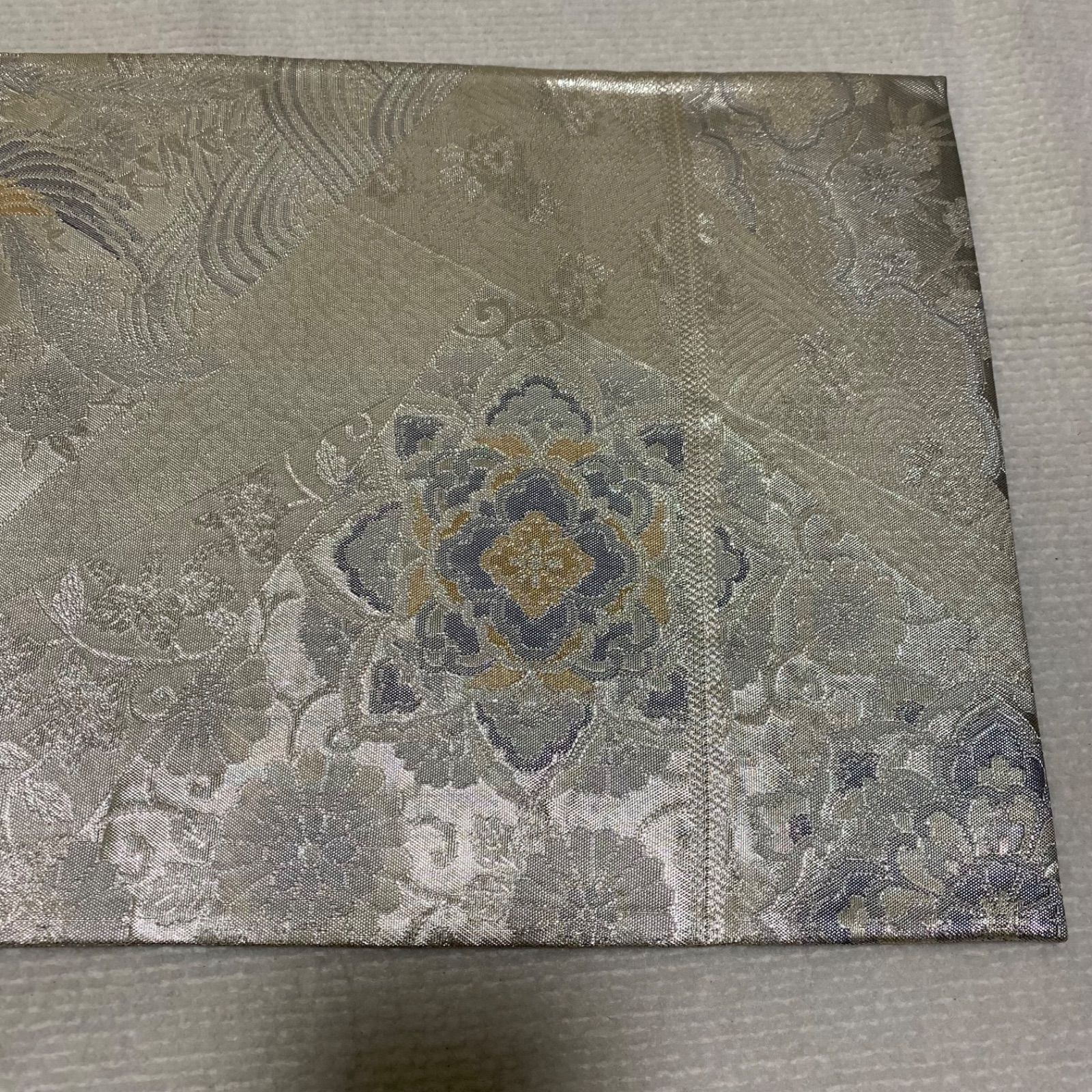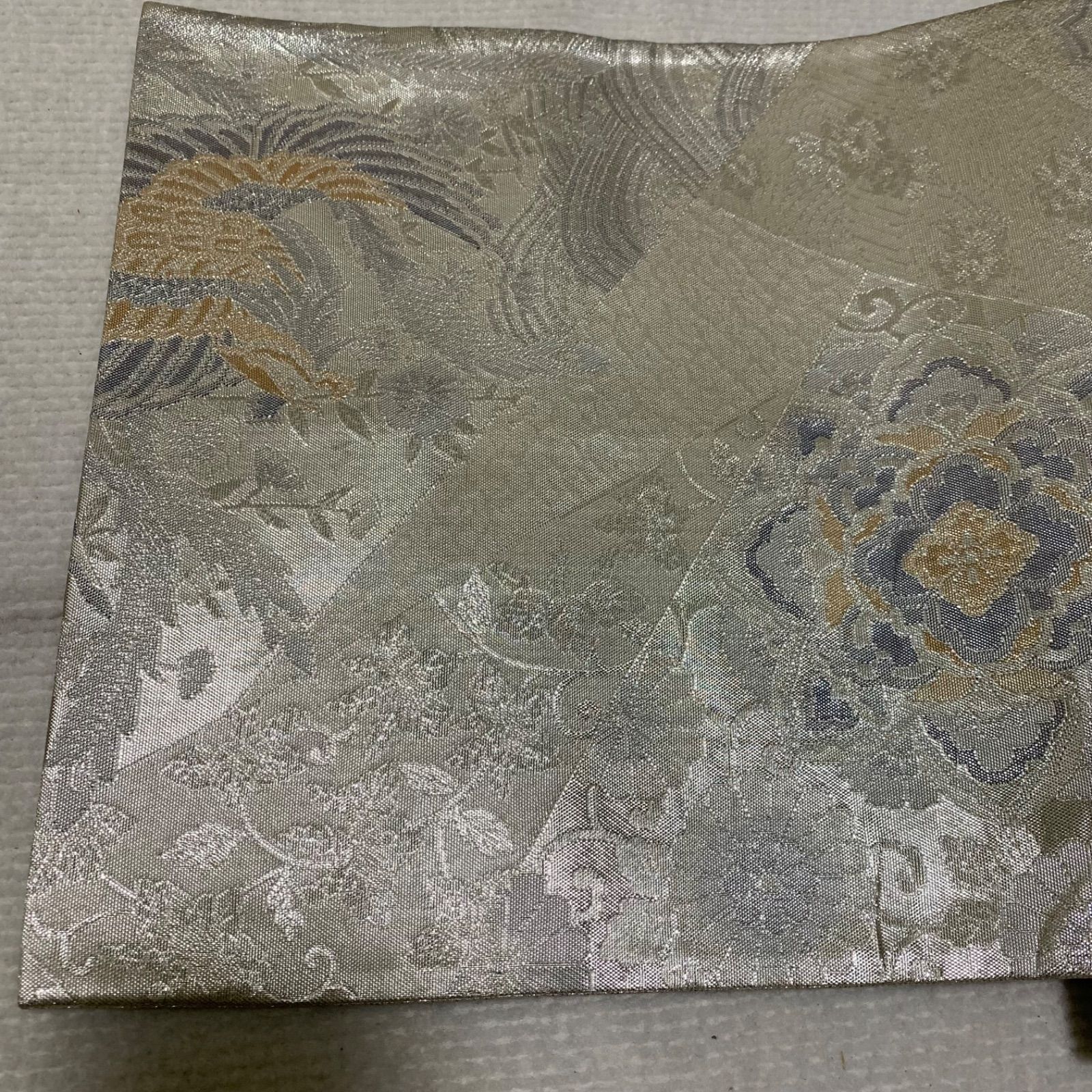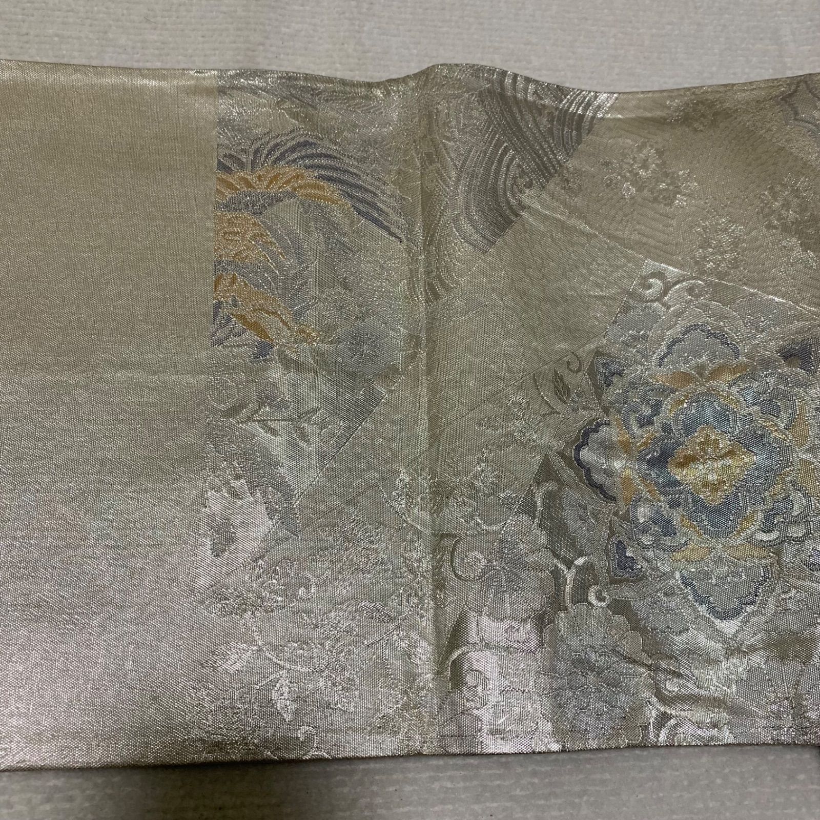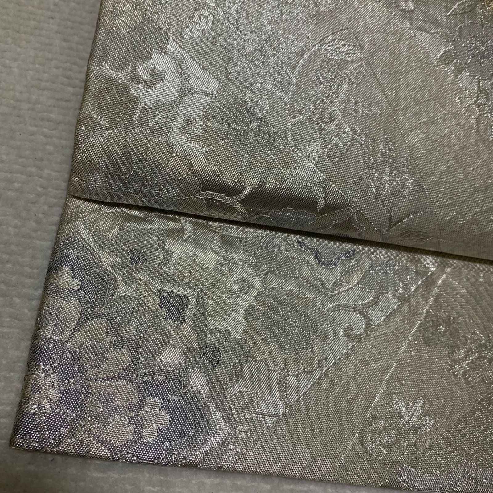 帯 袋帯 絹 佐賀錦 レディース フォーマル シルバー 六通 織帯