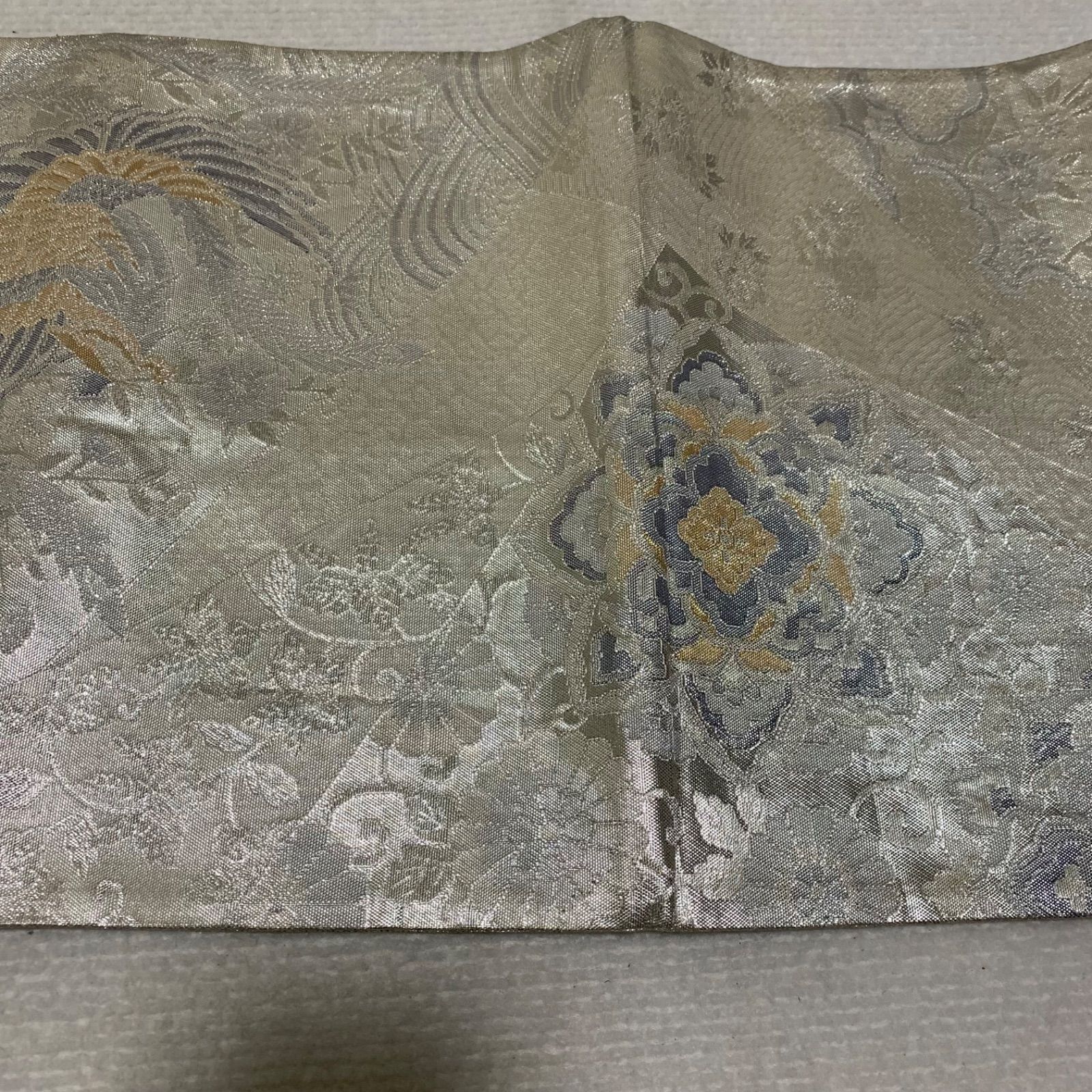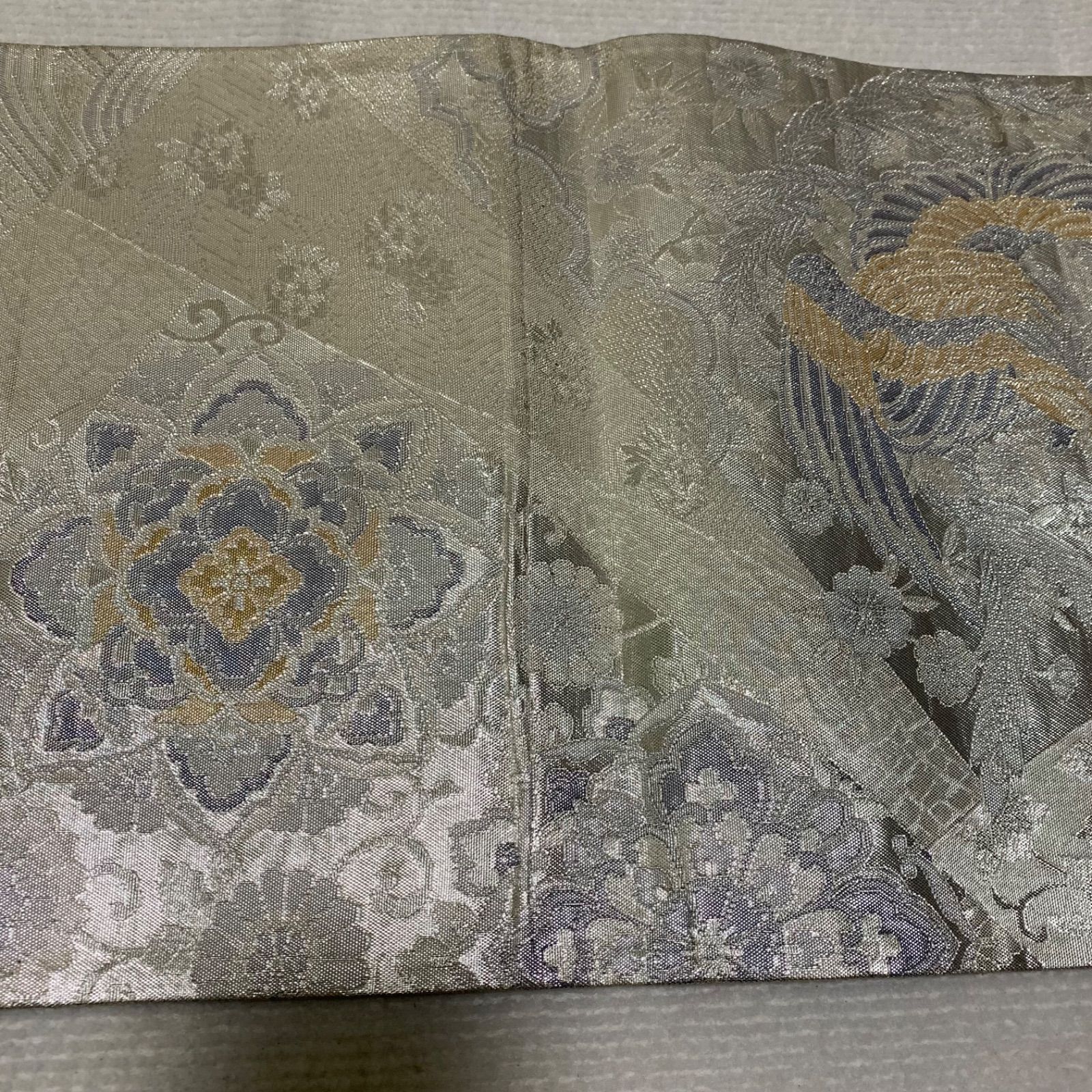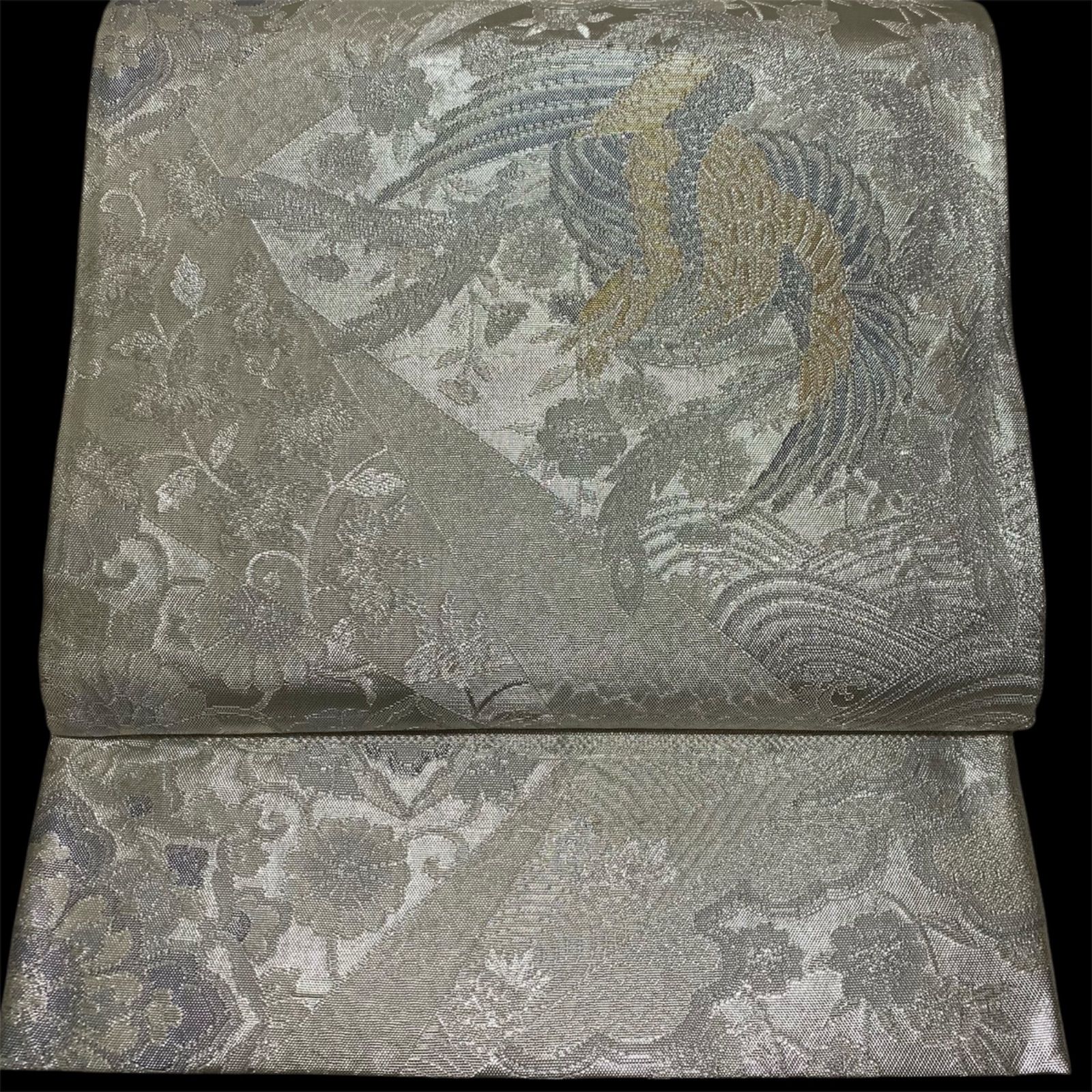 帯 袋帯 絹 佐賀錦 レディース フォーマル シルバー 六通 織帯