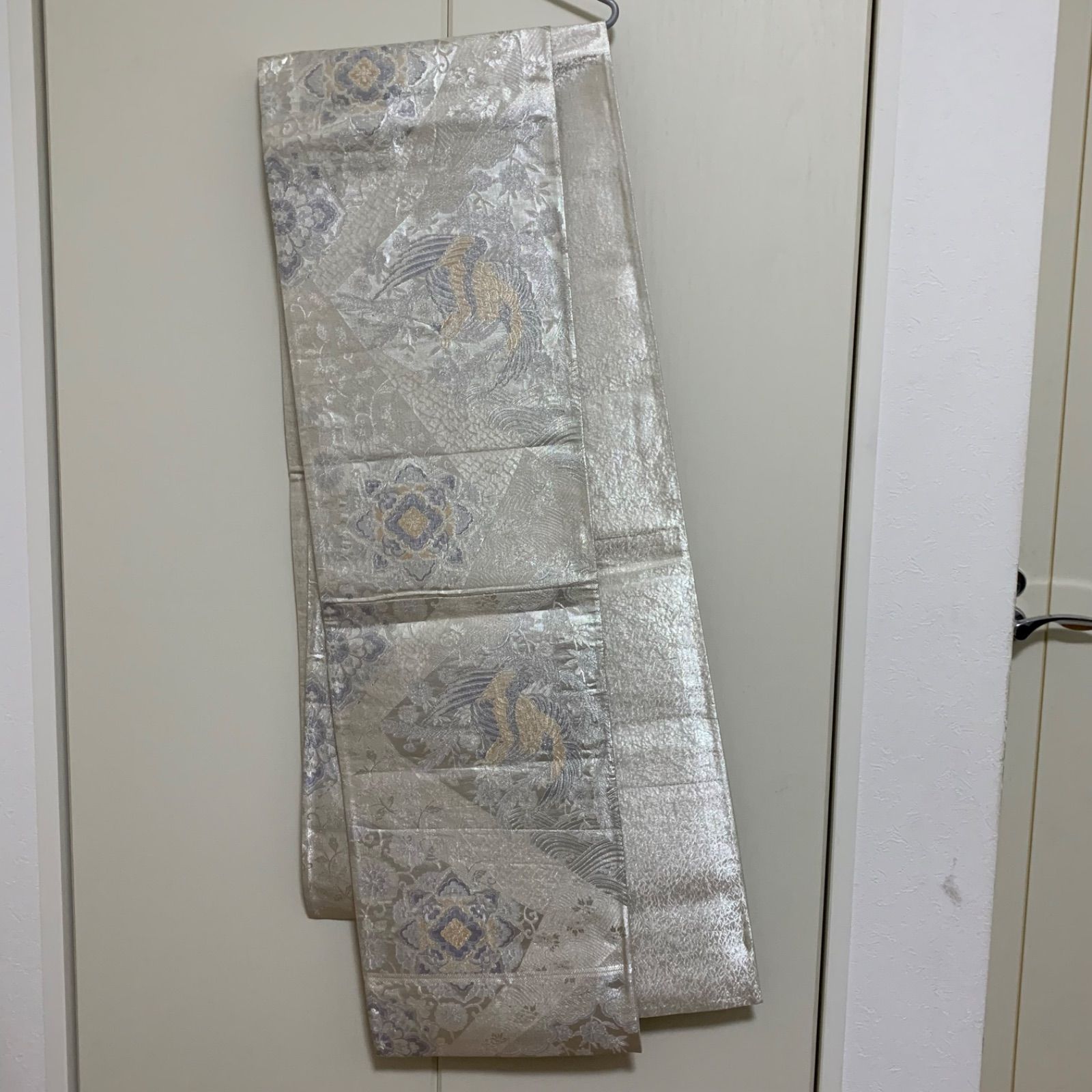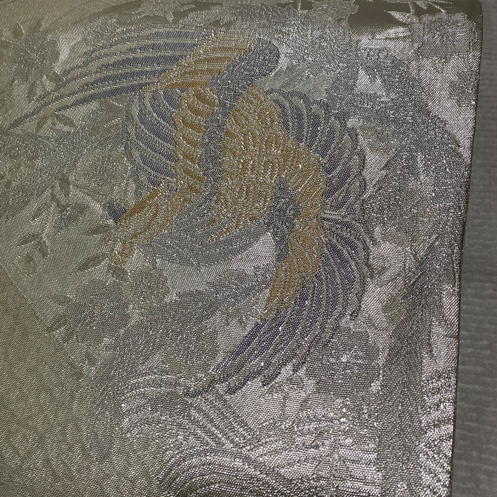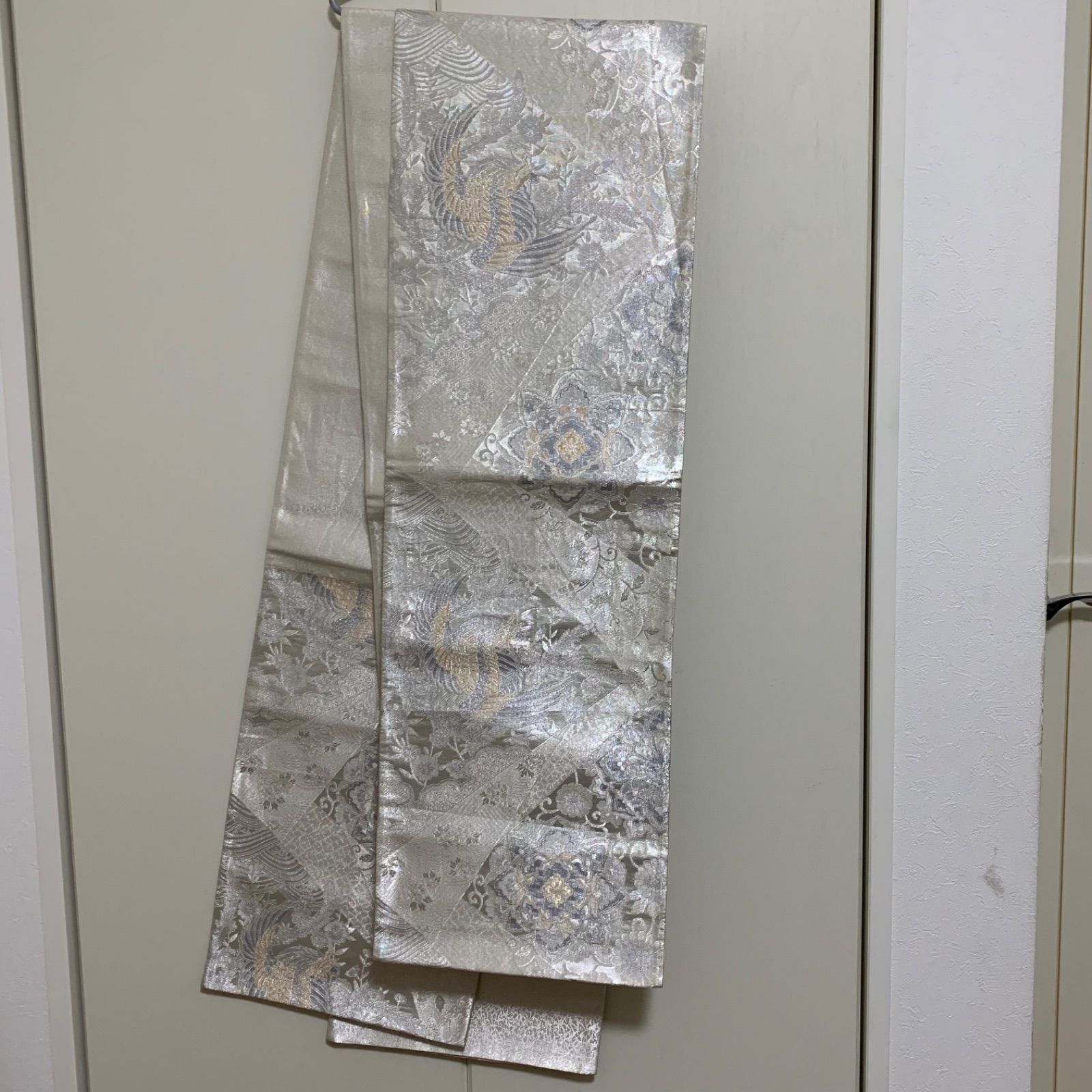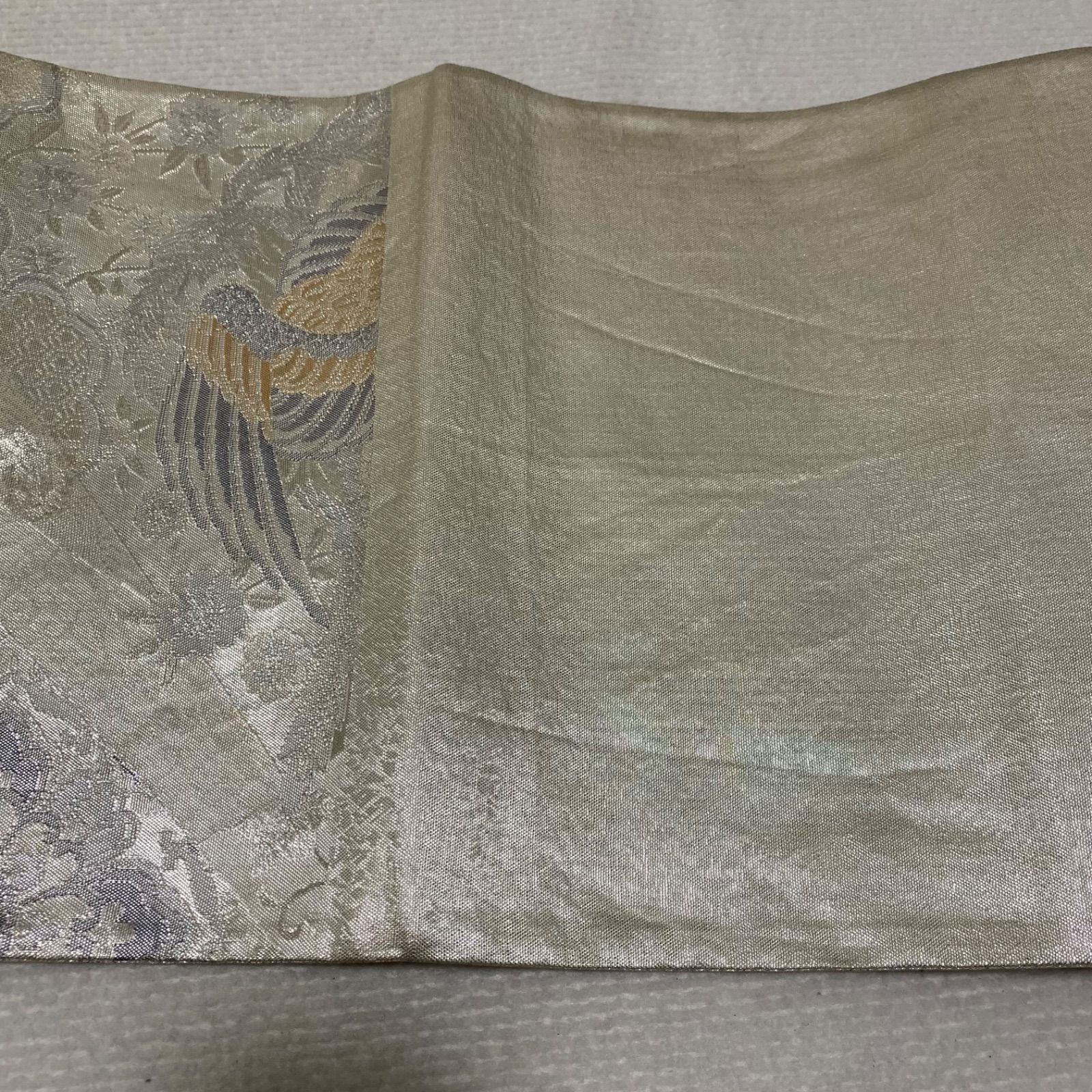 帯 袋帯 絹 佐賀錦 レディース フォーマル シルバー 六通 織帯