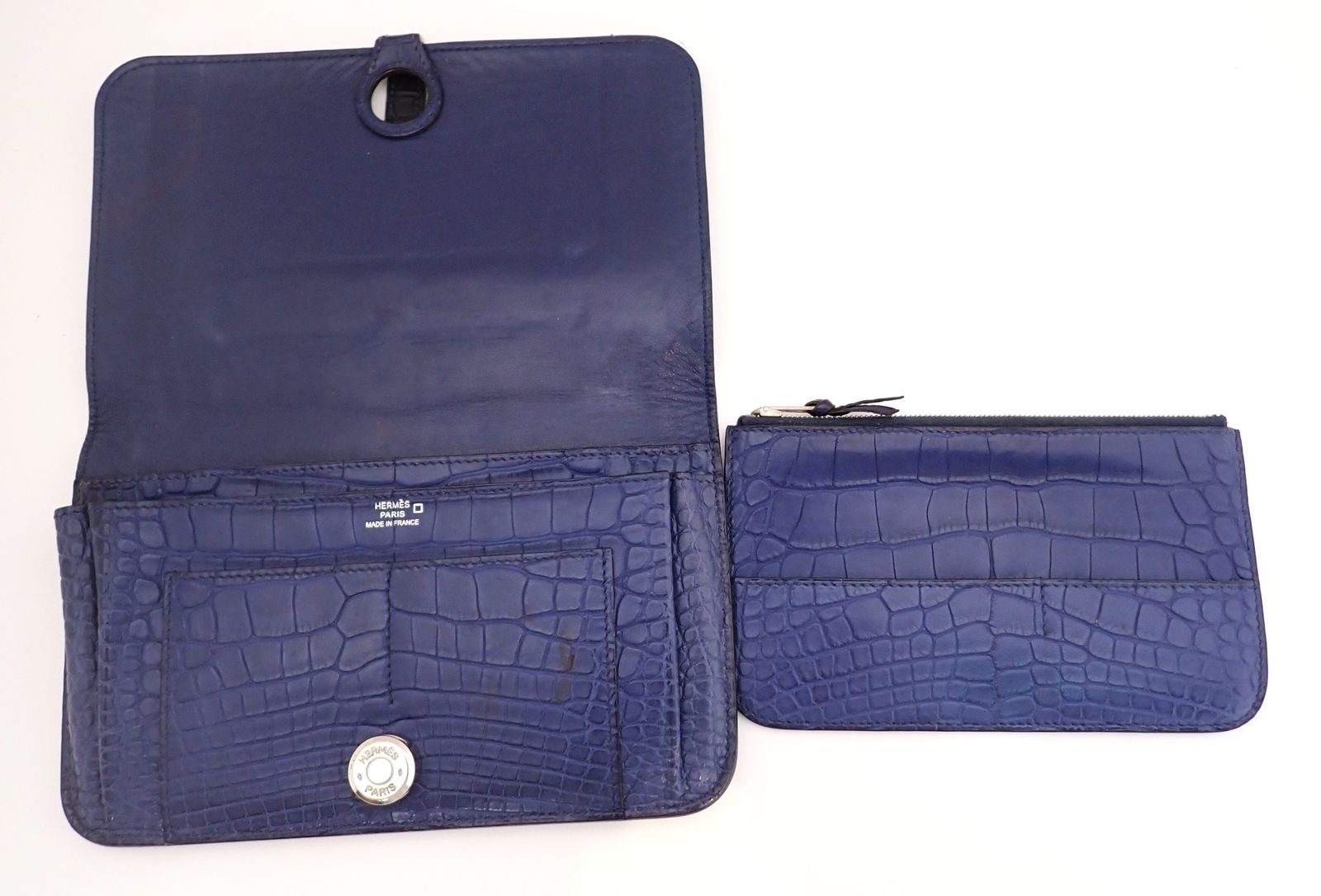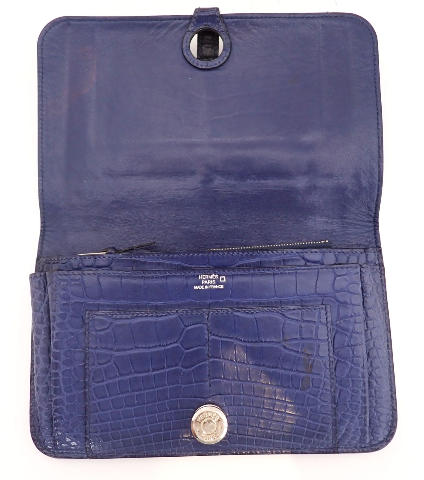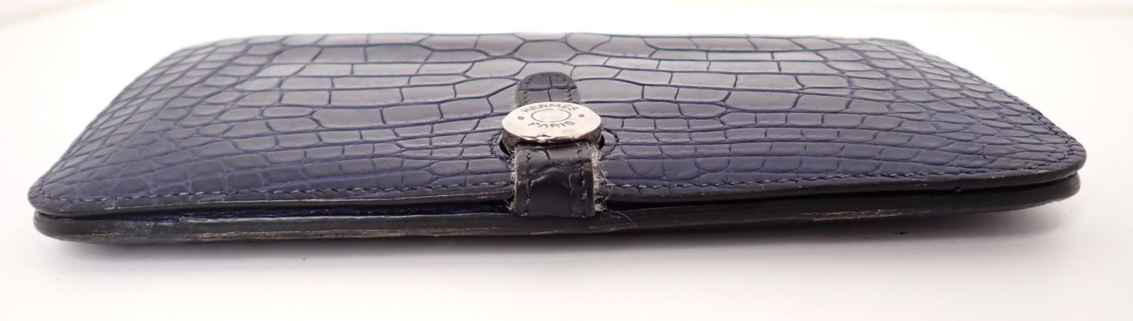 HERMES(エルメス) ドゴンGM □K刻印 2007年 ネイビー クロコダイル レザー 鰐革 アリゲーター エキゾチックレザー メンズ 長財布