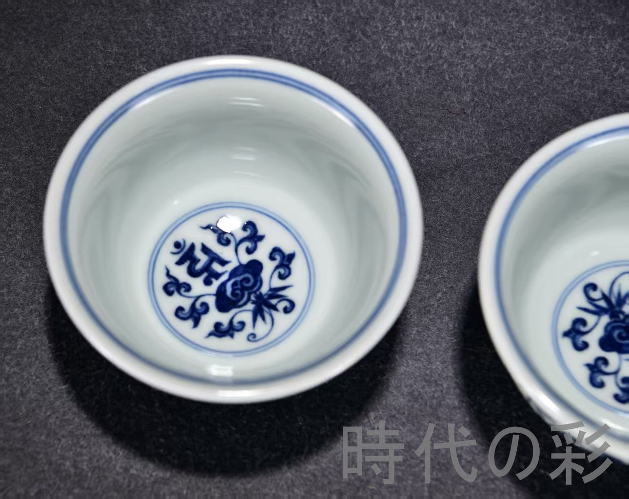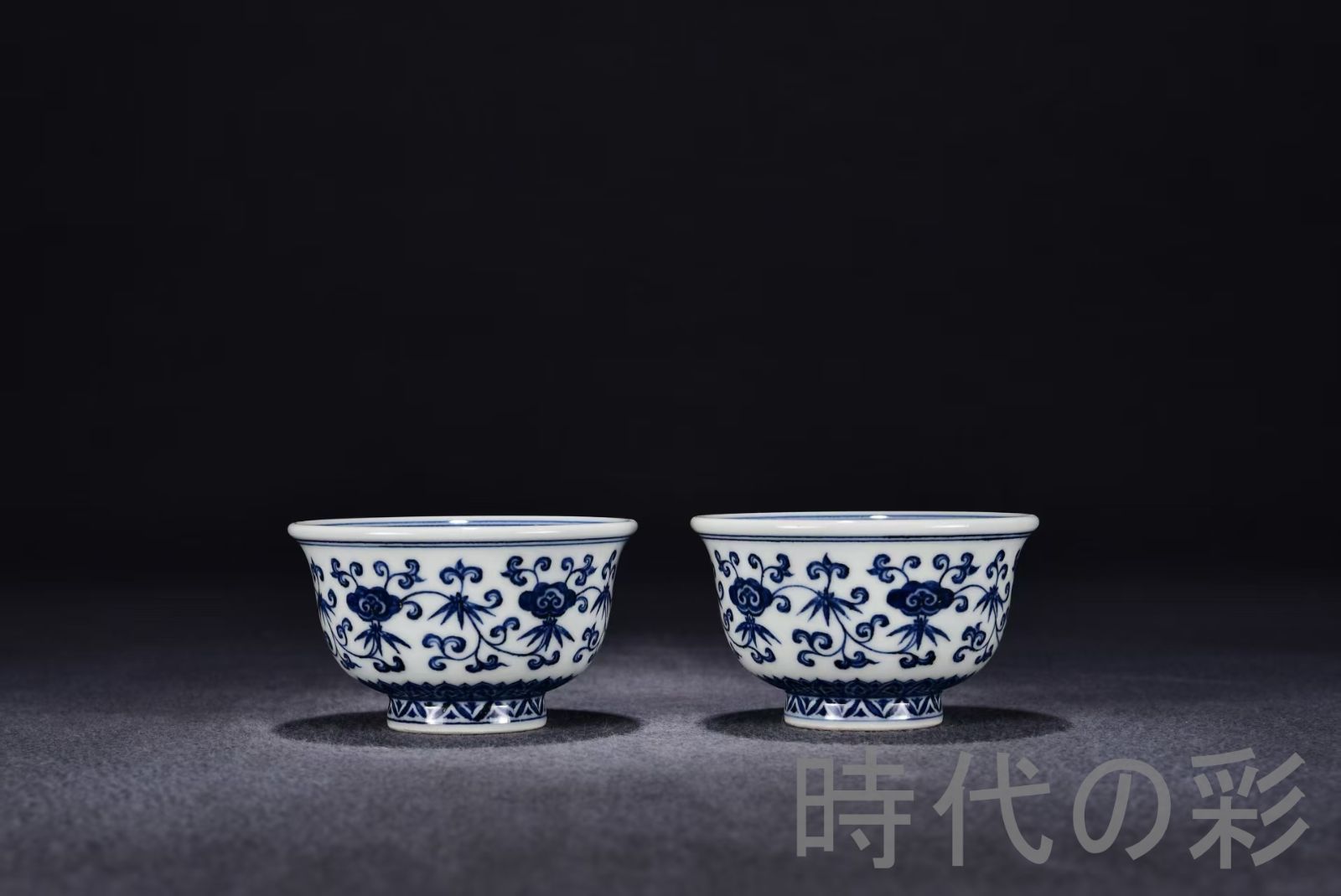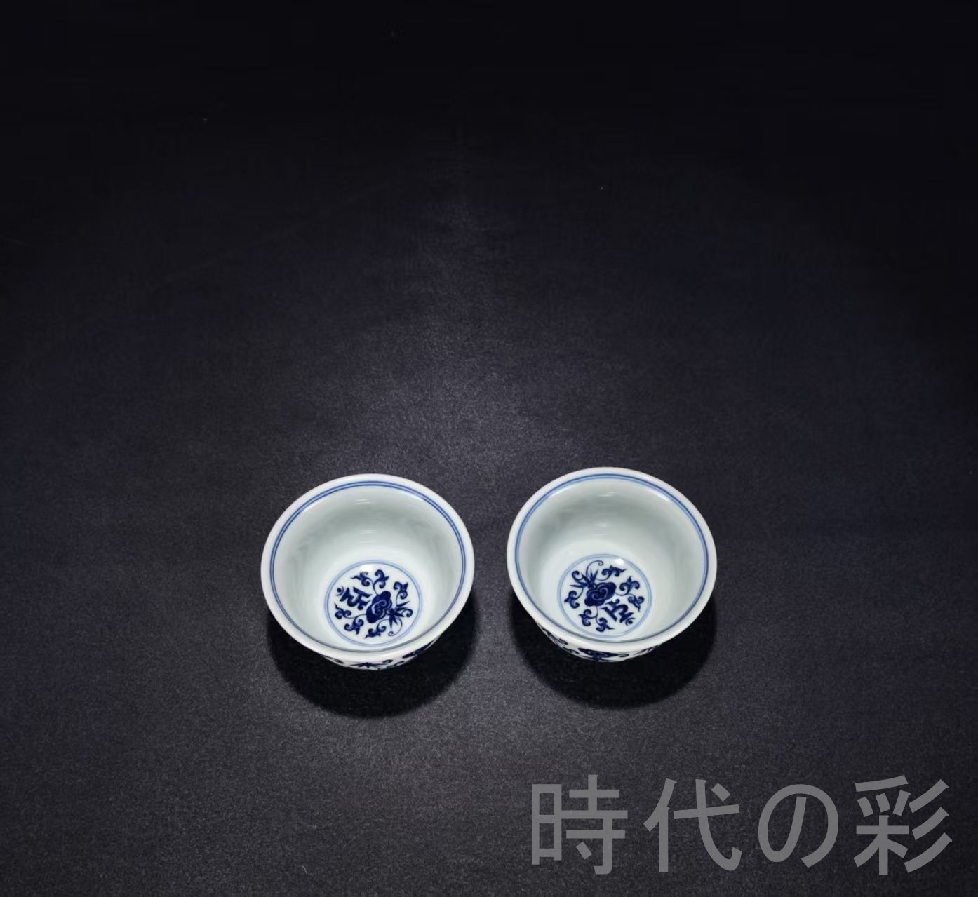 明代宣徳,青花,纏枝紋,如意紋,圧手杯,陶磁器,古陶器,骨董品,收藏品,景徳鎮,中国古美術