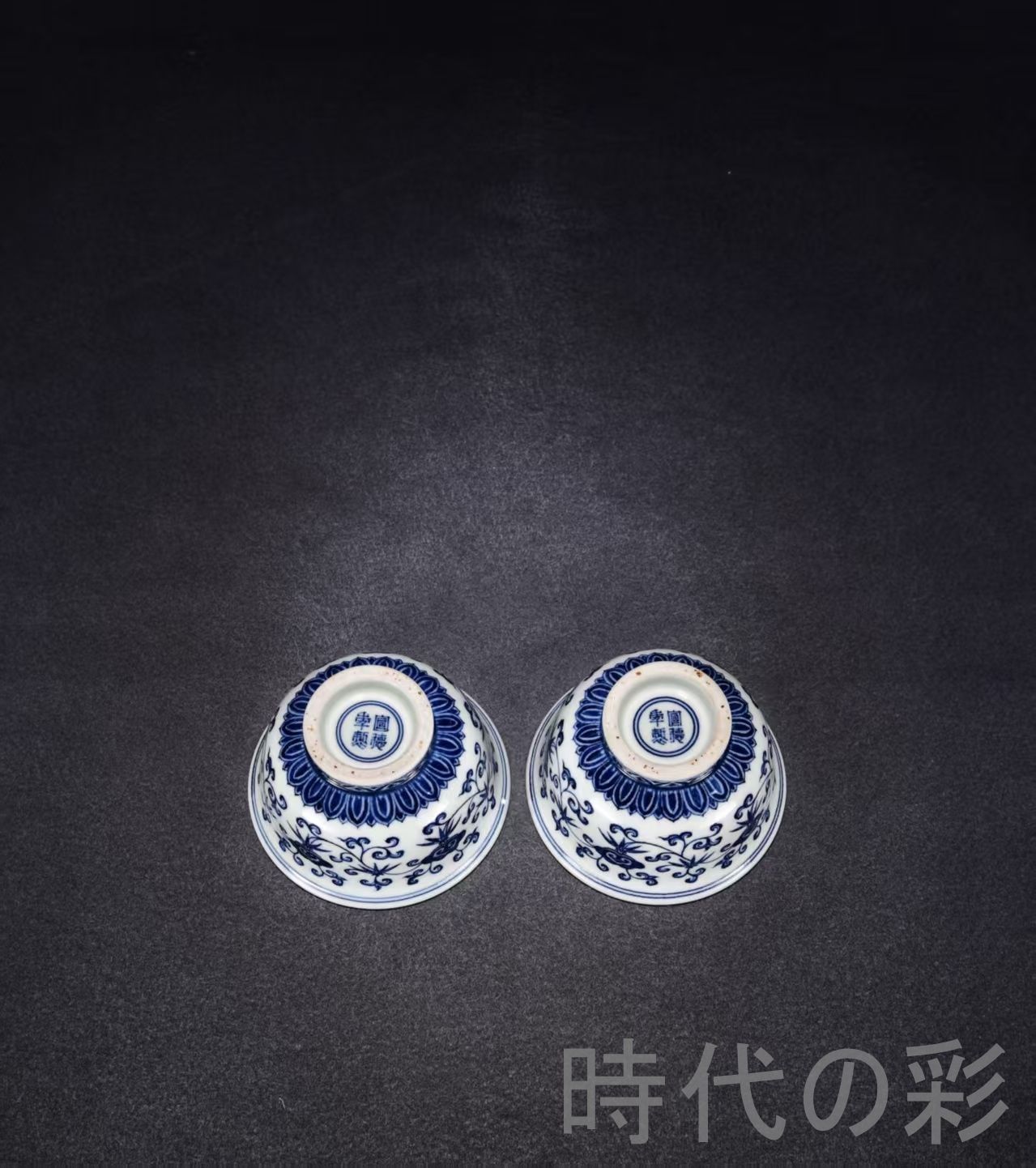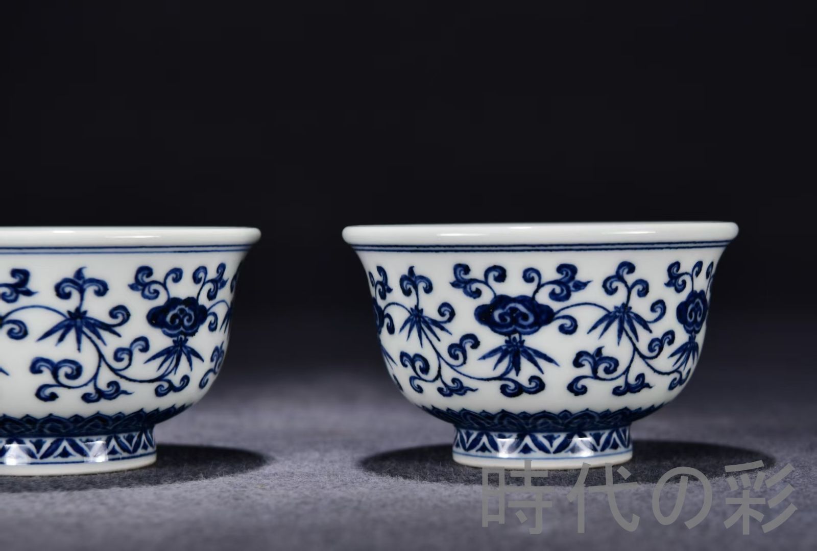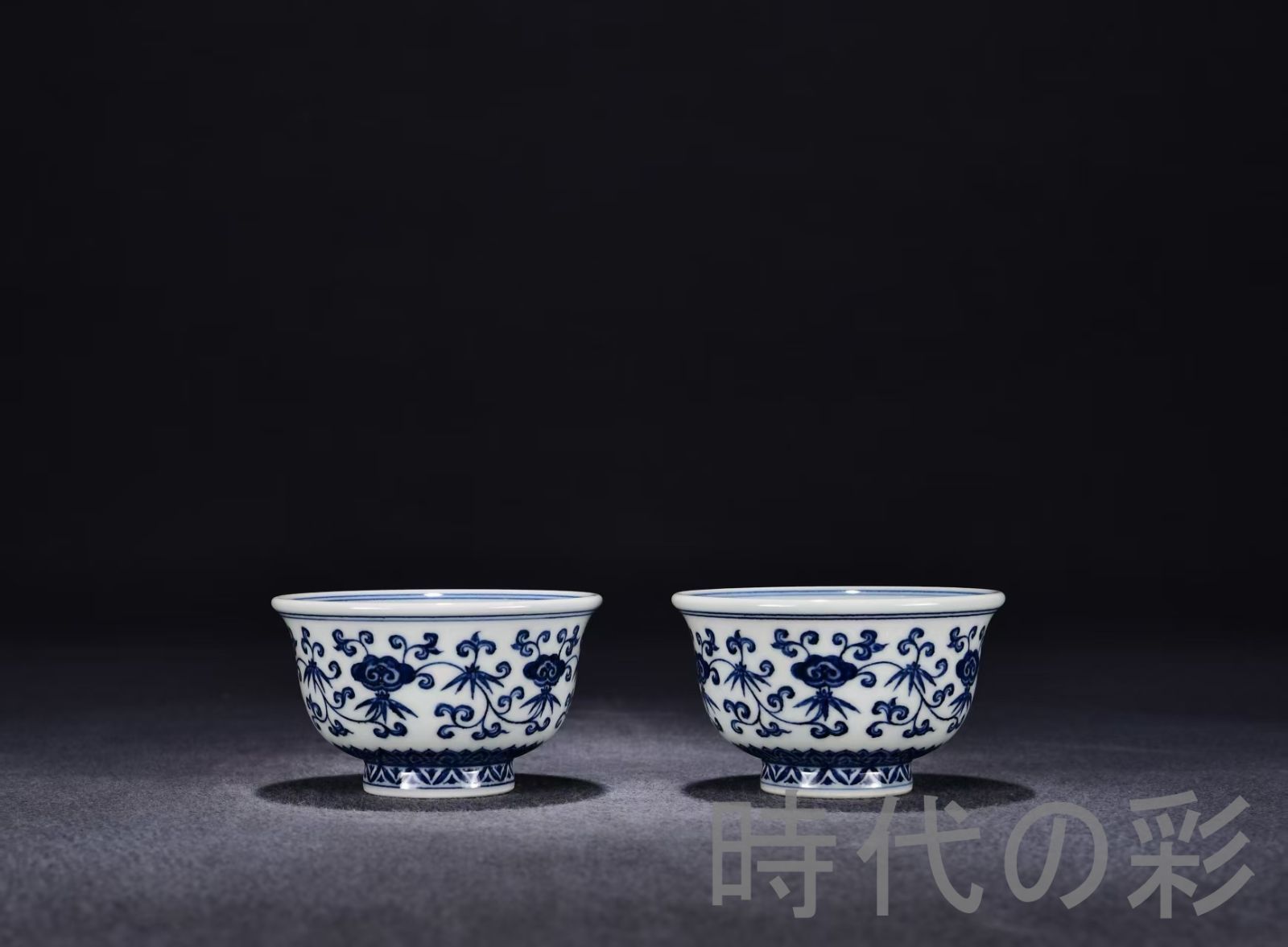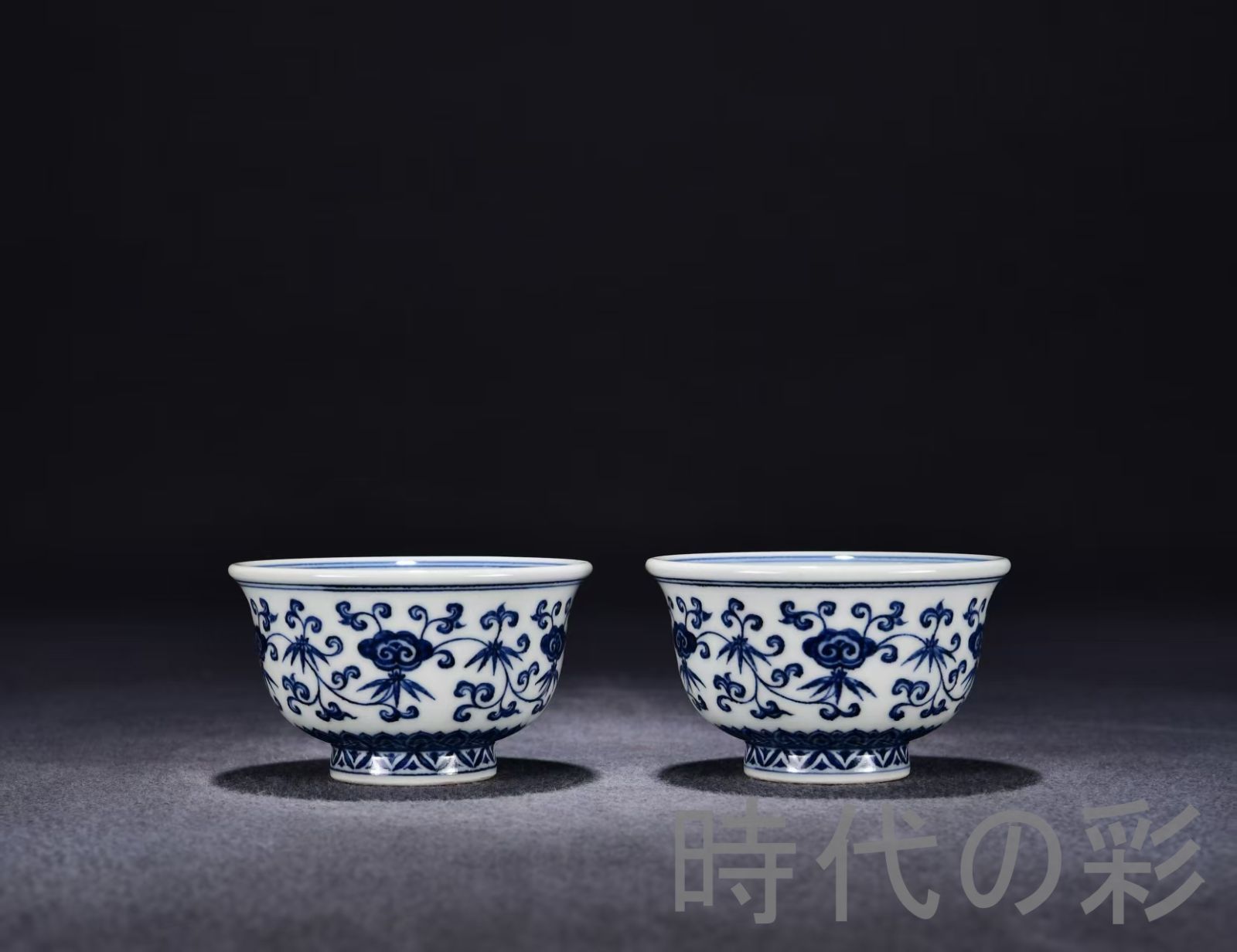 明代宣徳,青花,纏枝紋,如意紋,圧手杯,陶磁器,古陶器,骨董品,收藏品,景徳鎮,中国古美術