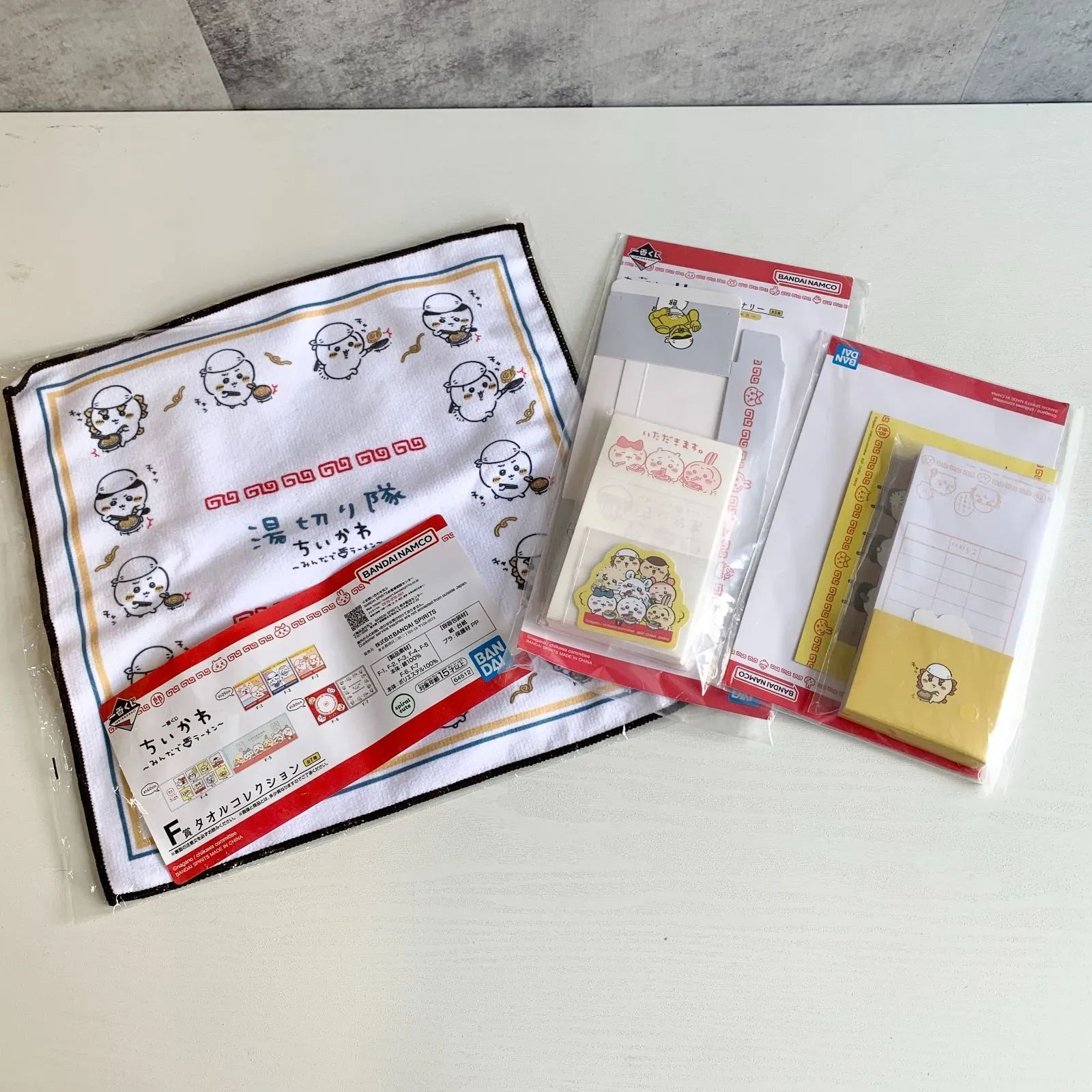 一番くじ ちいかわ みんなでラーメン F賞 タオル 湯切り隊& H賞 メモ&ポストカード ステーショナリー セット