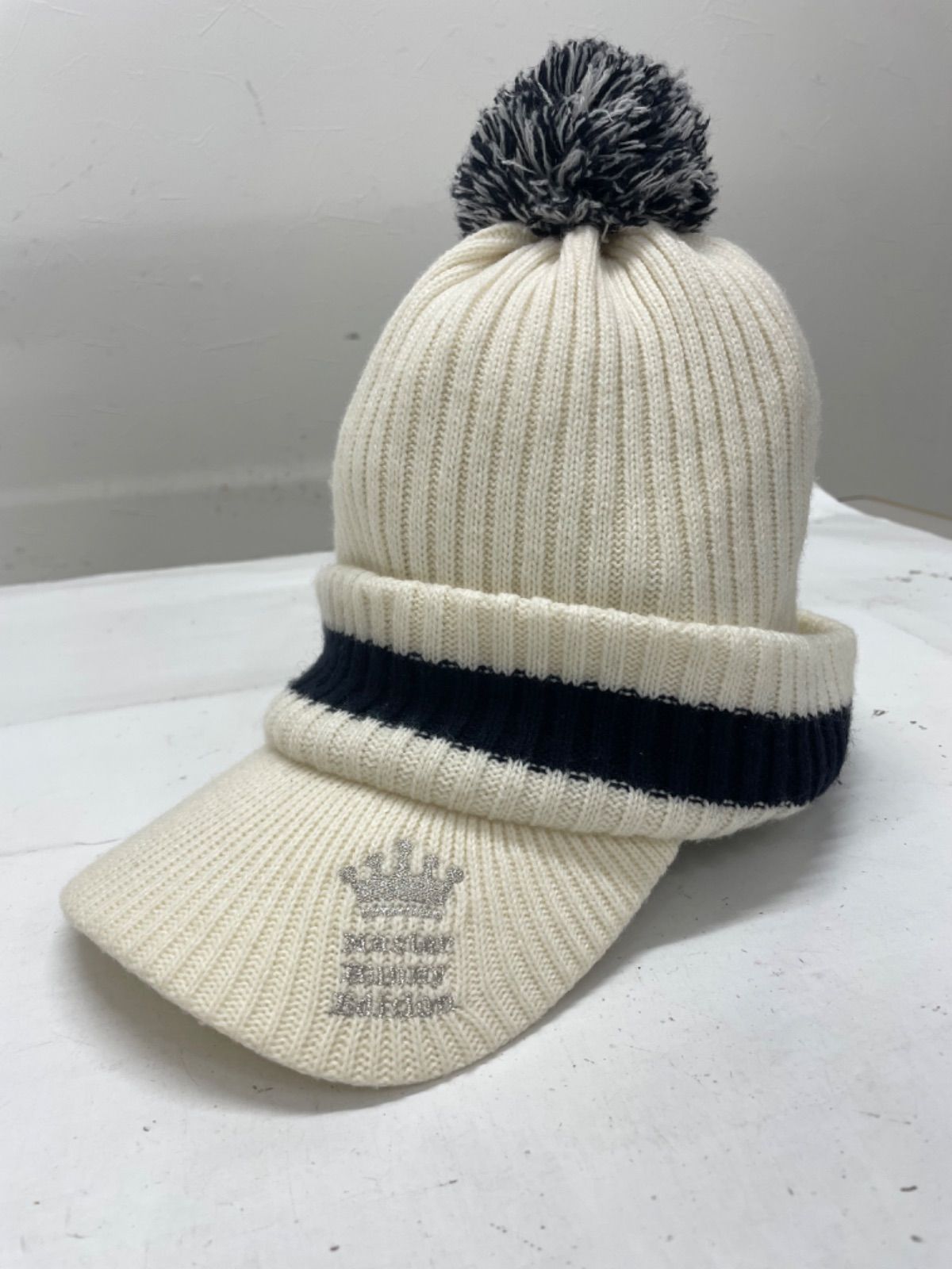 【USED】MASTER BUNNY EDITION マスターバニーエディション アクリル ニット キャップ ロゴ刺繍 裏起毛 アイボリー FR ゴルフウェア