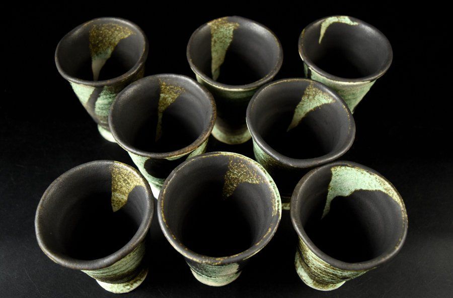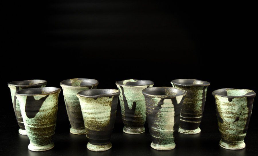 【蔵A3513f2】信楽焼 やすお陶房 フリーカップ ビアマグ カップ 八客