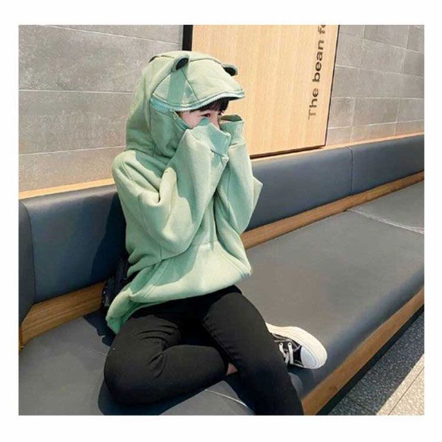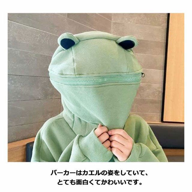 パーカーはカエルの姿をしていて、とても面白くてかわいいです。