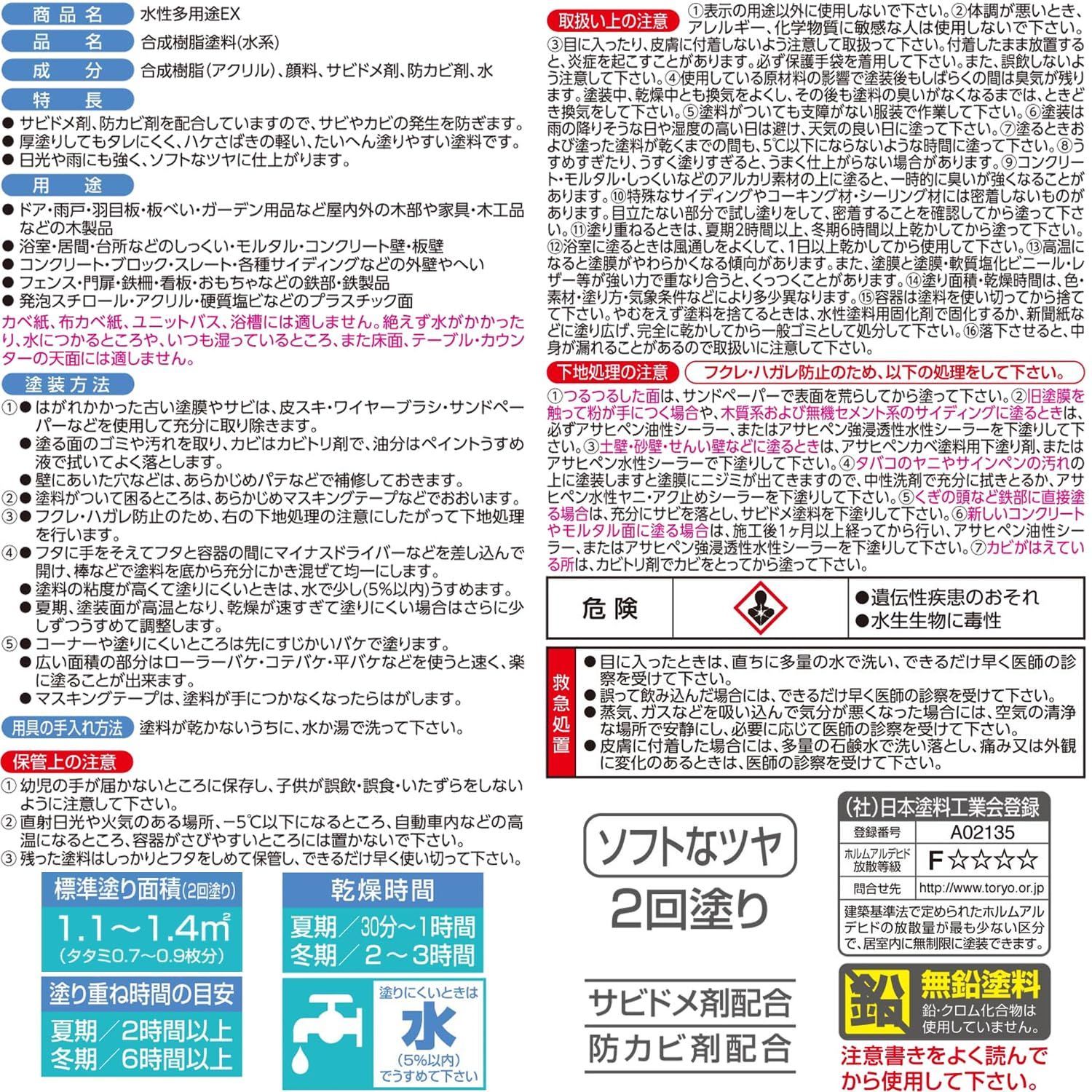 アサヒペン 水性多用途EX 1/5L ミルキーホワイト 塗料 ペンキ 水性 多用途 屋内外用 半ツヤ ソフトなツヤ 低臭 防カビ サビドメ剤配合 タレにくく塗りやすい シックハウス対策品 日本製