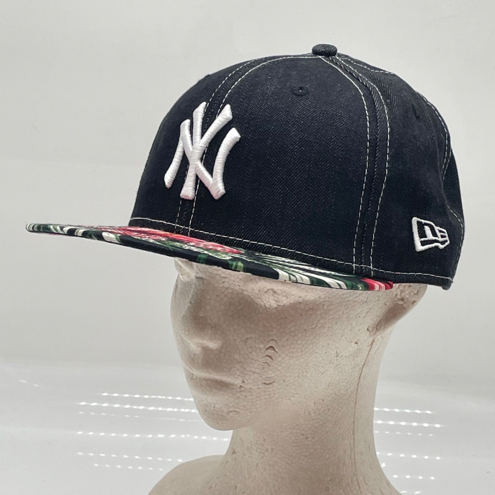 KO3677□ニューエラ 59FIFTY キャップ デニム×アロハ柄 ヤンキース 58.7cm